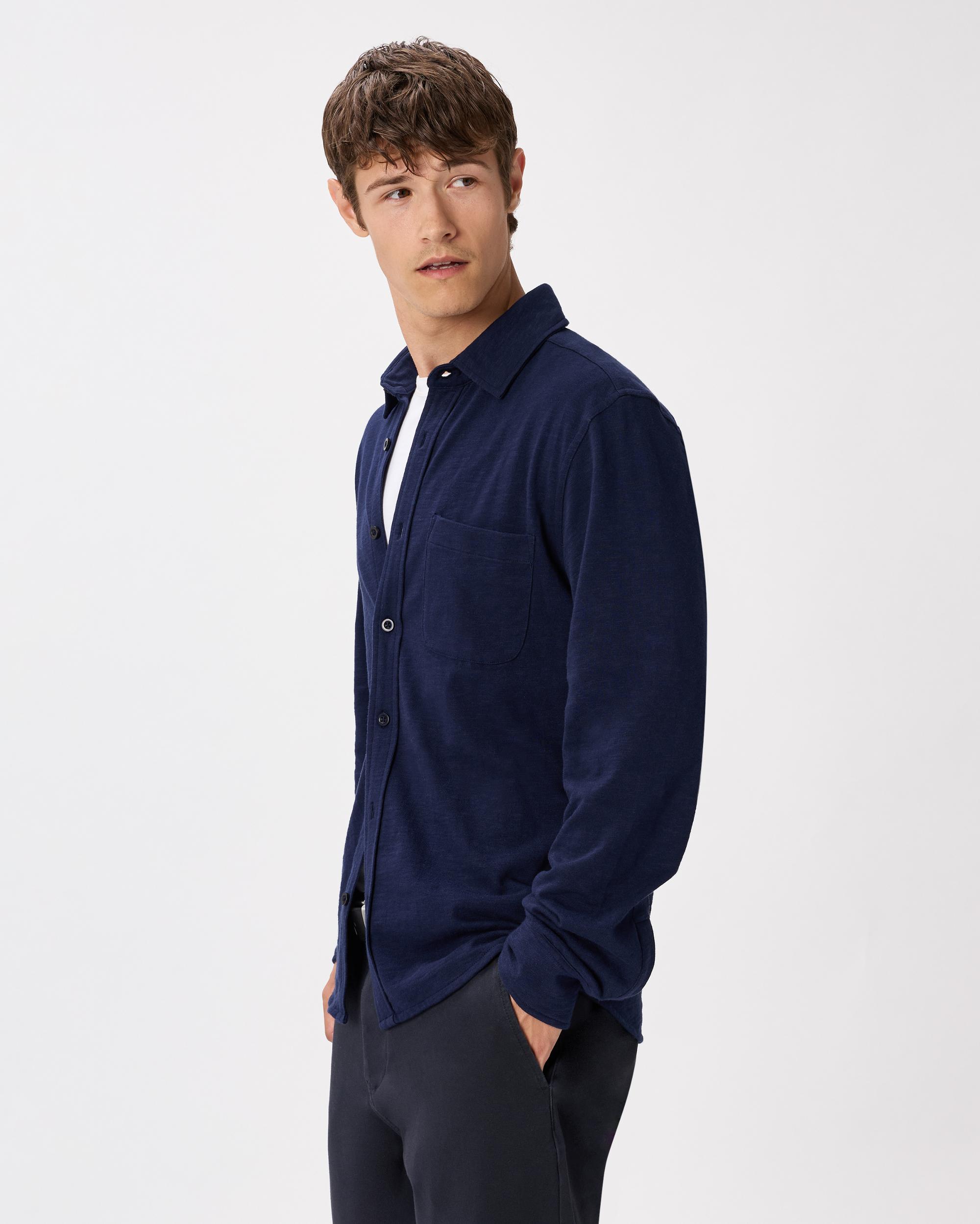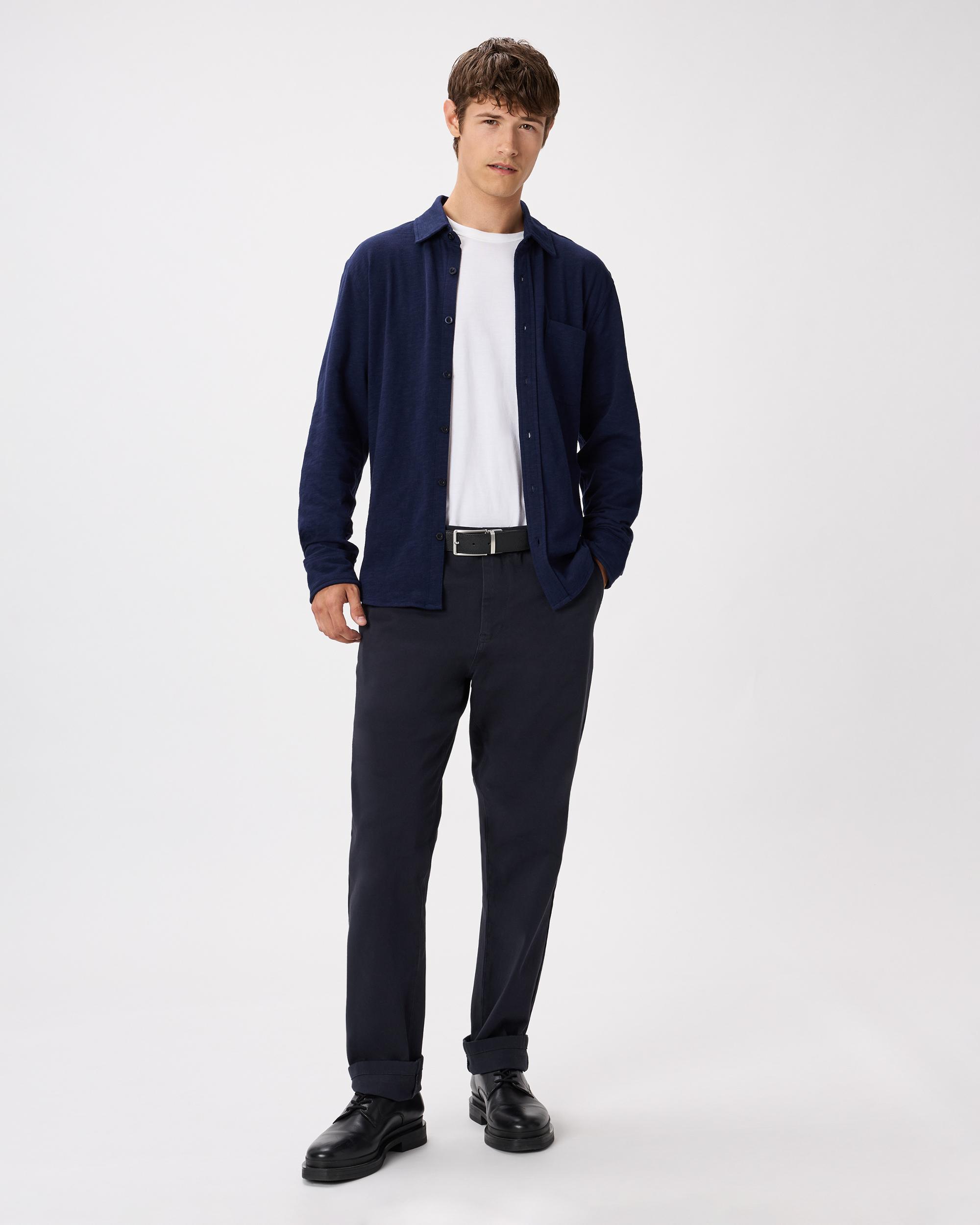 Introducing the 100% Organic Cotton Slub Long Sleeve Button Up Shirt -- made with a breathable, midweight textured cotton that is soft and perfect for any occasion. With its classic fit, this versatile shirt can be worn on its own or layered over your favorite tee shirt, making it perfect for both casual and polished looks. Sustainably made and easy to style, it’s a reliable go-to for everyday wear. | Quince | Men's Slub Long Sleeve Button Up Shirt in Deep Navy, Size Large, Organic Cotton