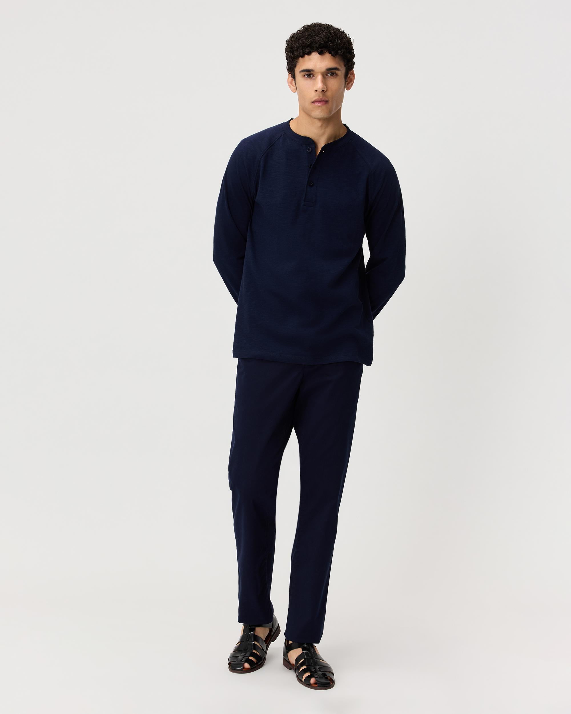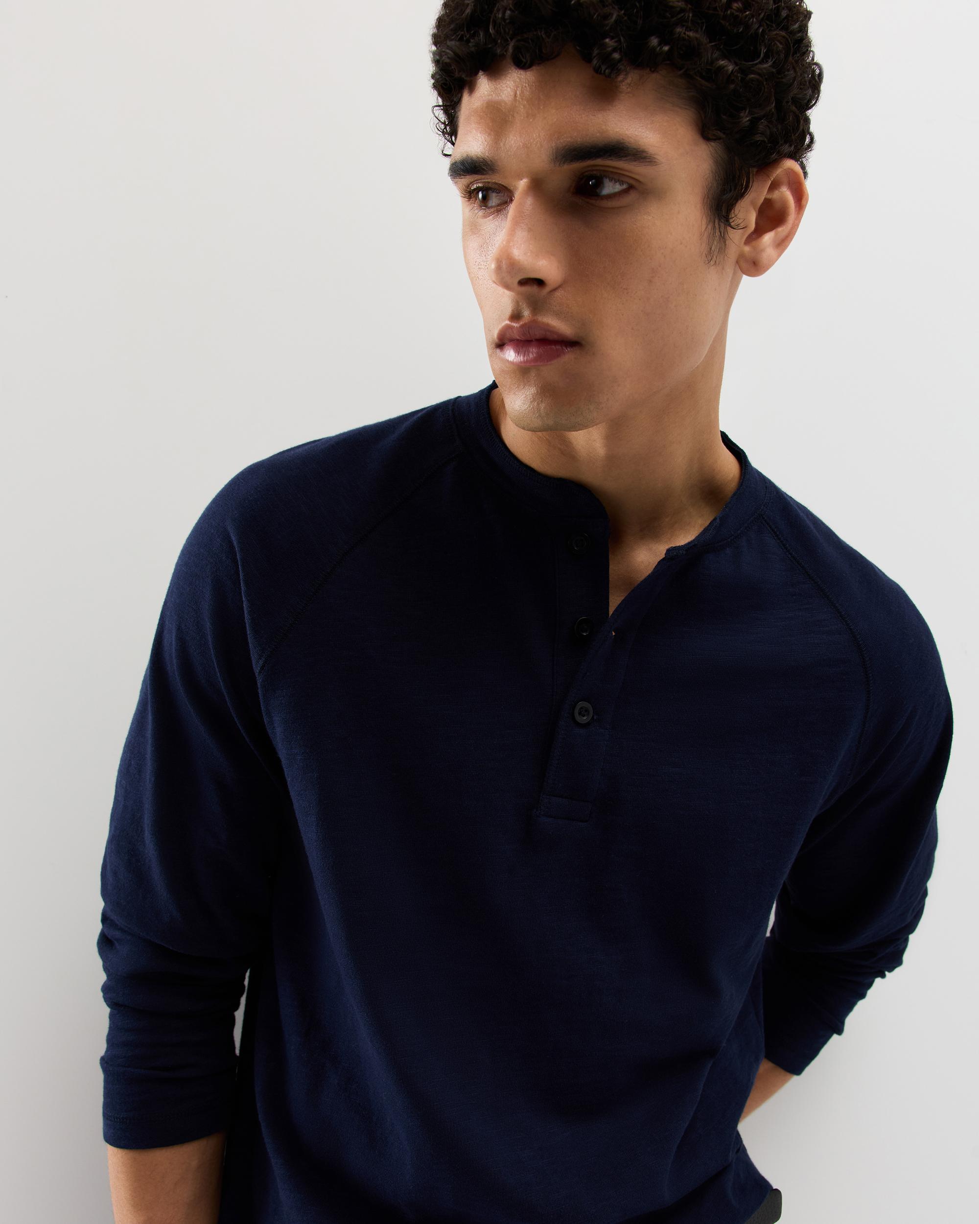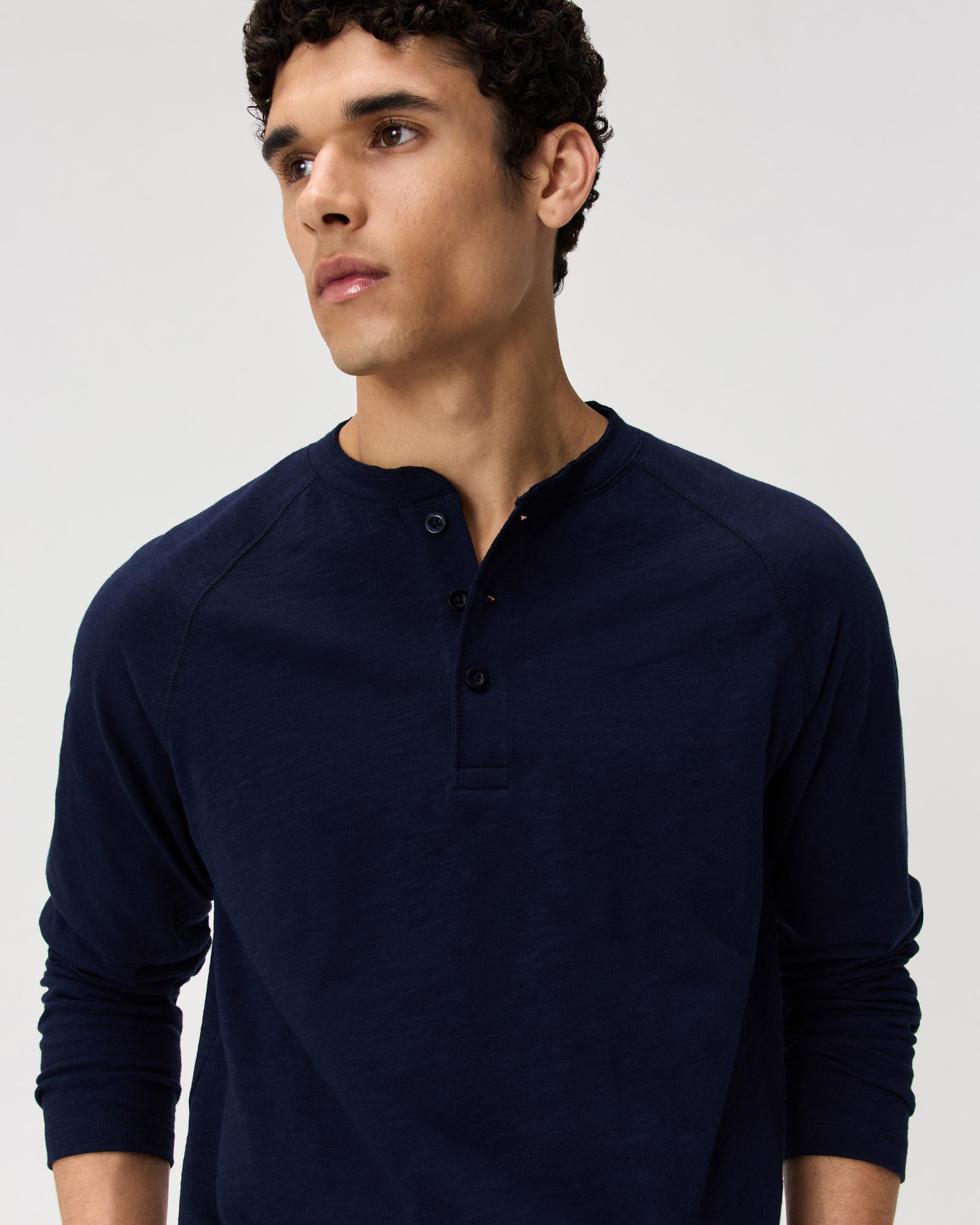 Elevate your everyday essentials with our 100% Organic Cotton Slub Long Sleeve Henley — a versatile staple made from 100% organic cotton. Crafted with a premium 220 GSM midweight fabric and soft 2-ply slub jersey, this Henley offers breathable comfort with a subtle texture that sets it apart. Designed with a henley neckline and a classic fit, it’s perfect for laid-back days or dressing up with a jacket for a smarter look. Sustainably made, effortlessly stylish, and built for everyday wear. | Quince | Men's Slub Long Sleeve Henley in Deep Navy, Size XXL, Organic Cotton