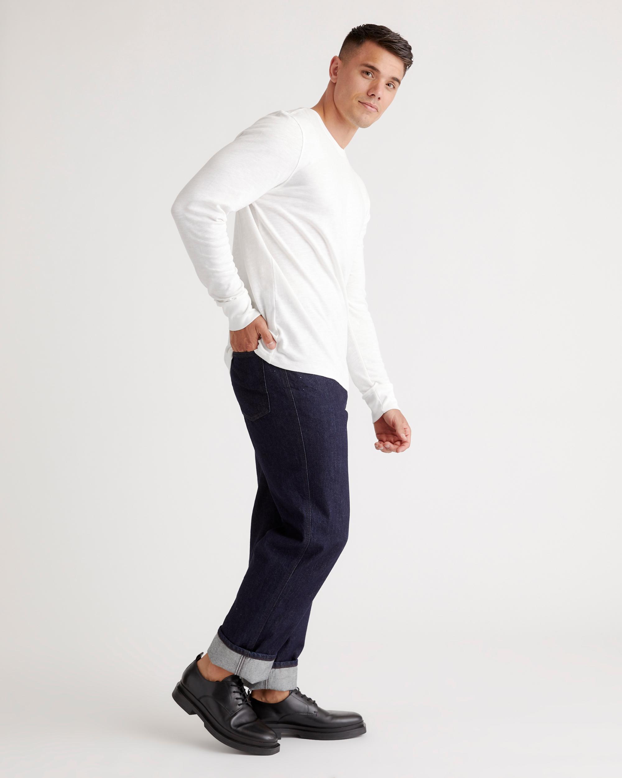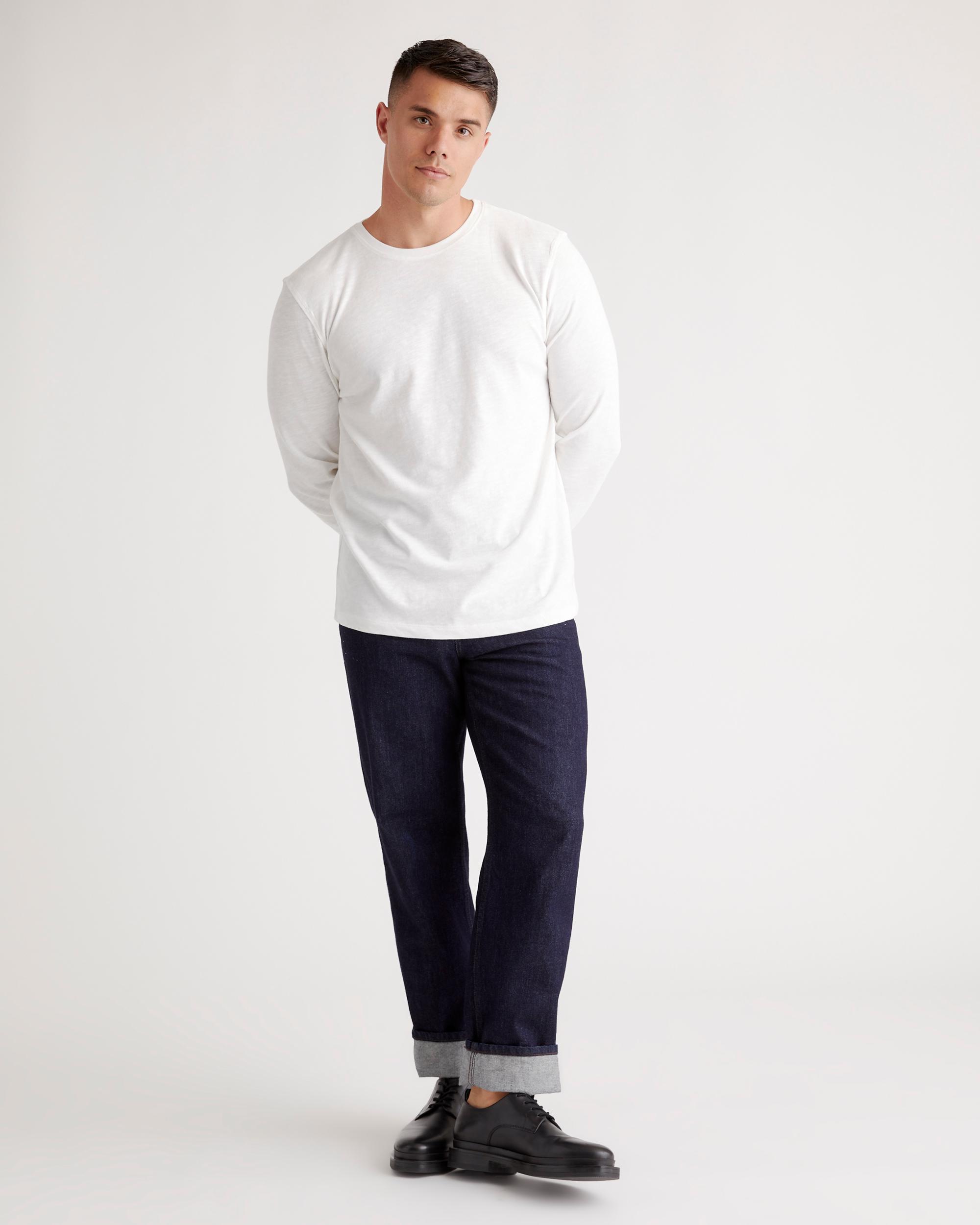 Upgrade your wardrobe basics with our Organic Cotton Slub Crewneck Tee. Made from 100% organic cotton, the premium slub jersey fabric adds texture and feels amazing. Lightweight and perfect for layering, wear this tee on its own or under your favorite sweater or jacket. | Quince | Men's Slub Long Sleeve T-Shirt in Classic White, Size Large, Organic Cotton