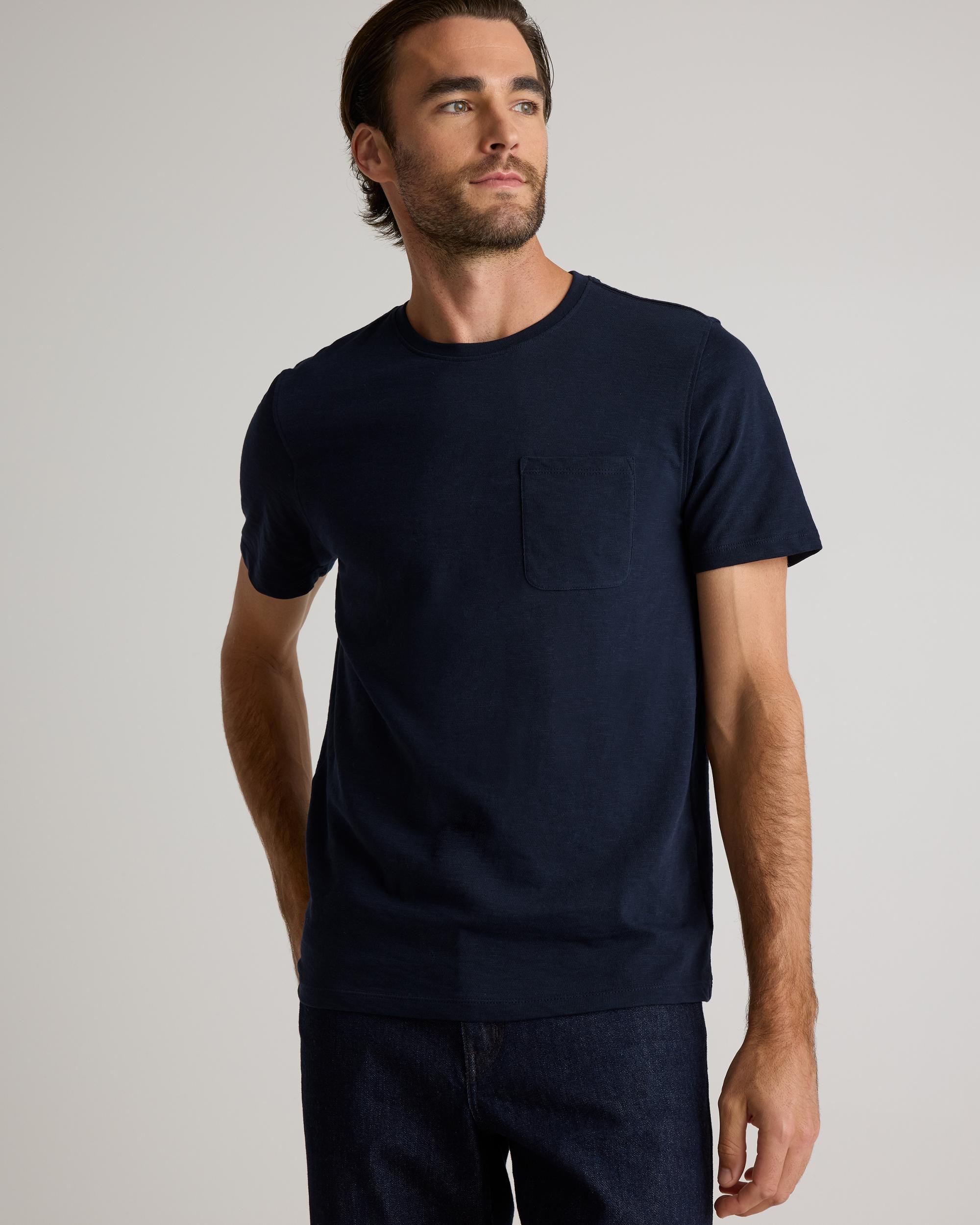 Upgrade your wardrobe basics with our Organic Cotton Slub Pocket Tee. Made from 100% organic cotton, the premium slub jersey fabric adds texture and feels amazing. Lightweight and perfect for layering, wear this tee on its own or under your favorite sweater or jacket. | Quince | Men's Slub Pocket T-Shirt in Deep Navy, Size XL, Organic Cotton