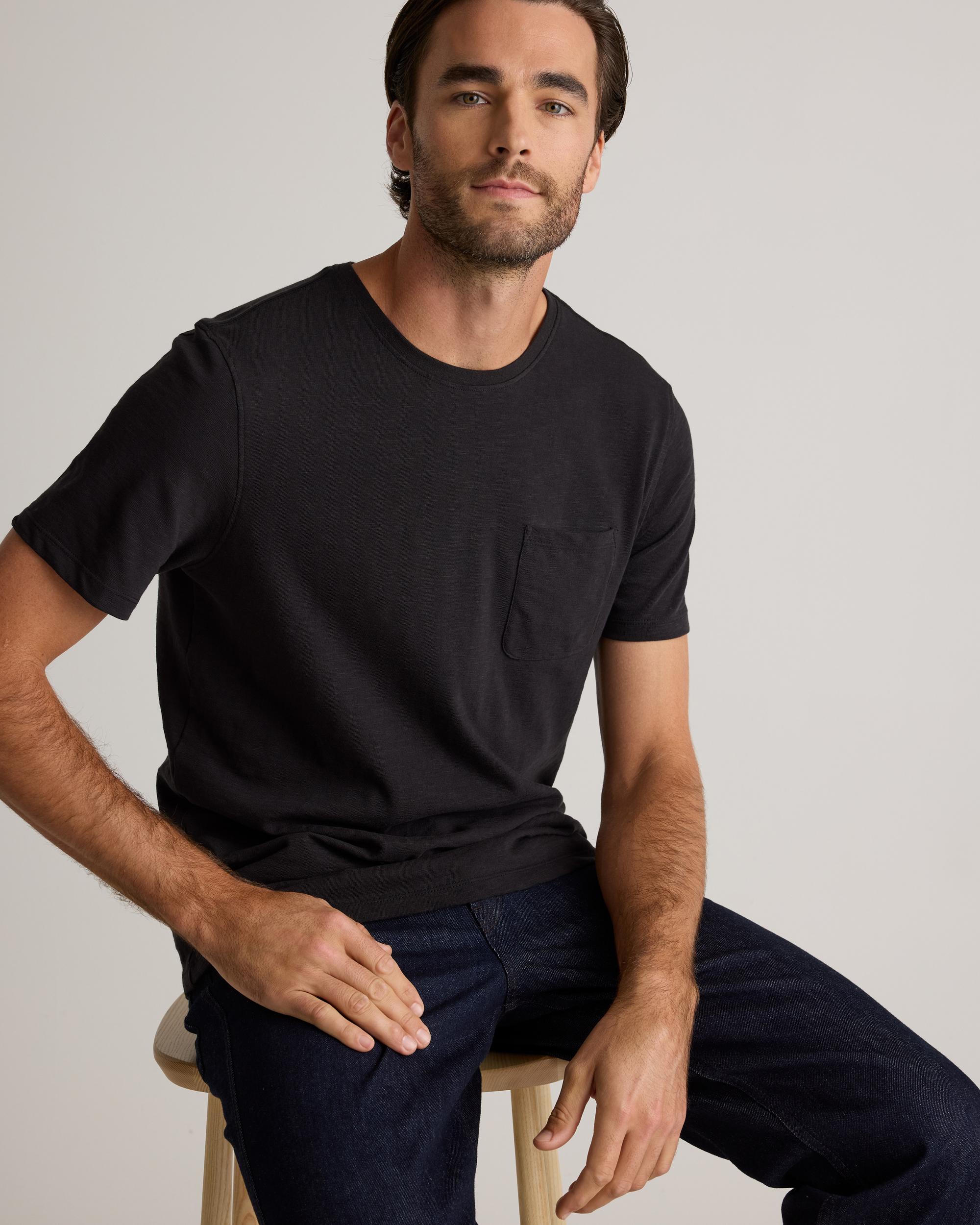 Upgrade your wardrobe basics with our Organic Cotton Slub Pocket Tee. Made from 100% organic cotton, the premium slub jersey fabric adds texture and feels amazing. Lightweight and perfect for layering, wear this tee on its own or under your favorite sweater or jacket. | Quince | Men's Slub Pocket T-Shirt in Bold Black, Size XXL, Organic Cotton