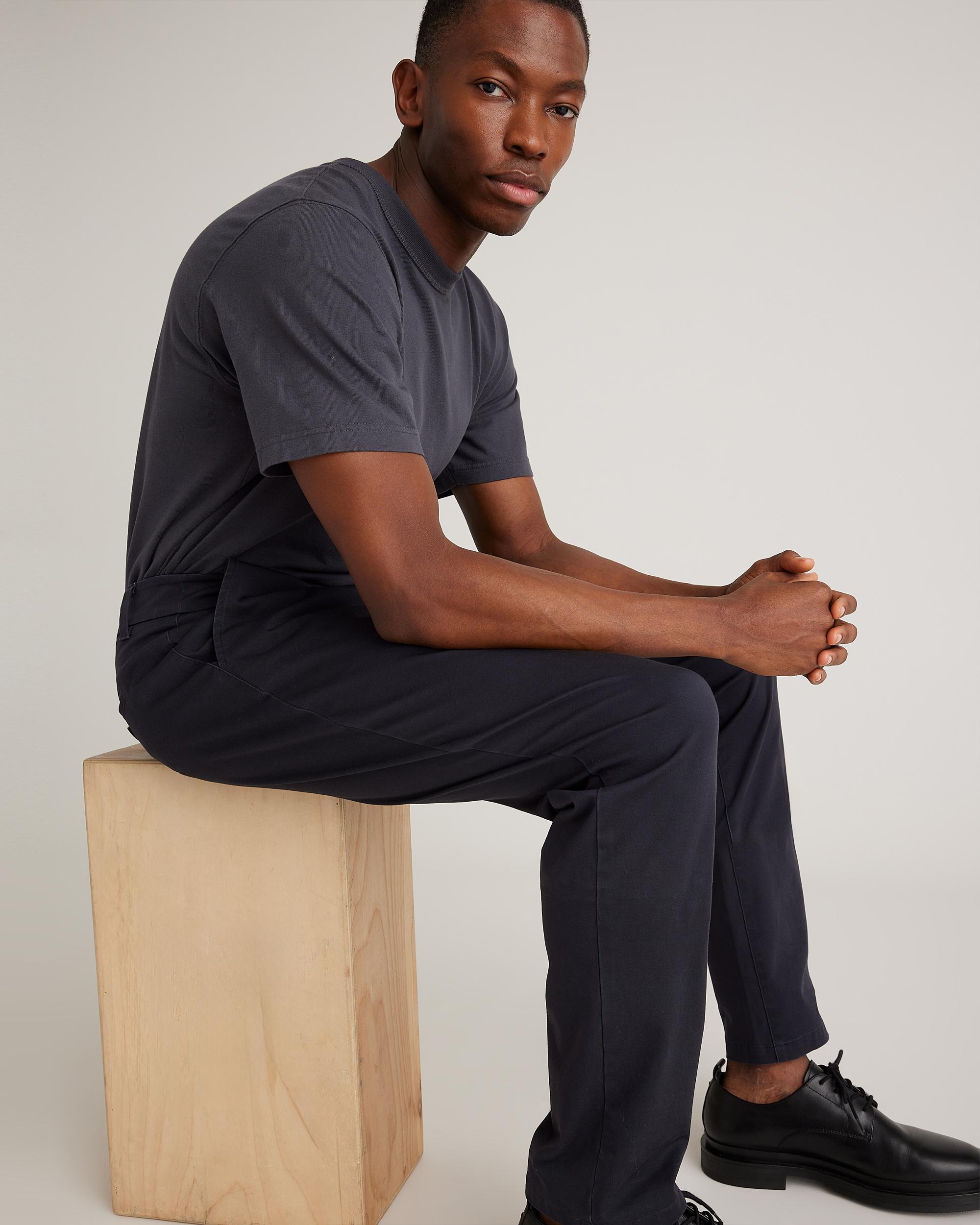 Durable comfort. You in? Then check out our Organic Cotton Stretch Chino. This straight-fit pant is perfect for the guy who wants a comfortable, versatile pant that still looks sleek. It's made from organic cotton with performance-inspired features like water-resistance and 4-way stretch. Pair with our Organic Cotton Stretch Blazer for a more polished, sophisticated look. | Quince | Men's Stretch Chino in Dark Charcoal, Size 30X32, Organic Cotton