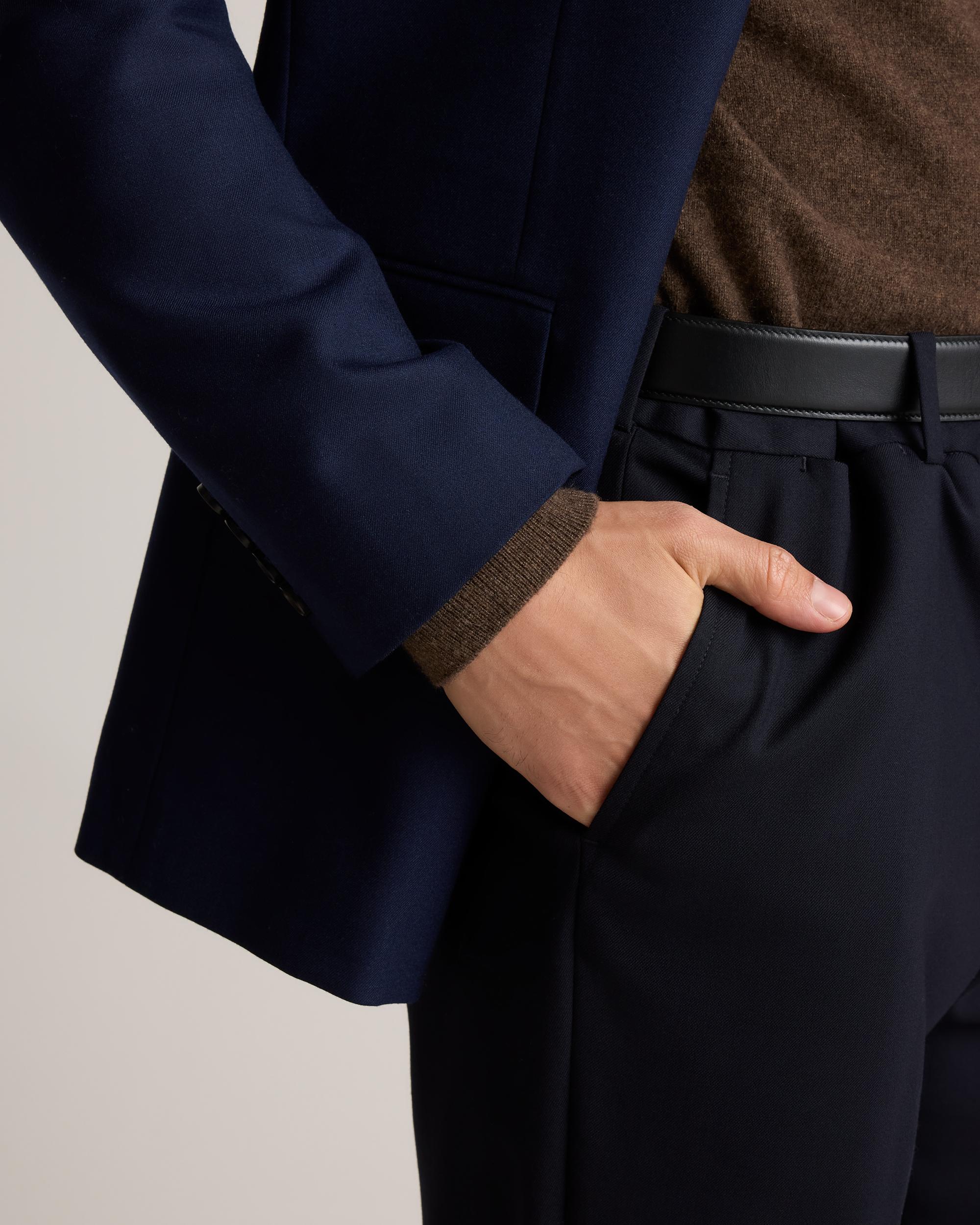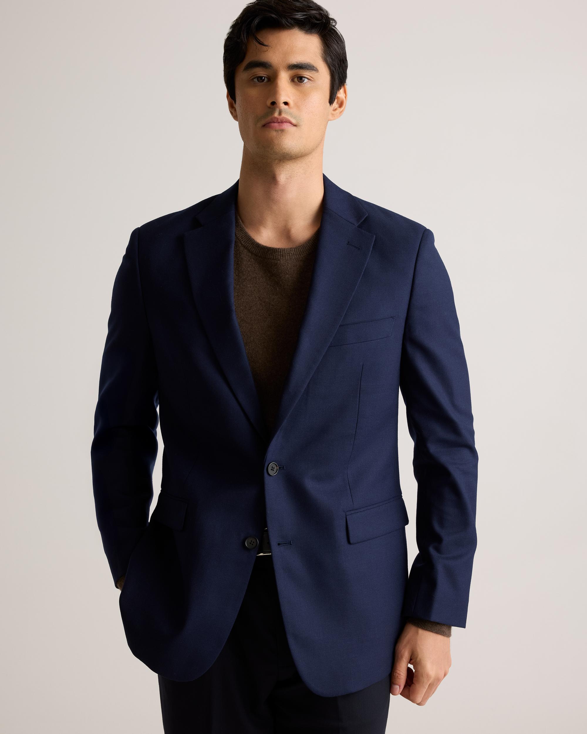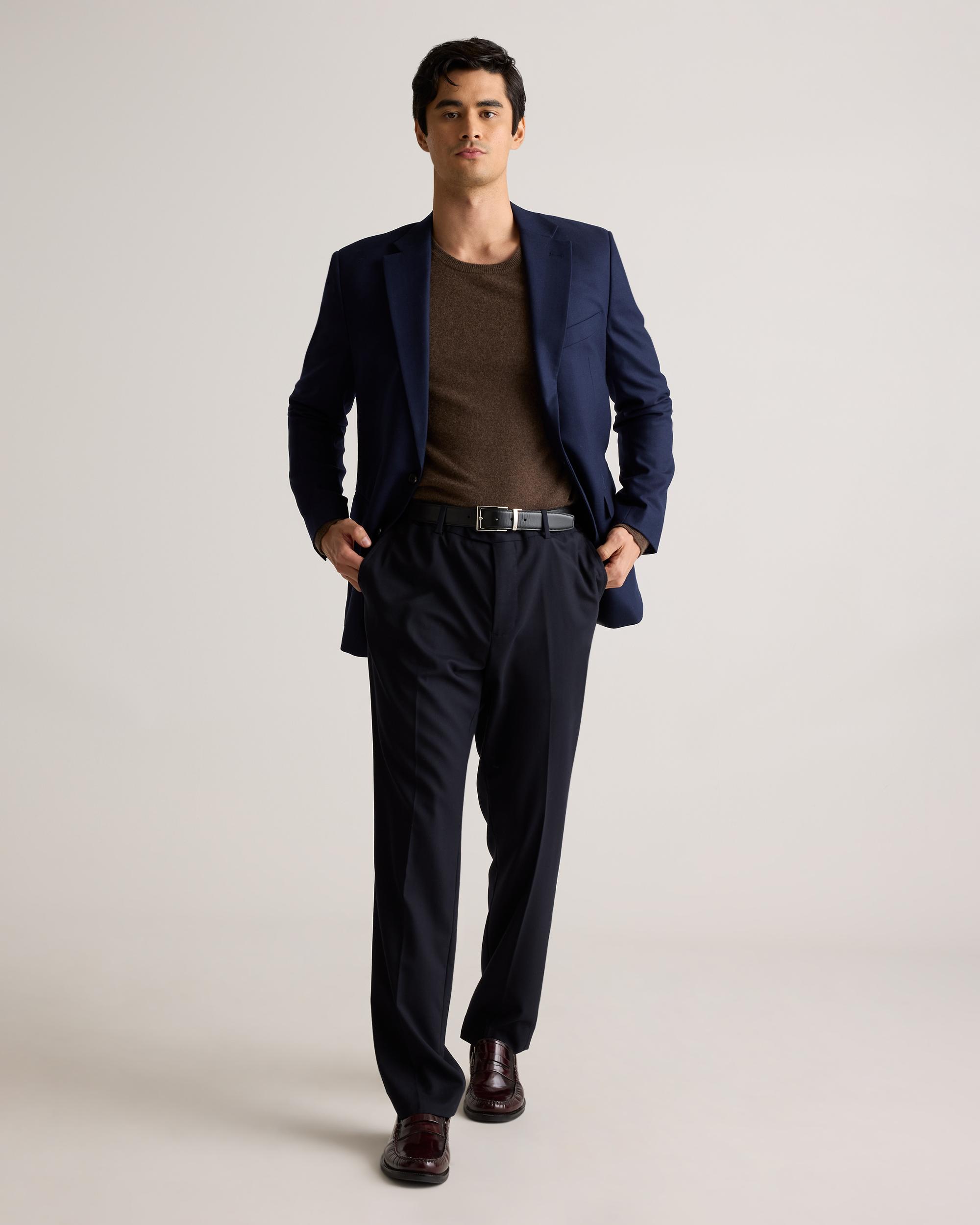 Elevate your wardrobe with our Stretch Wool Blazer, designed for the modern man who values both style and comfort. Its versatile design makes it suitable for various occasions, from formal events to casual gatherings. Pair it with our matching Stretch Wool Dress Pant for a sophisticated look or dress it down with jeans for a smart-casual ensemble. | Quince | Men's Stretch Wool Blazer in Navy, Size XL