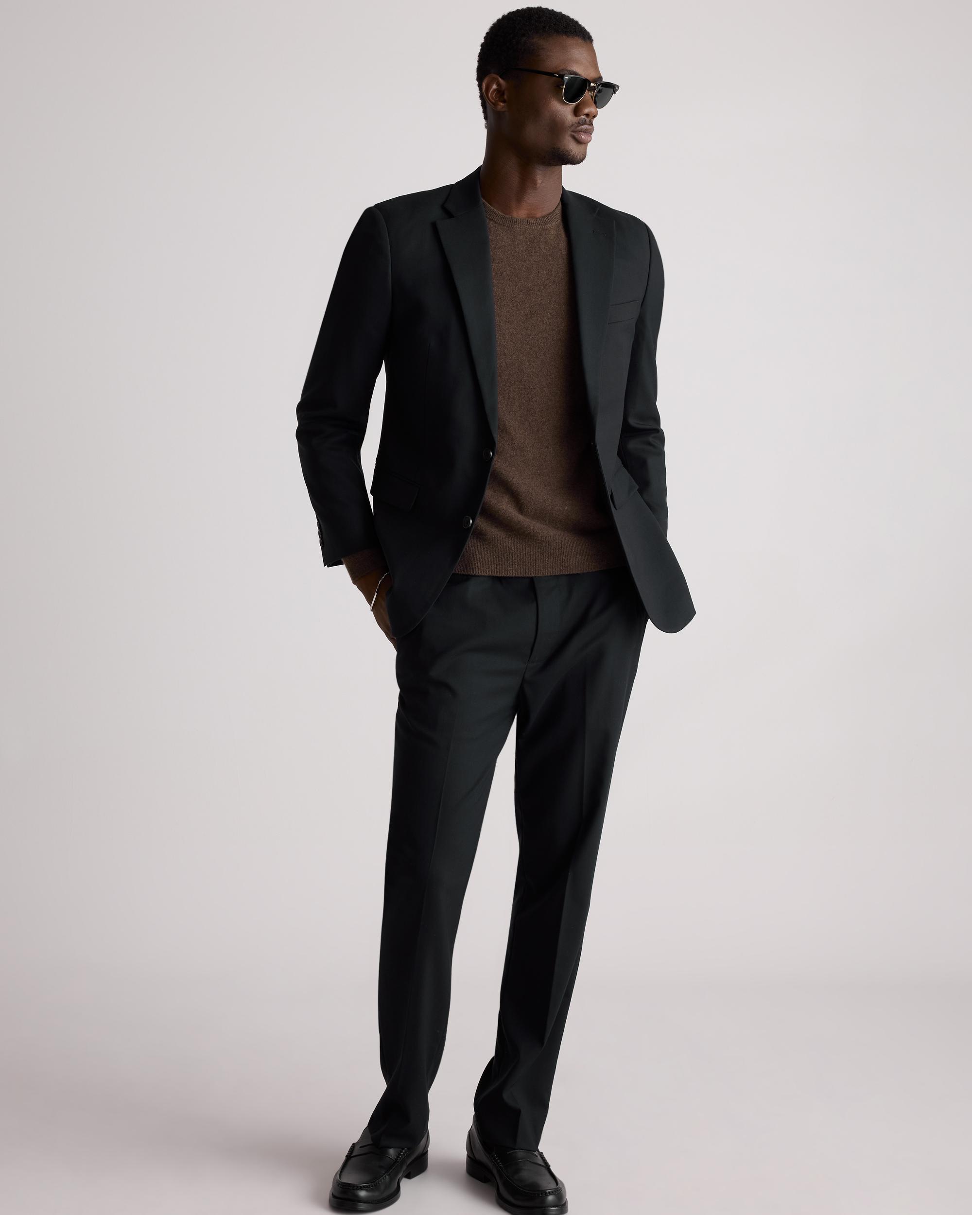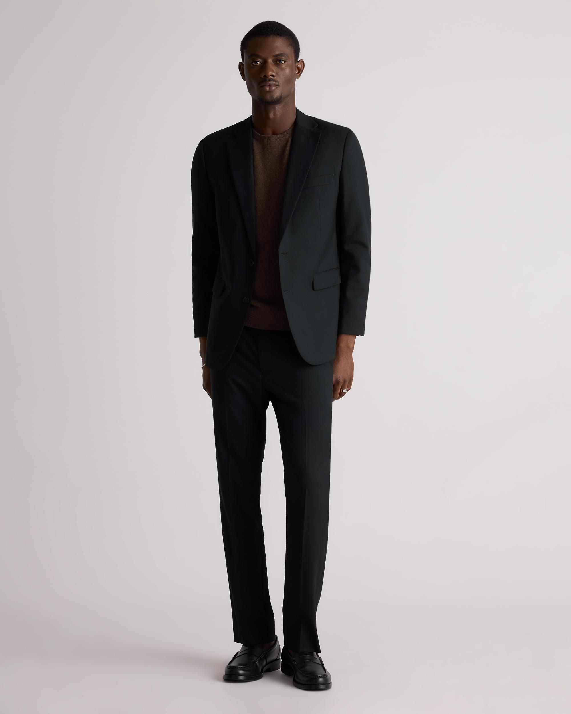Elevate your wardrobe with our Stretch Wool Blazer, designed for the modern man who values both style and comfort. Its versatile design makes it suitable for various occasions, from formal events to casual gatherings. Pair it with our matching Stretch Wool Dress Pant for a sophisticated look or dress it down with jeans for a smart-casual ensemble. | Quince | Men's Stretch Wool Blazer in Black, Size XL