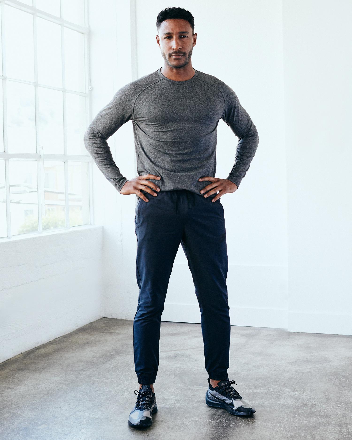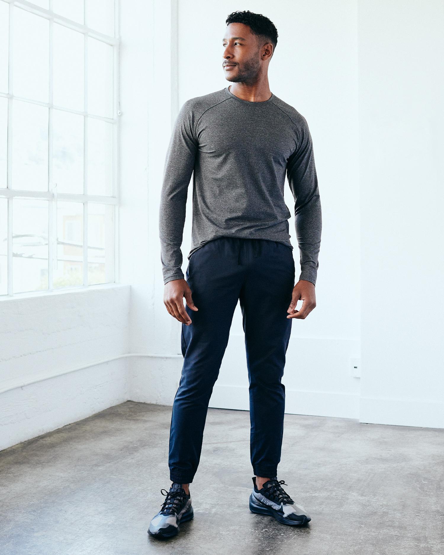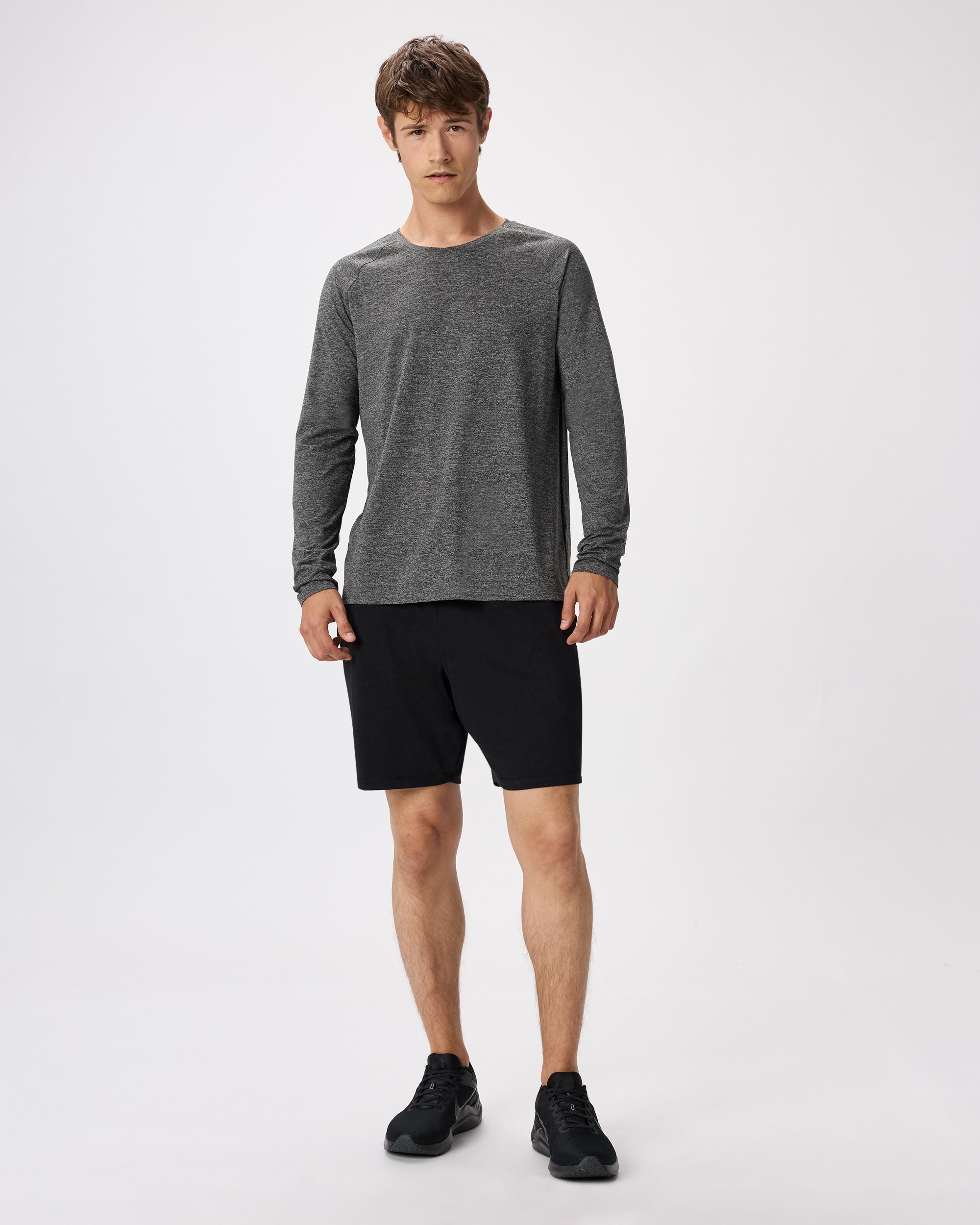 Our fave flowknit tee, but now in a long sleeve style. Perfect for training, travel, or lounging, our insanely-soft Flowknit fabric is jam-packed with performance features like moisture-wicking and anti-odor. Built for next-level comfort, and for everyday wear. Our Flowknit is made from Global Recycle Standard poly yarn, which diverts and recycles plastics destined for landfill or the ocean, so you can feel and look good in what you wear. | Quince | Men's Super Soft Performance Long Sleeve T-Shirt in Charcoal, Flowknit Activewear, Size Large, 100% Polyester