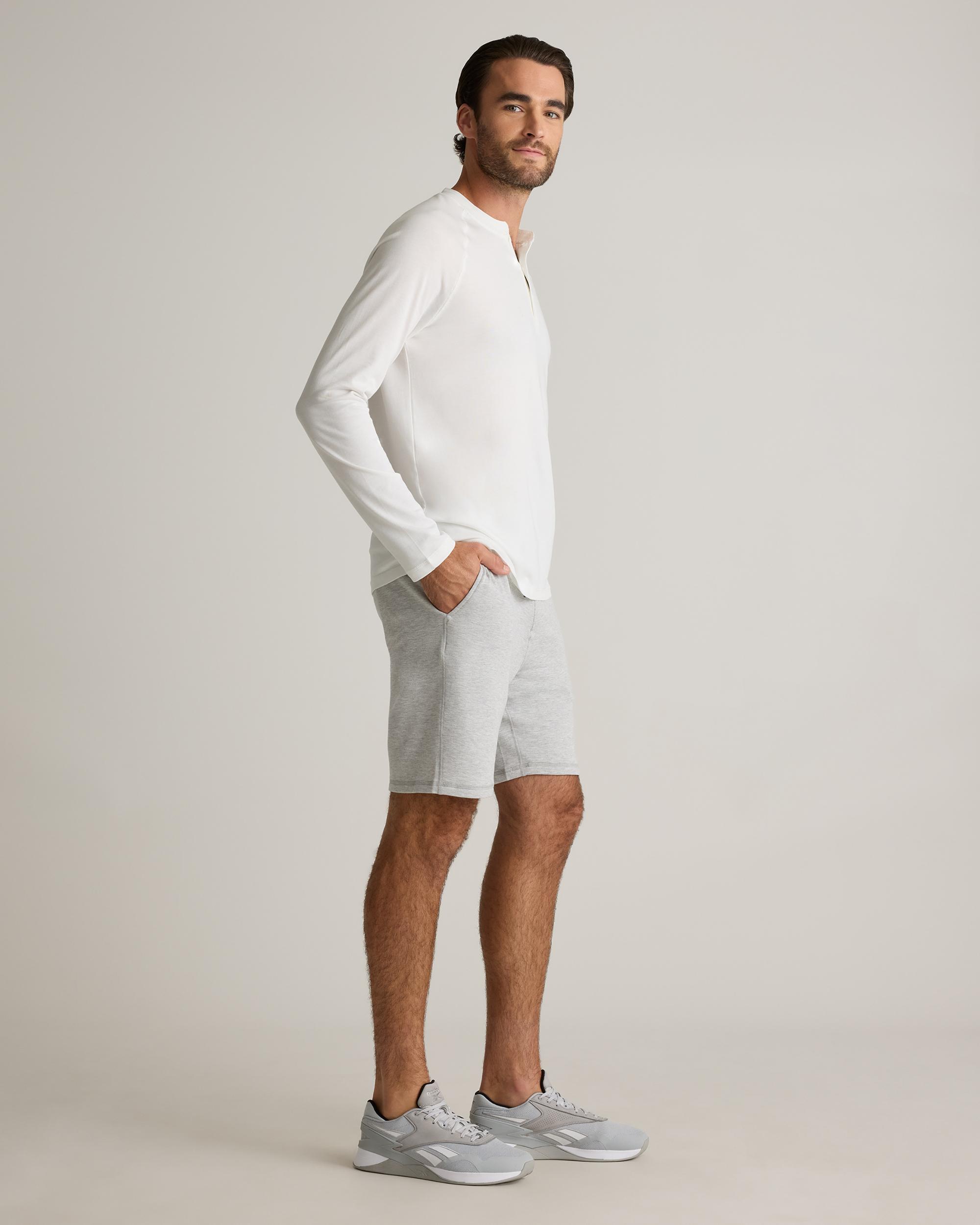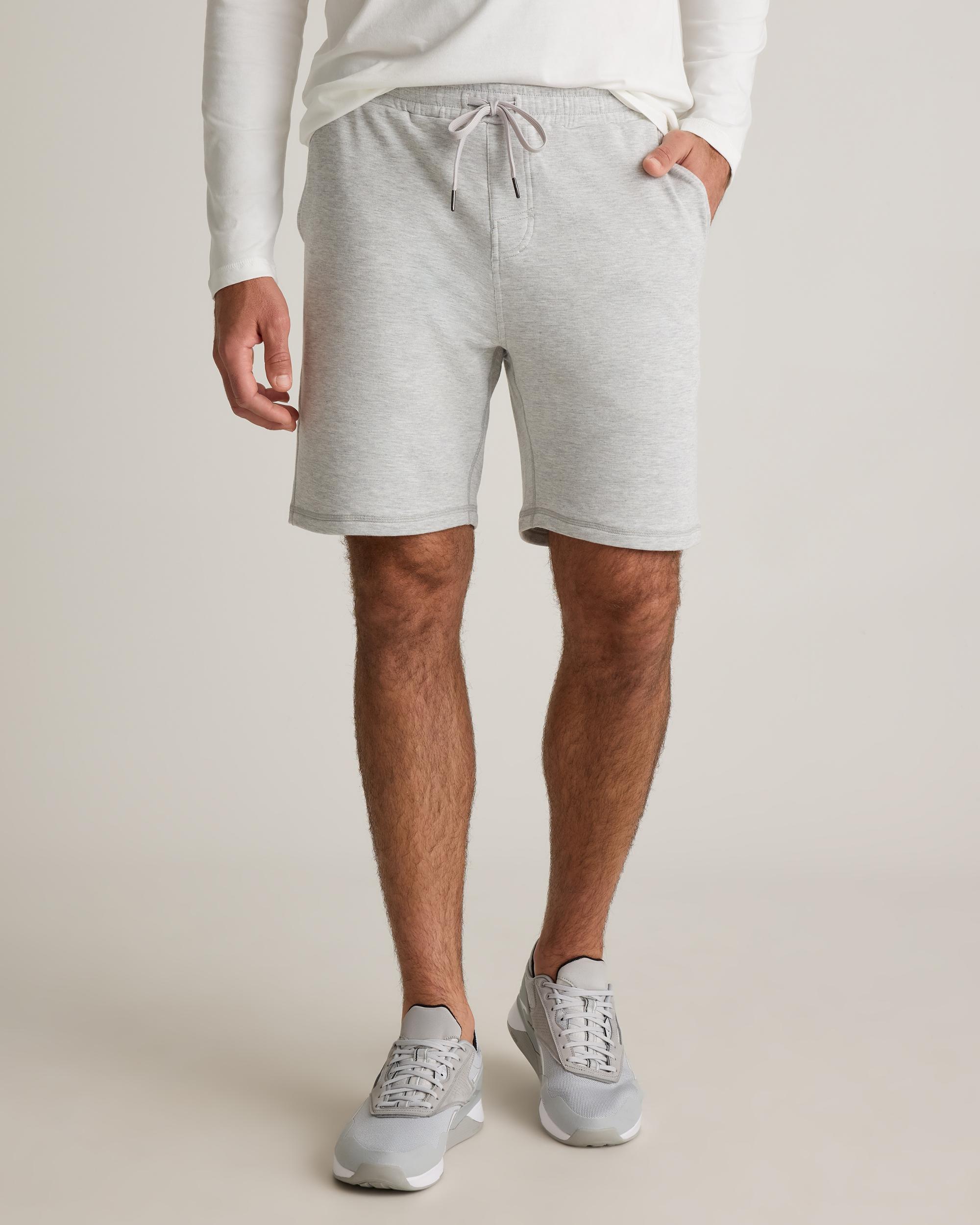 Welcome to next-level comfort from our SuperSoft fleece. Our Supersoft Fleece Sweatshort has stretch and, as the name says, a super soft fleece interior. Pair with our Supersoft Fleece Crew for extreme cozy dressing. This short features side seam and zippered back pockets to keep your belongings close. Plus, we included our GRS-certified poly yarn in this blend, which diverts plastics from ocean and landfill. So you can look good and feel good in this piece. | Quince | Men's Supersoft Fleece Sweatshort in Heather Grey, Size Large, Lenzing Modal