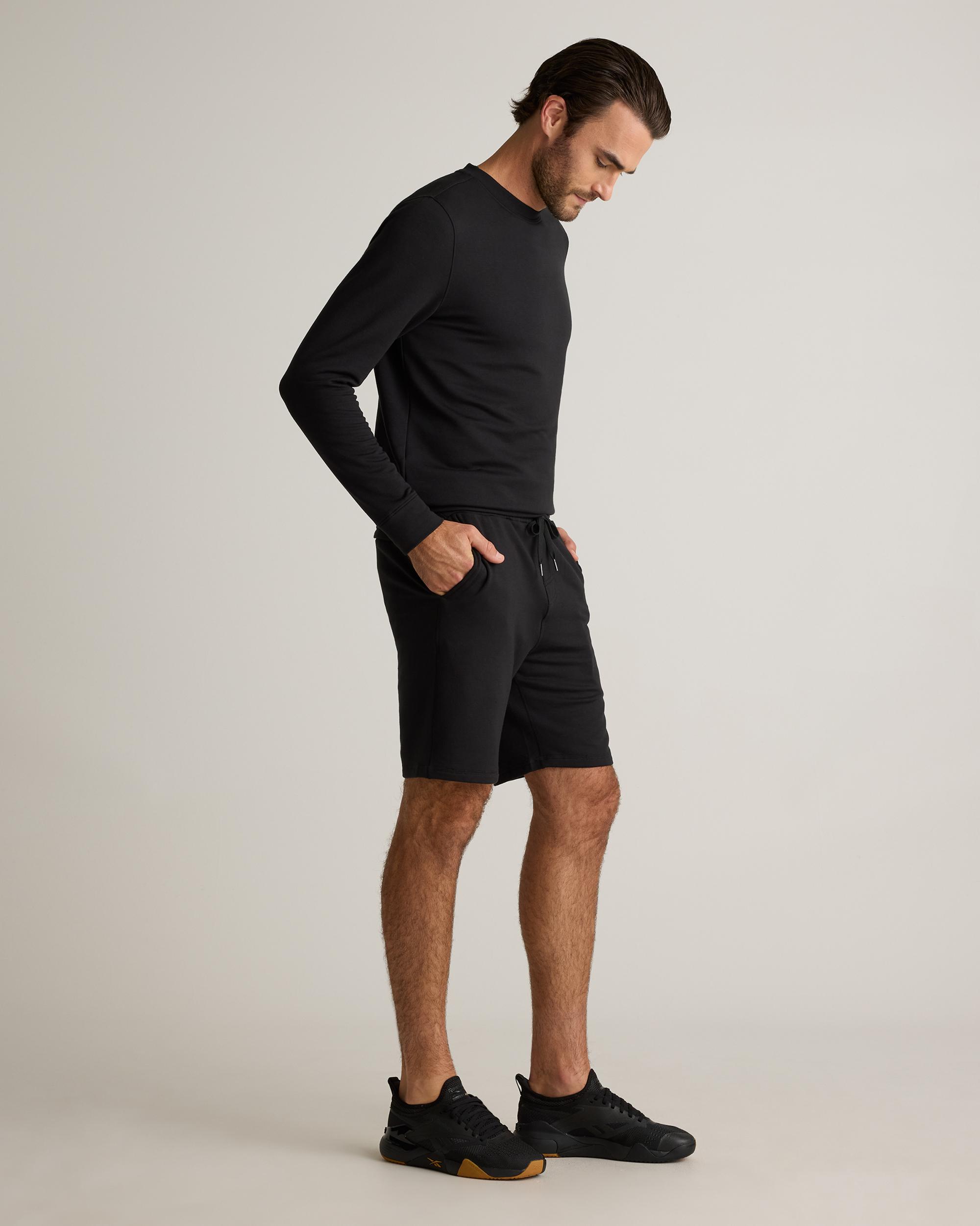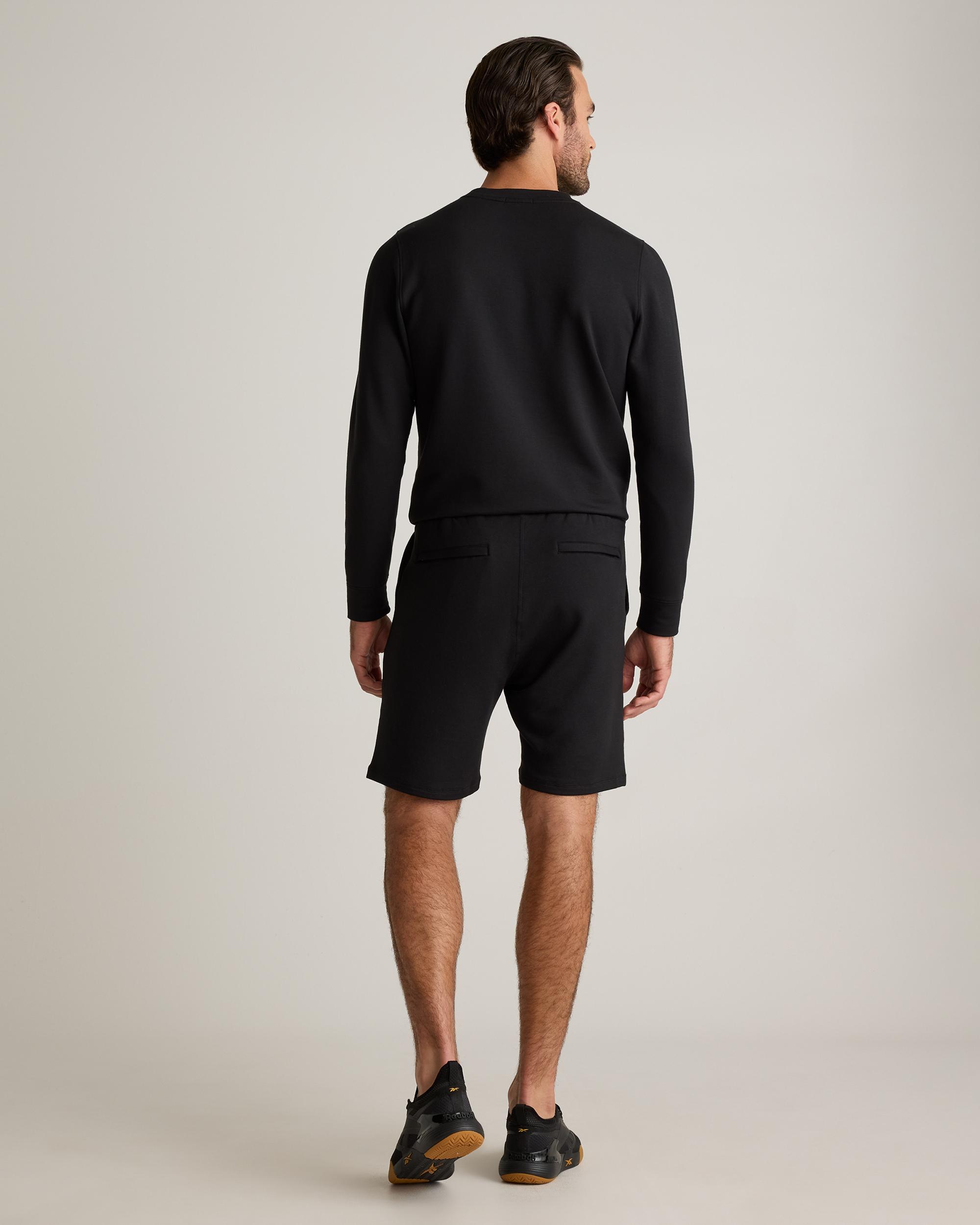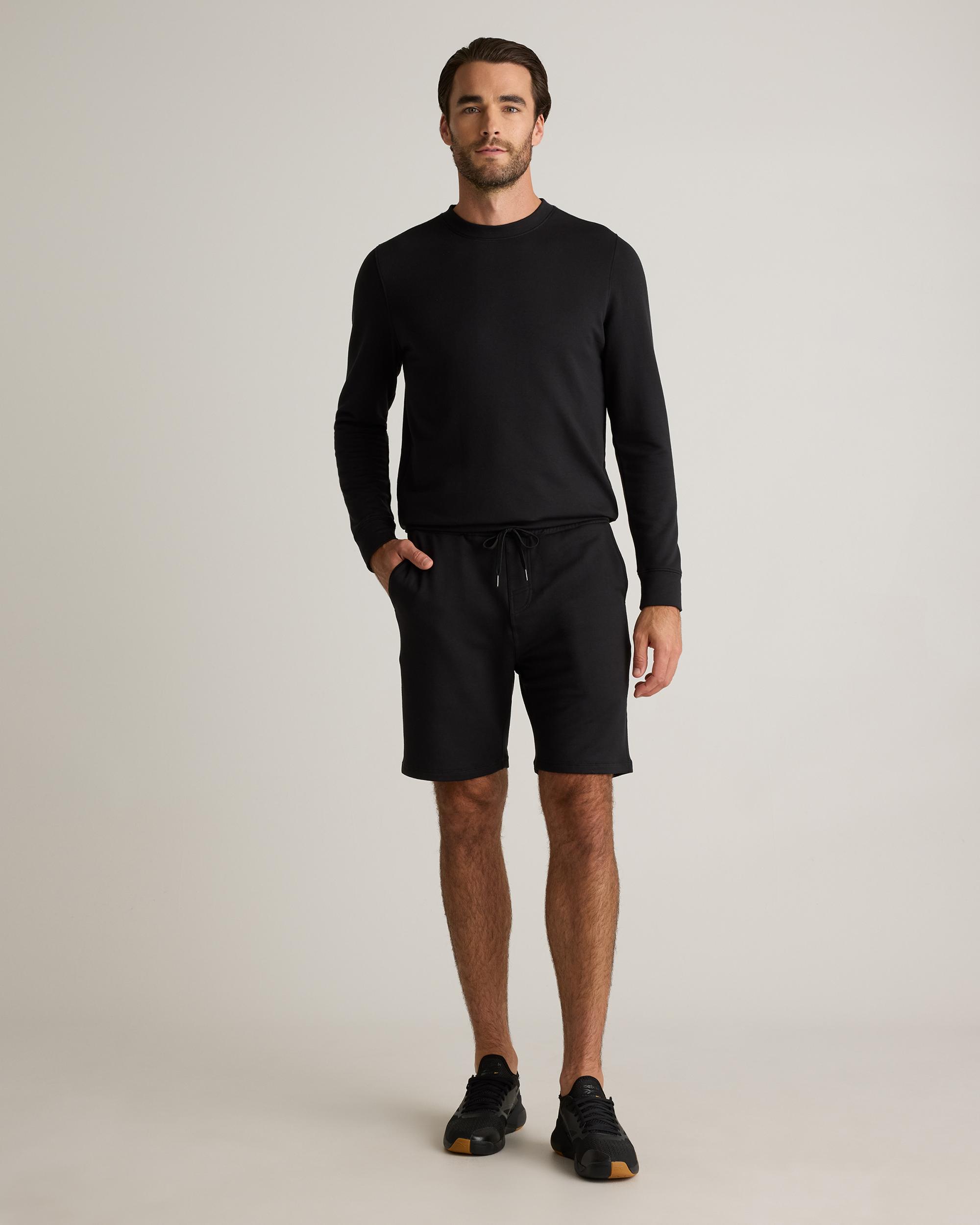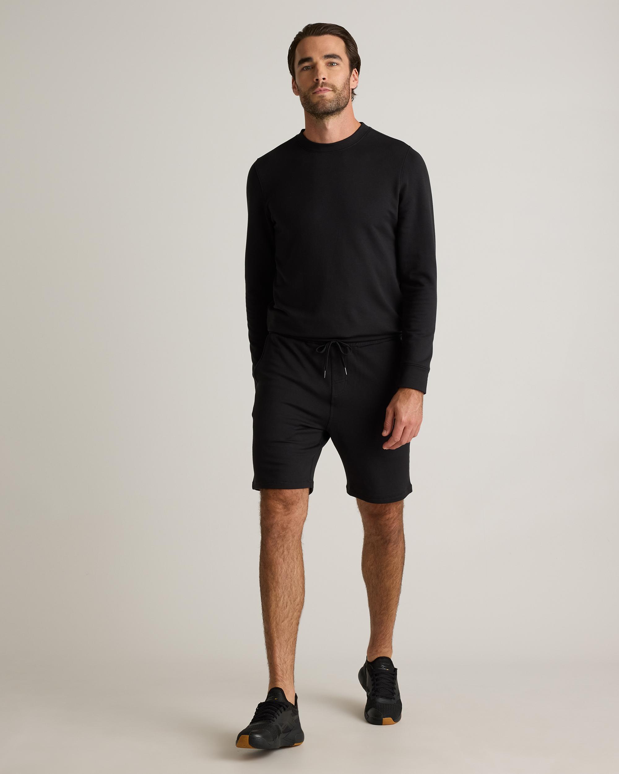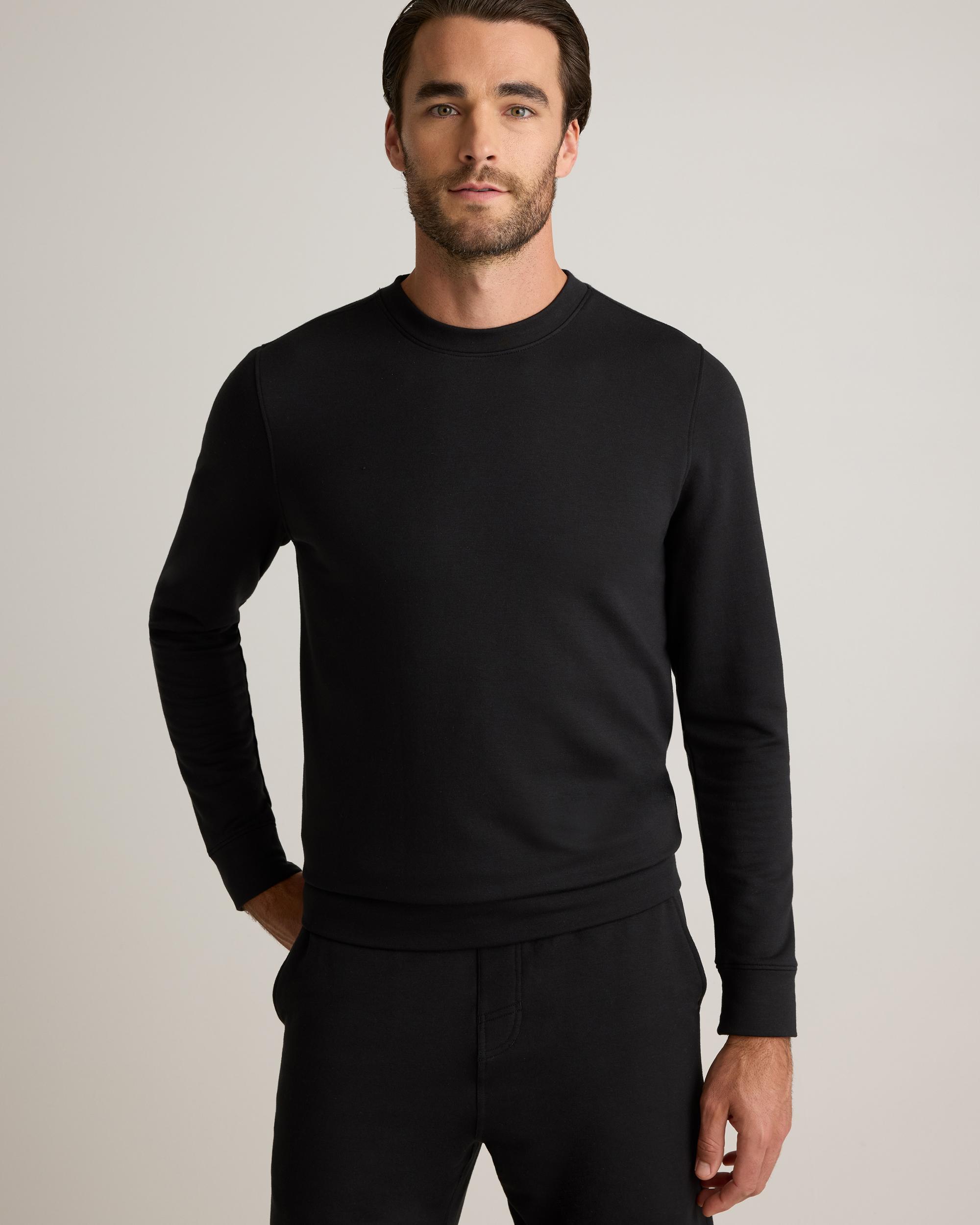 Welcome to next-level comfort from our SuperSoft fleece. Our Supersoft Fleece Crew has stretch and, as the name says, a super soft fleece interior. Pair with our Supersoft Fleece Sweatshort for extreme cozy dressing. Plus, we included our GRS-certified poly yarn in this blend, which diverts plastics from ocean and landfill. So you can look good and feel good in this piece. | Quince | Men's Supersoft Fleece Crew Neck Alpaca Sweater in Black, Size Large, Lenzing Modal