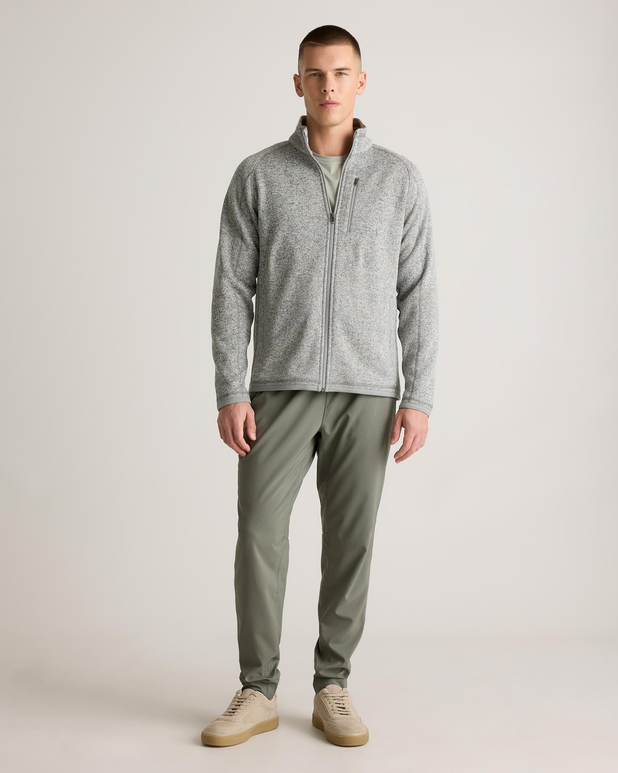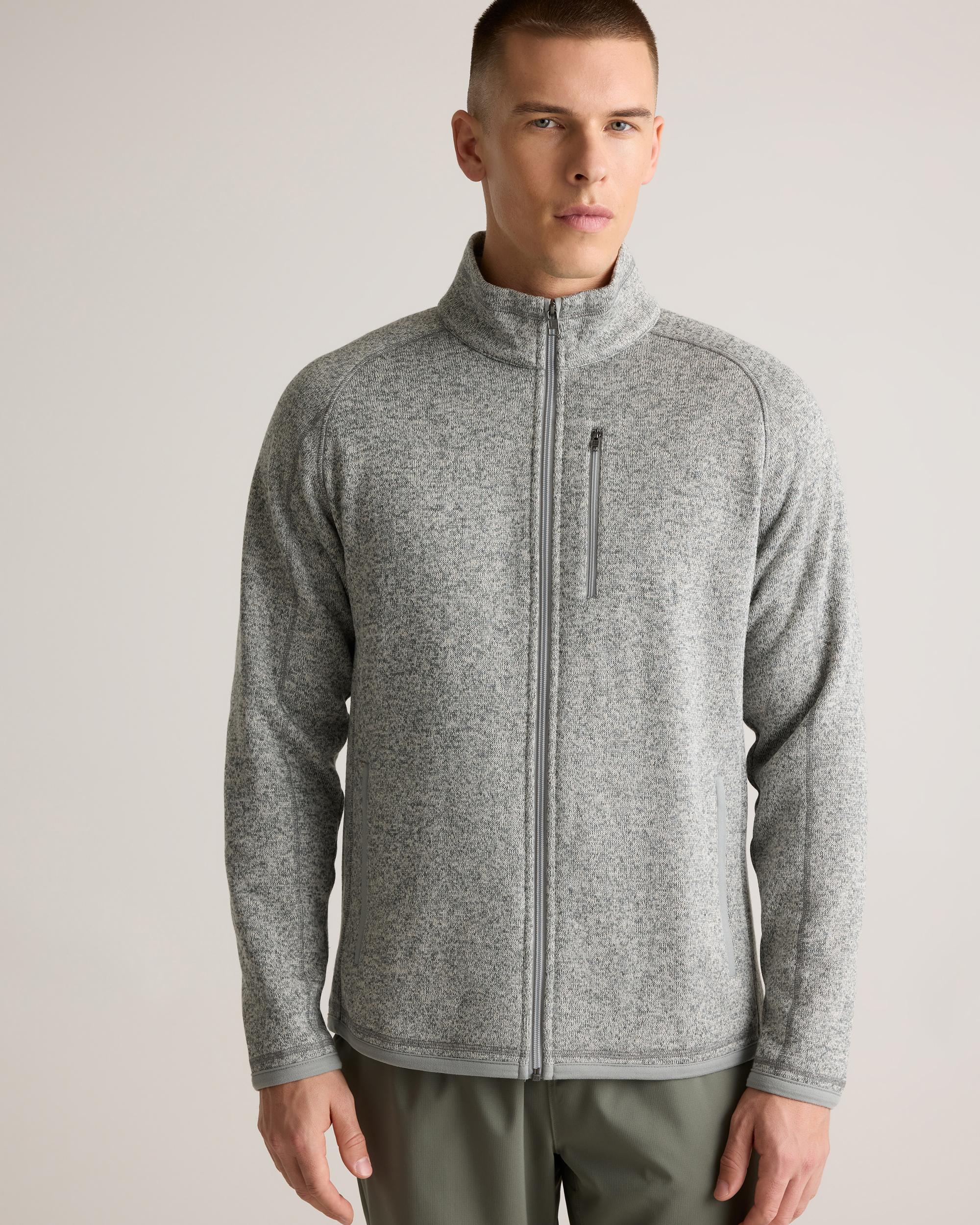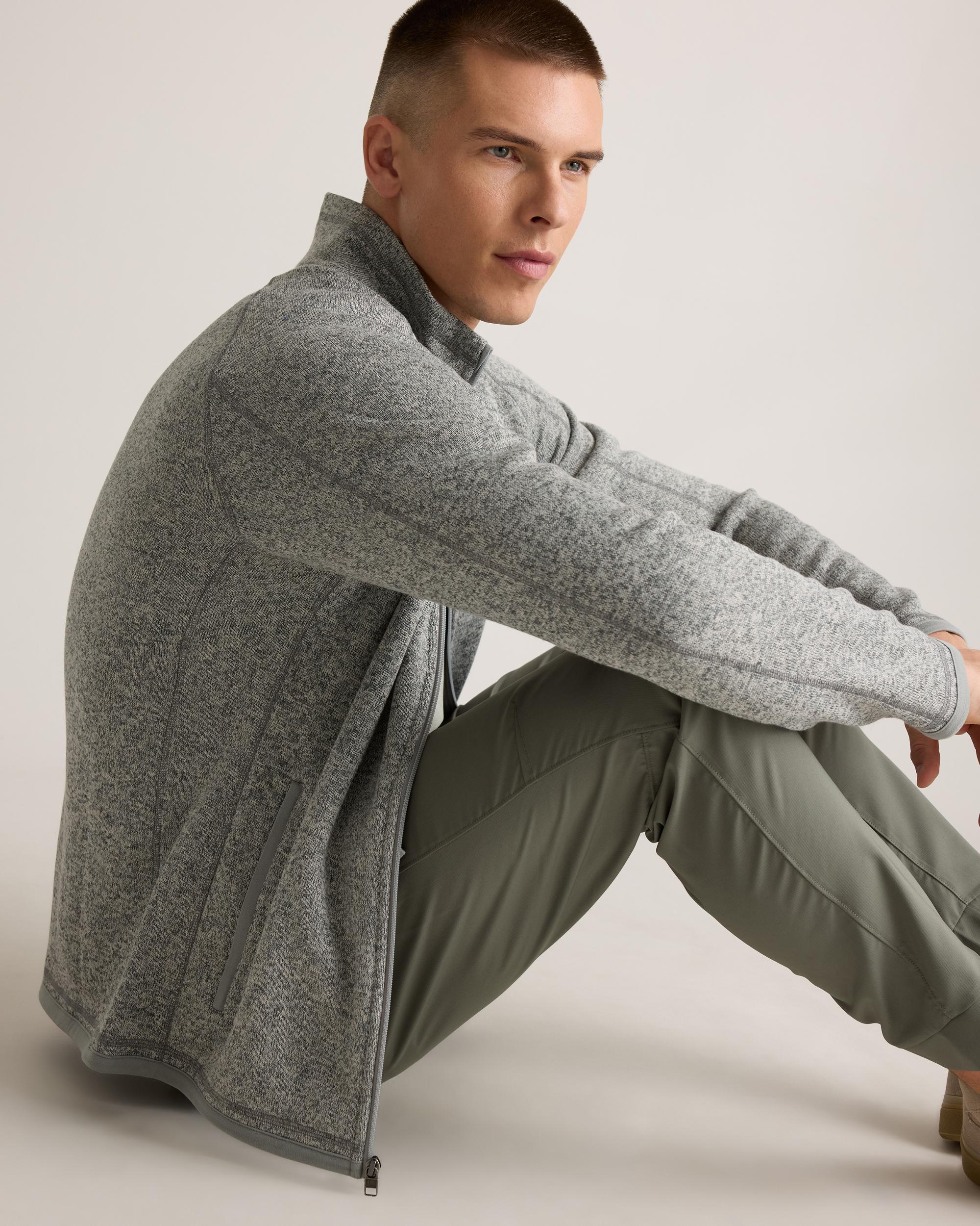 Your next chilly day must-have? This Sweater-Knit Fleece Full-Zip Jacket. Whether you're layering up for an outdoor adventure or adding cozy warmth to an everyday outfit, this jacket has you covered. The best part (besides the classic style, of course): It's made of 100% recycled materials that keep you warm while keeping plastic bottles out of oceans and landfills. | Quince | Men's Sweater-Knit Fleece Full-Zip Jacket in Heather Grey, Size XL, Recycled Polyester