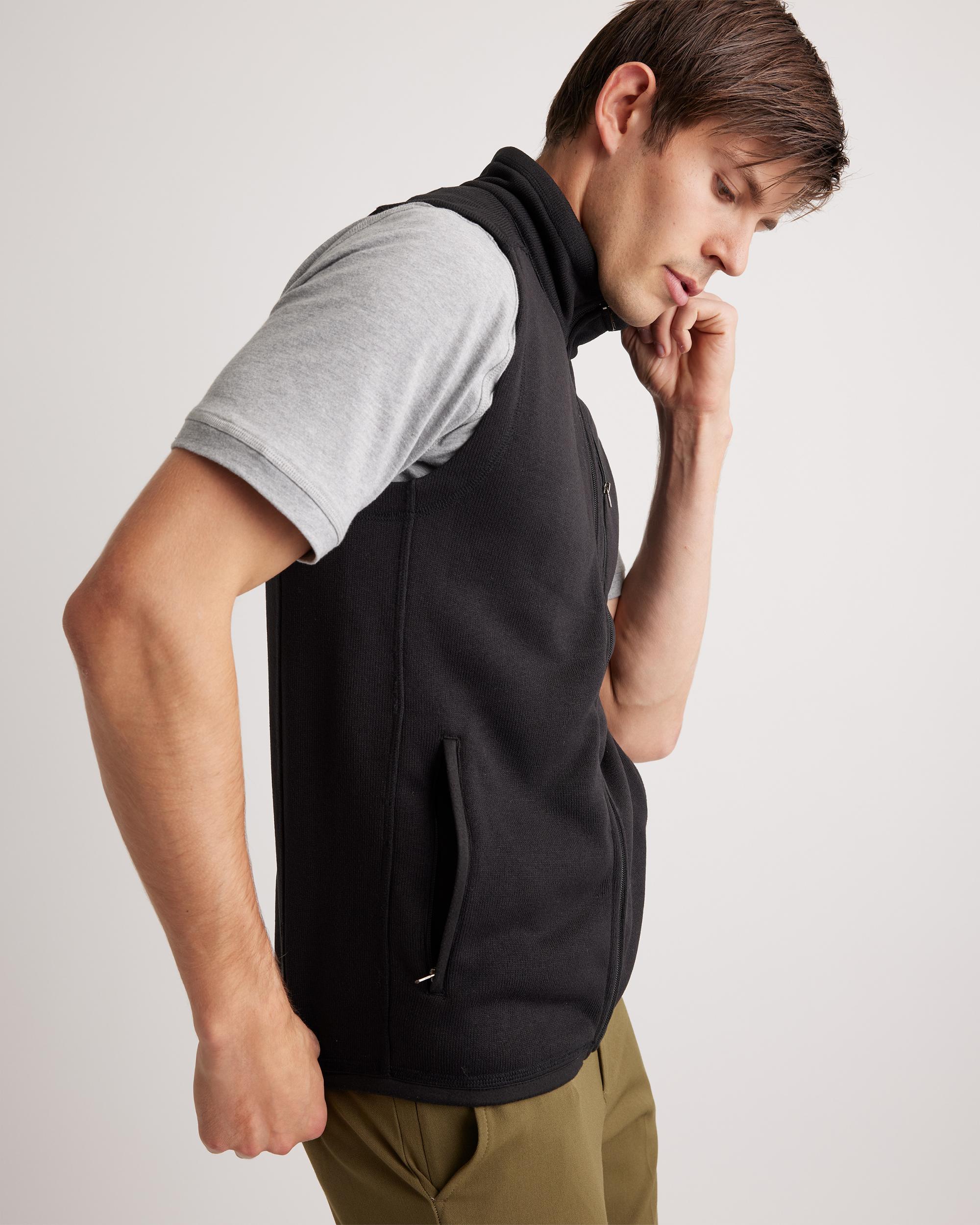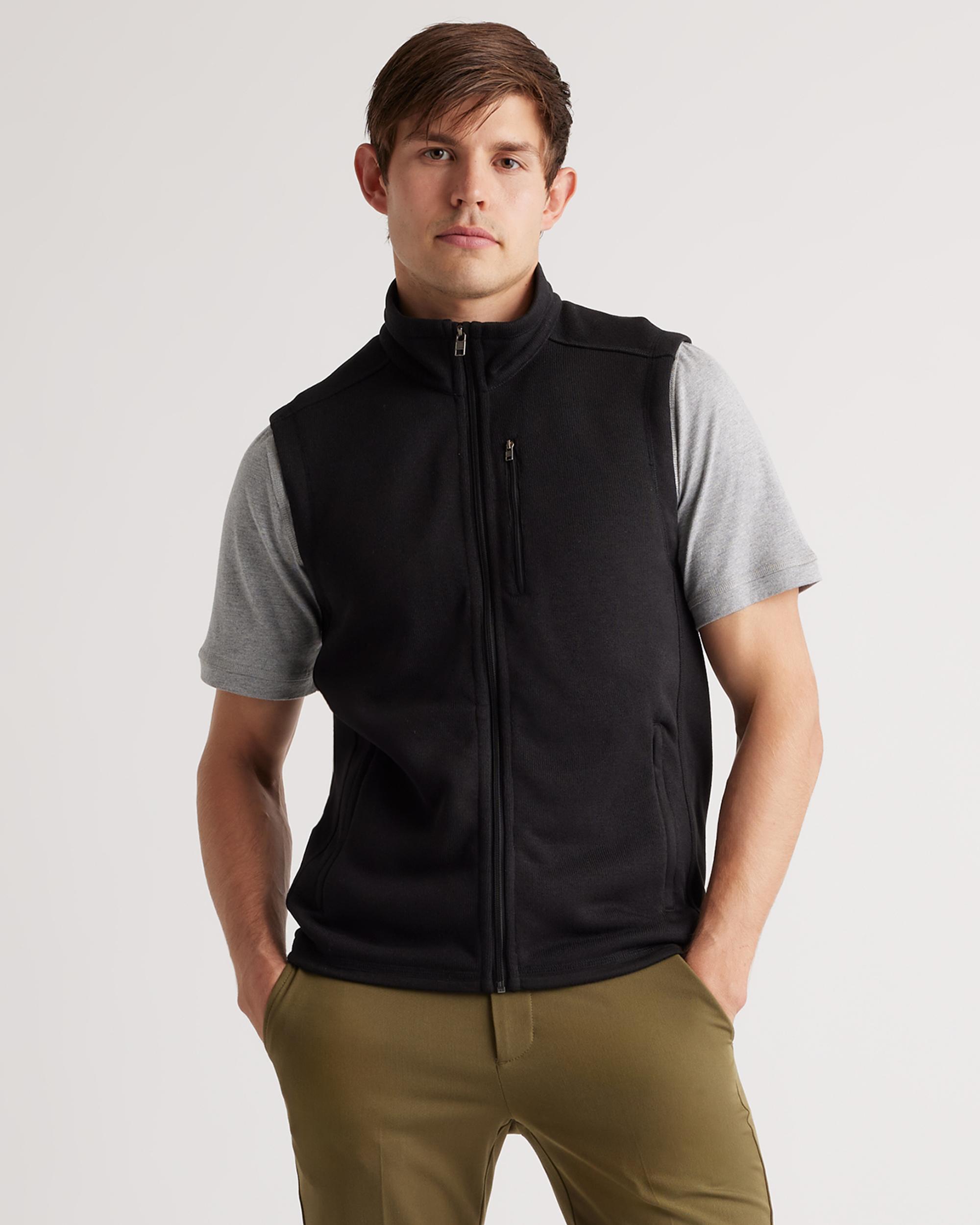 You next 'need it' for every day? This Sweater-Knit Fleece Full-Zip Vest. Whether you're layering up for an outdoor adventure or adding a cozy touch to an any-day outfit, this vest has you covered. The best part (besides the classic style, of course): It's made of 100% recycled materials that keep you warm while keeping plastic bottles out of oceans and landfills. | Quince | Men's Sweater-Knit Fleece Full-Zip Vest in Black, Size XL, Recycled Polyester