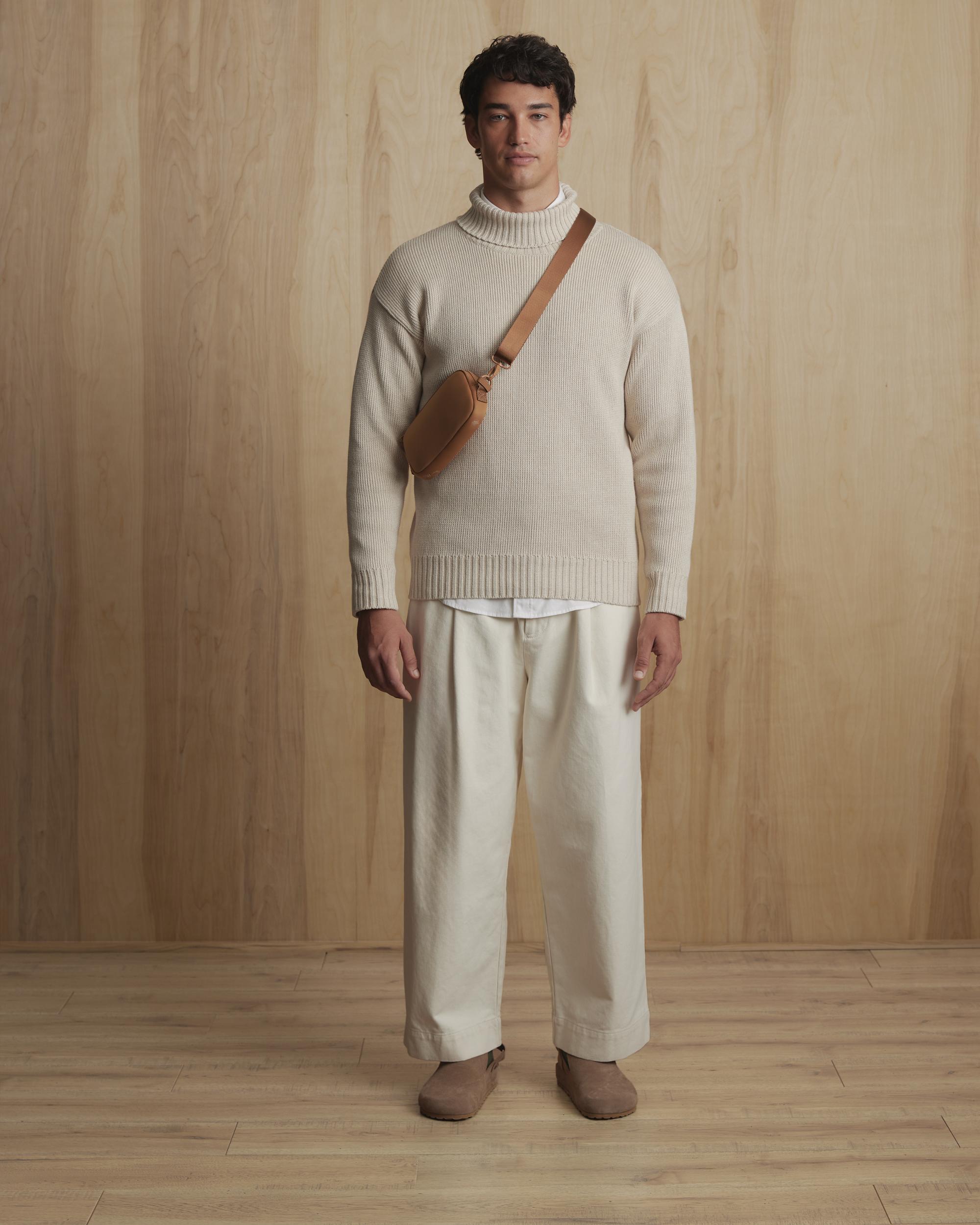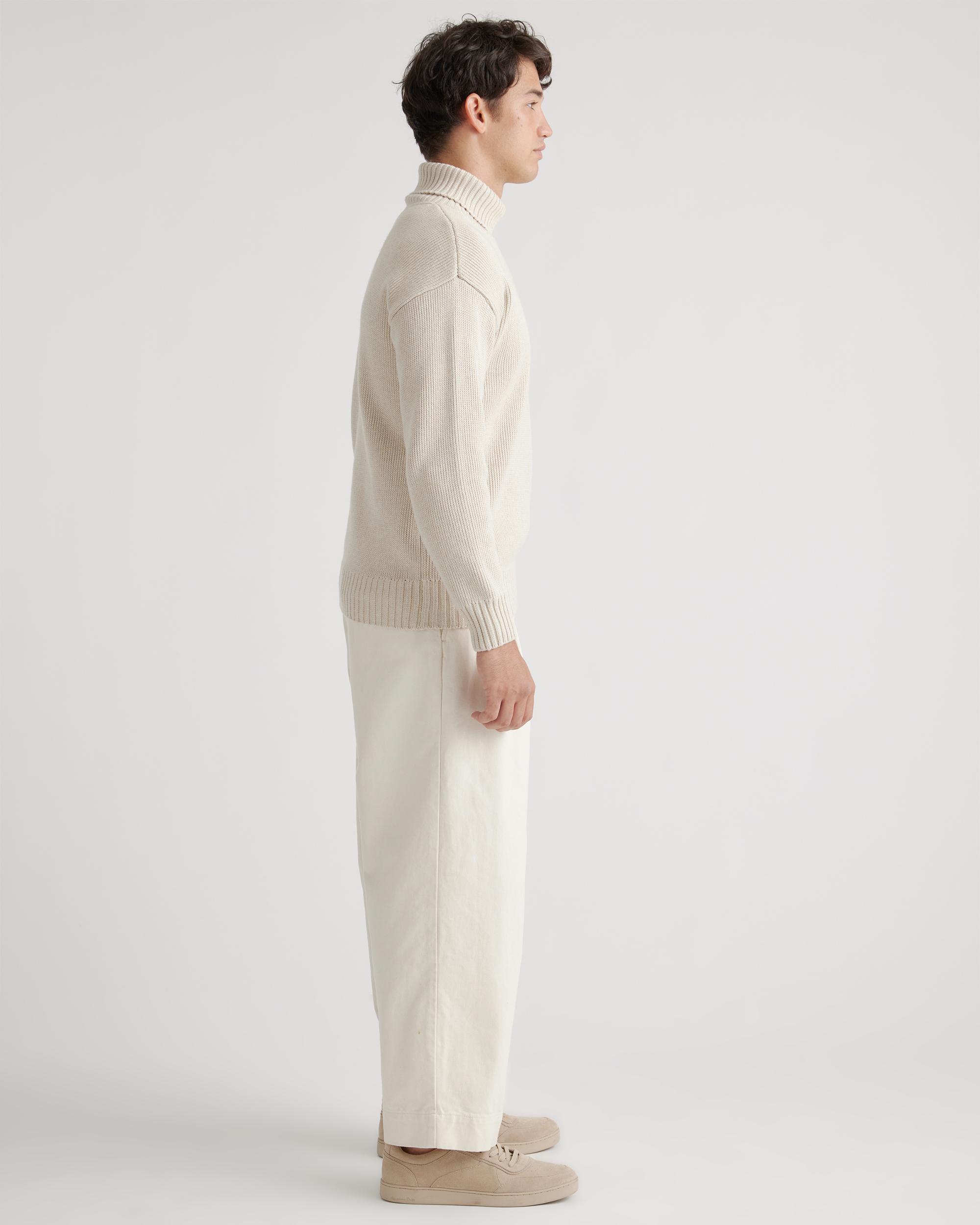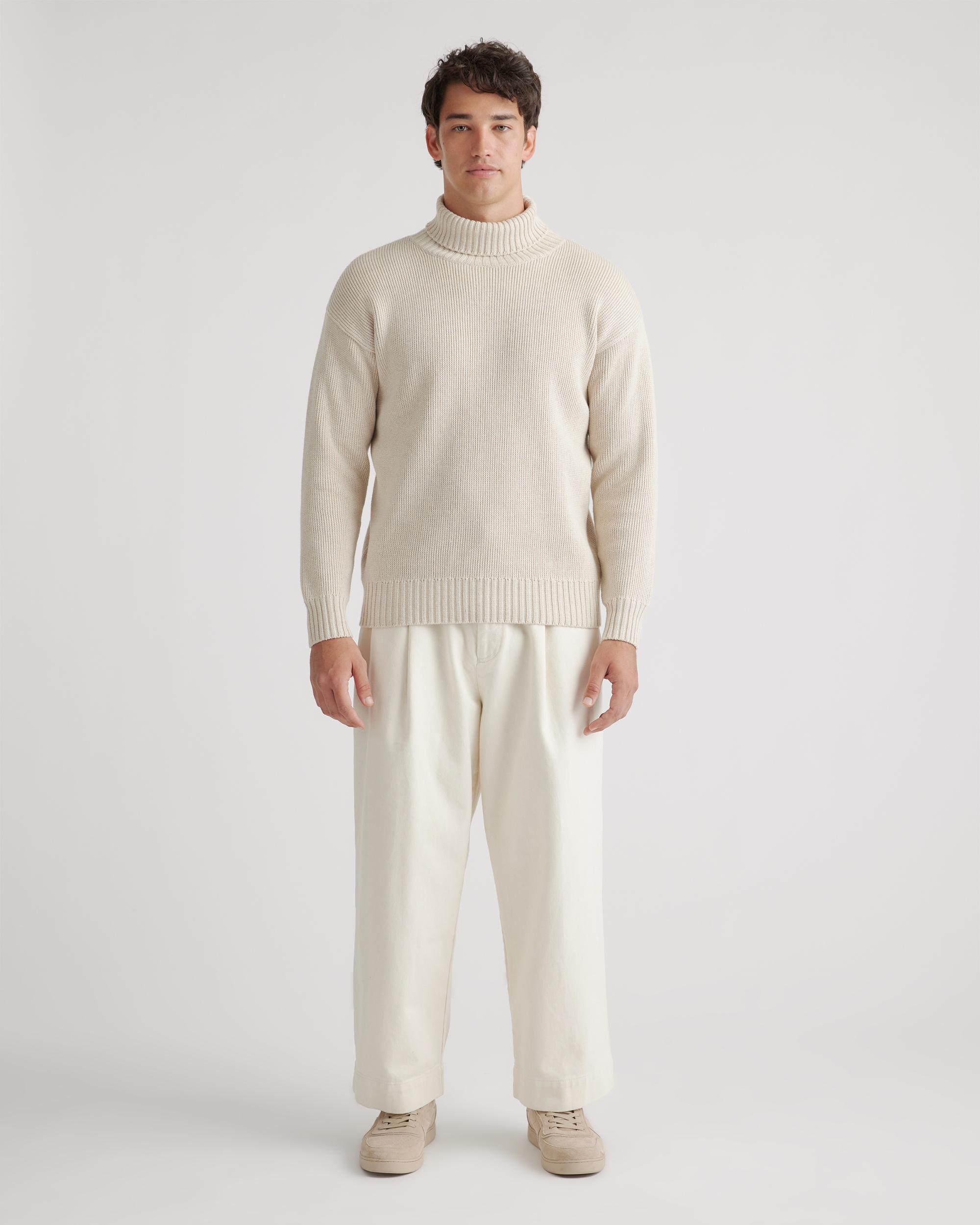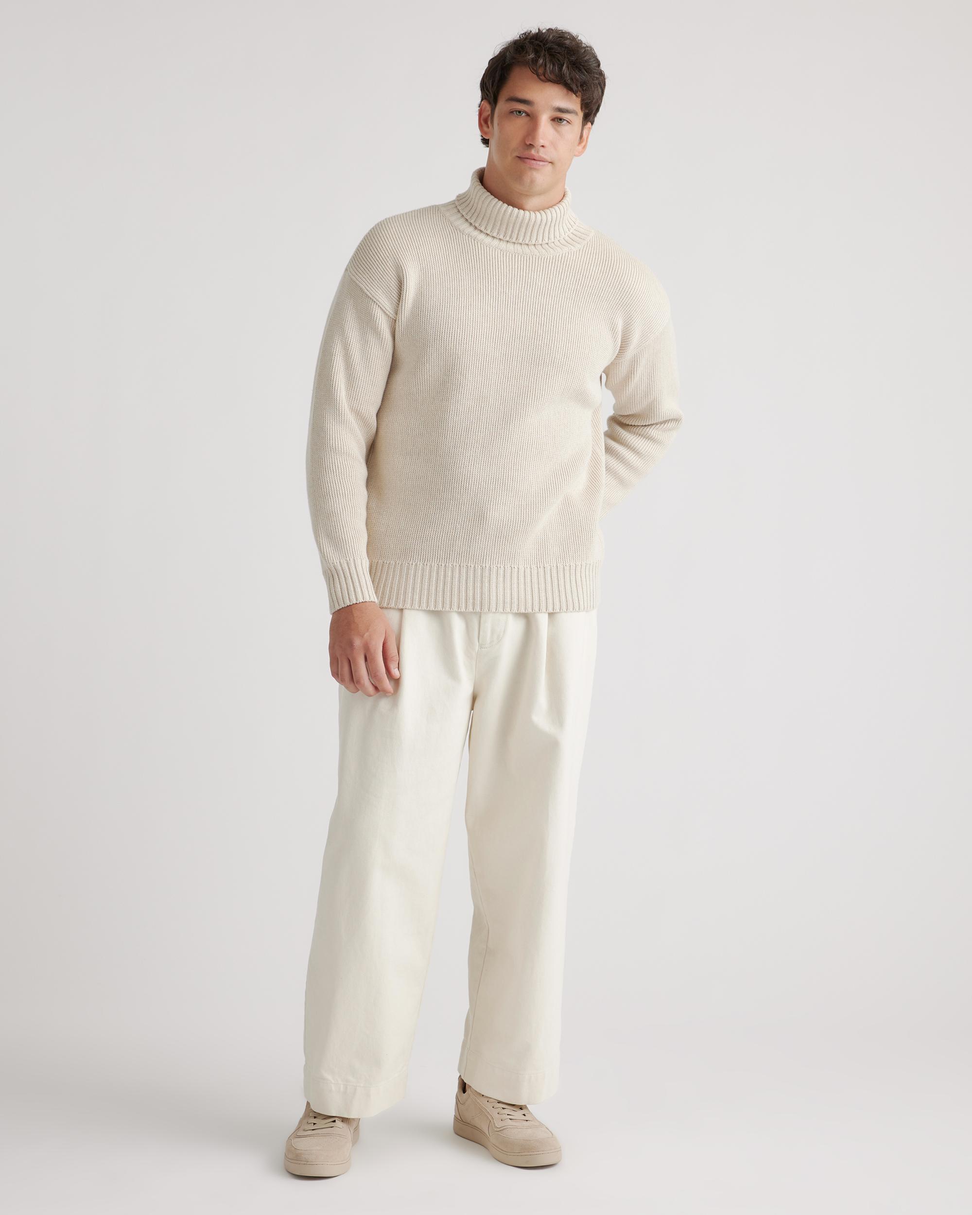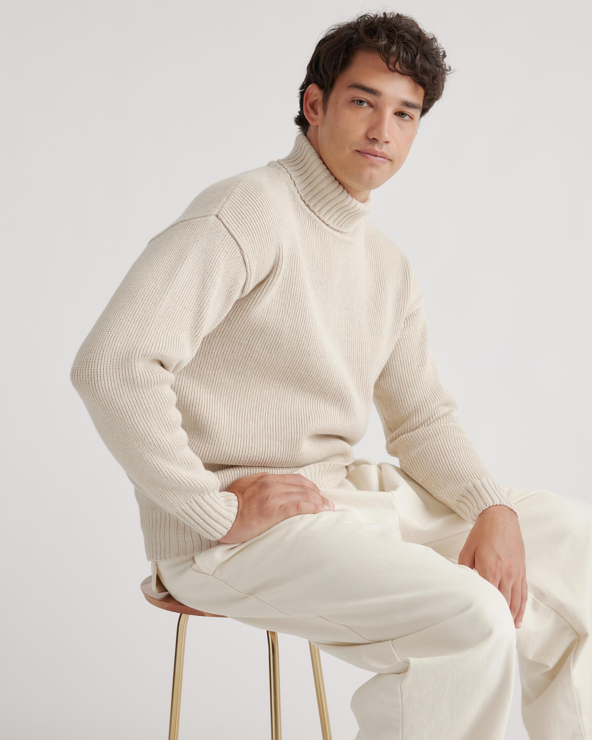 Meet your transitional wardrobe hero. As the temperature starts to drop, layer up with this timeless turtleneck sweater. Made from 100% organic cotton, it's soft on your skin and timeless by design. With a classic ribbed design and contrast trim, it pairs equally well with jeans and dressier trousers. | Quince | Men's Turtleneck Sweater in Speckled Beige, Size Small, Organic Cotton
