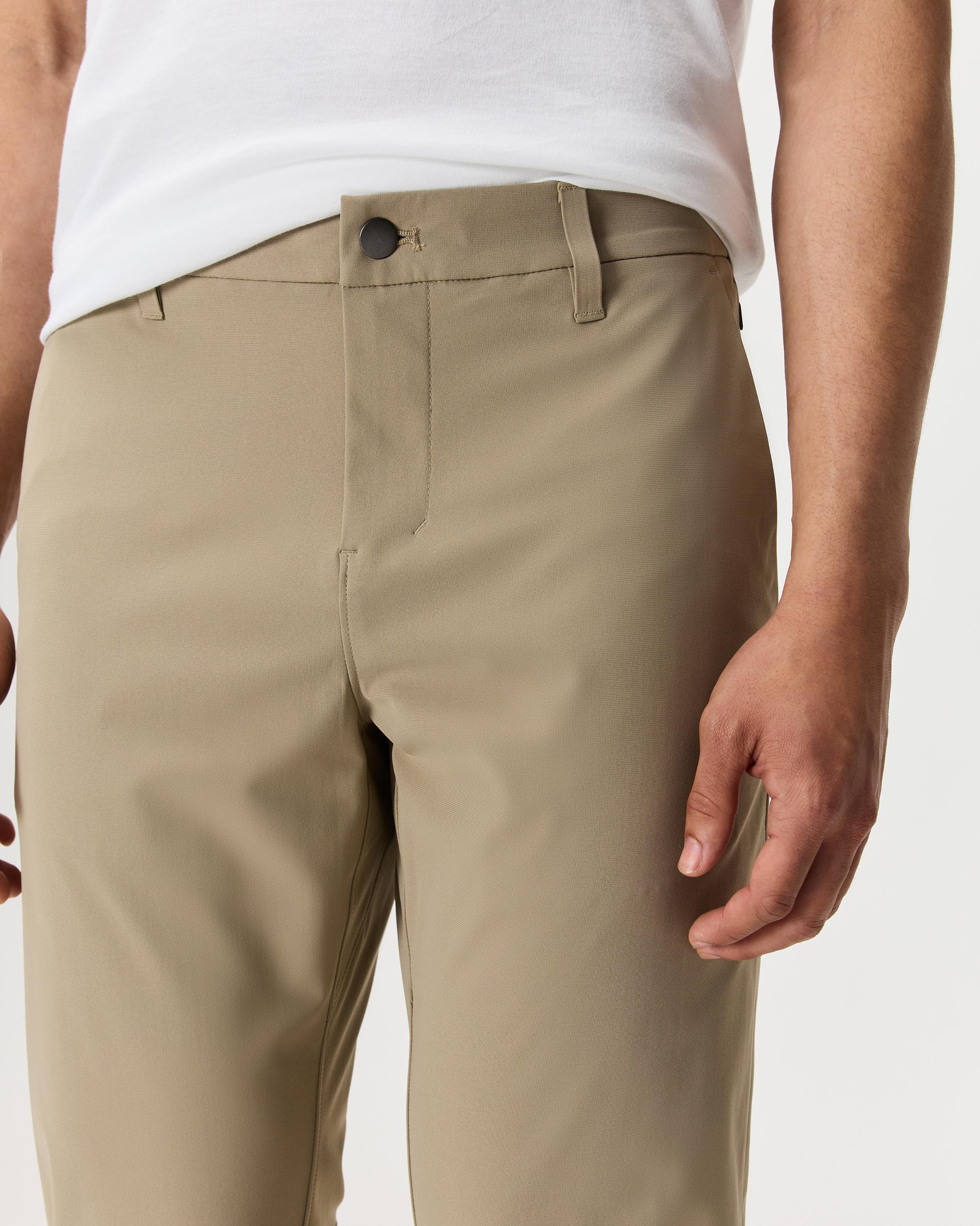 Stay sharp on the move with our most elevated performance pant. The Commuter Pant features a classic chino design with slanted side-entry pockets for a clean front profile—easy to dress up with a button-down or blazer. Made from premium performance fabric with 4-way stretch, it's moisture-wicking, wrinkle-resistant, and finished with smart details: a hidden side zip pocket, gusset for mobility, and welted back pockets with snap closures to secure your essentials from bike ride to boardroom. | Quince | Men's Ultimate Commuter Pants in Sand Dune, Size 34X30, 100% Polyester
