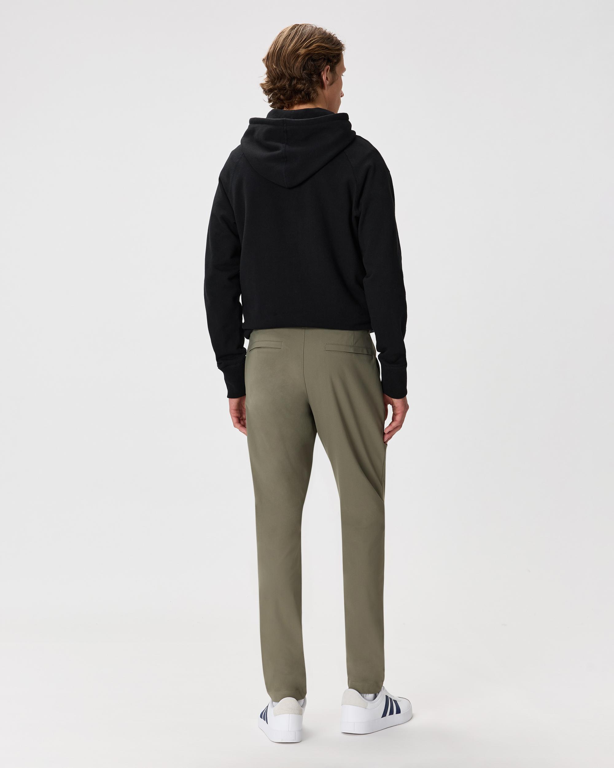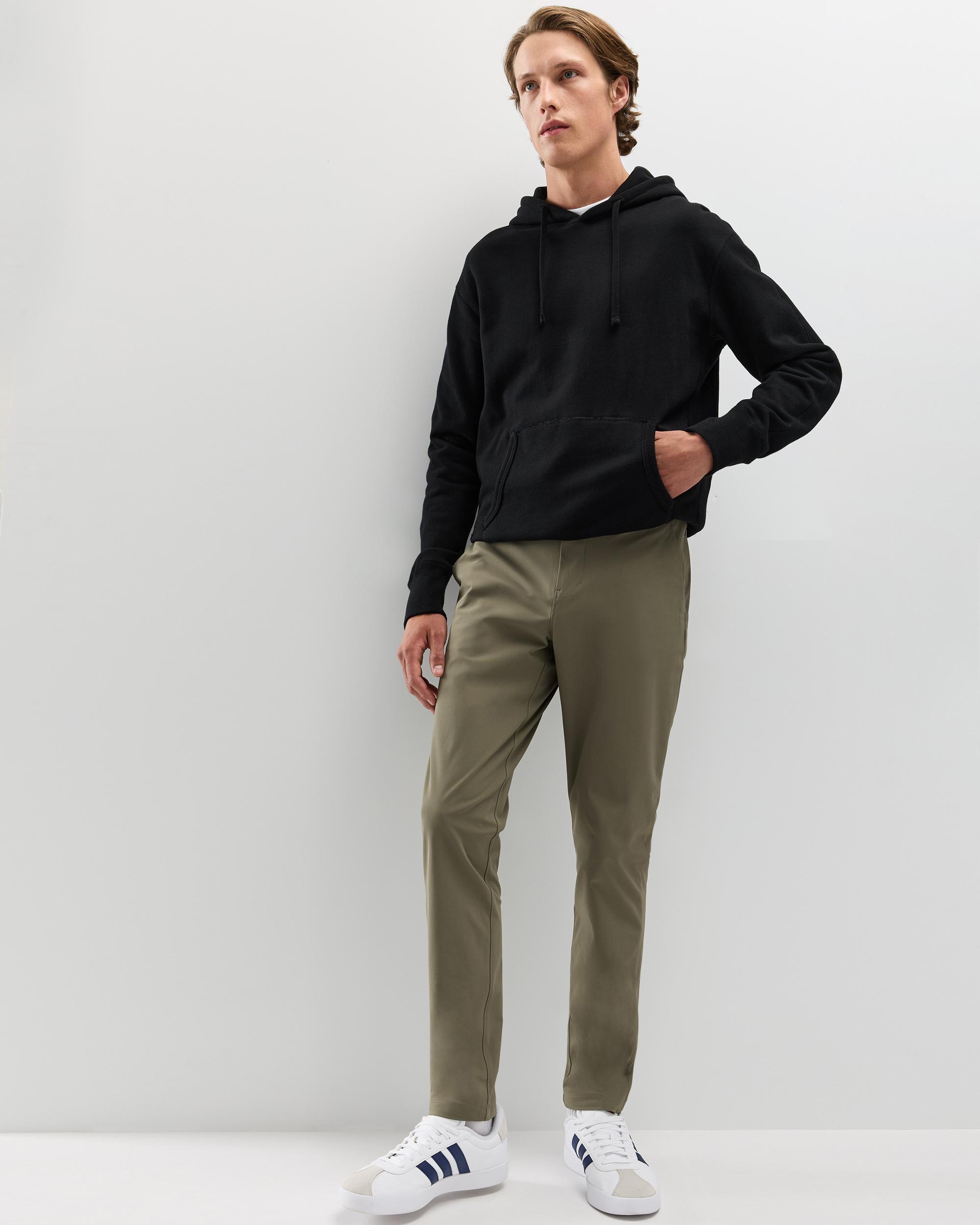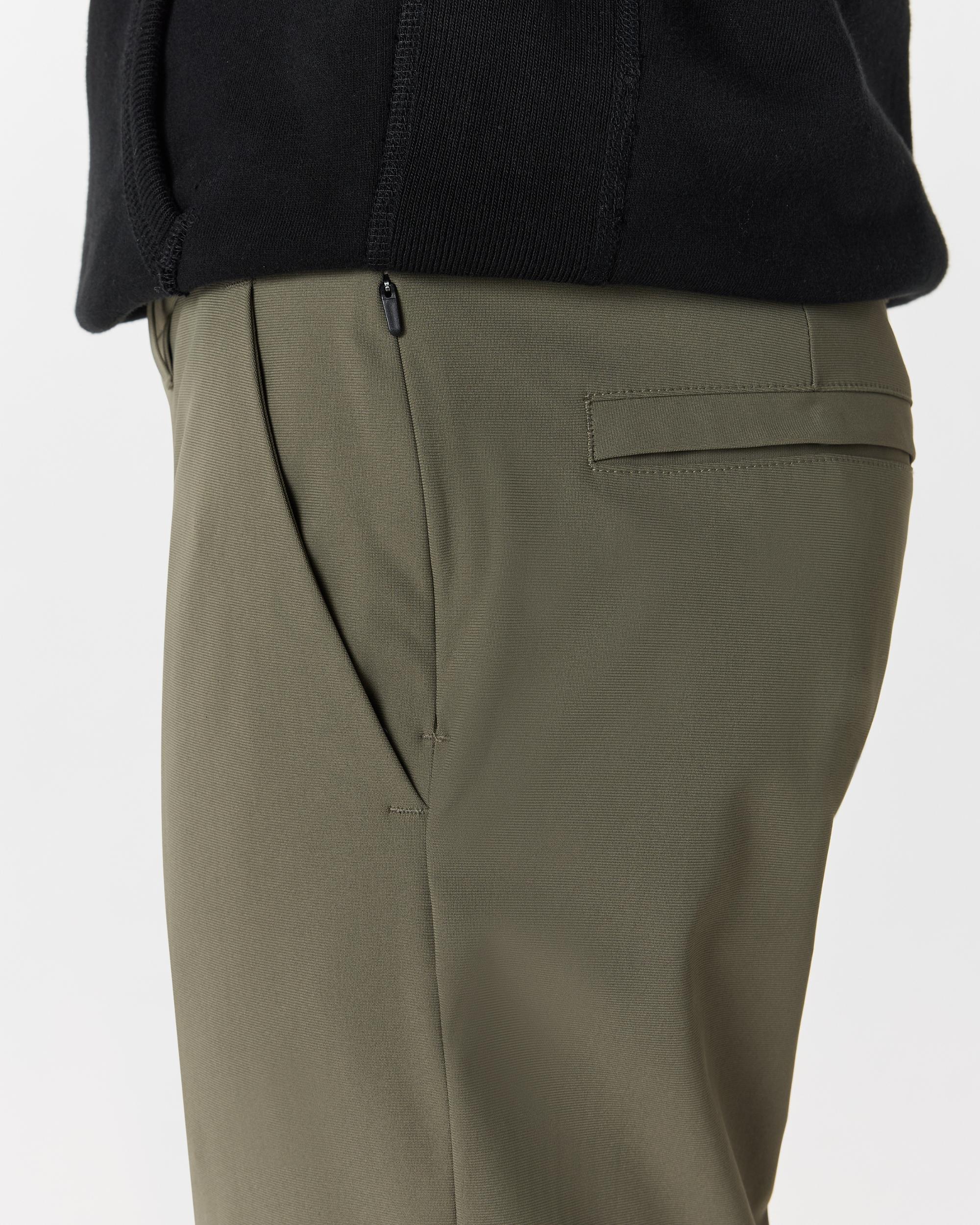 Stay sharp on the move with our most elevated performance pant. The Commuter Pant features a classic chino design with slanted side-entry pockets for a clean front profile—easy to dress up with a button-down or blazer. Made from premium performance fabric with 4-way stretch, it's moisture-wicking, wrinkle-resistant, and finished with smart details: a hidden side zip pocket, gusset for mobility, and welted back pockets with snap closures to secure your essentials from bike ride to boardroom. | Quince | Men's Ultimate Commuter Pants in Faded Cargo Green, Size 34X34, 100% Polyester
