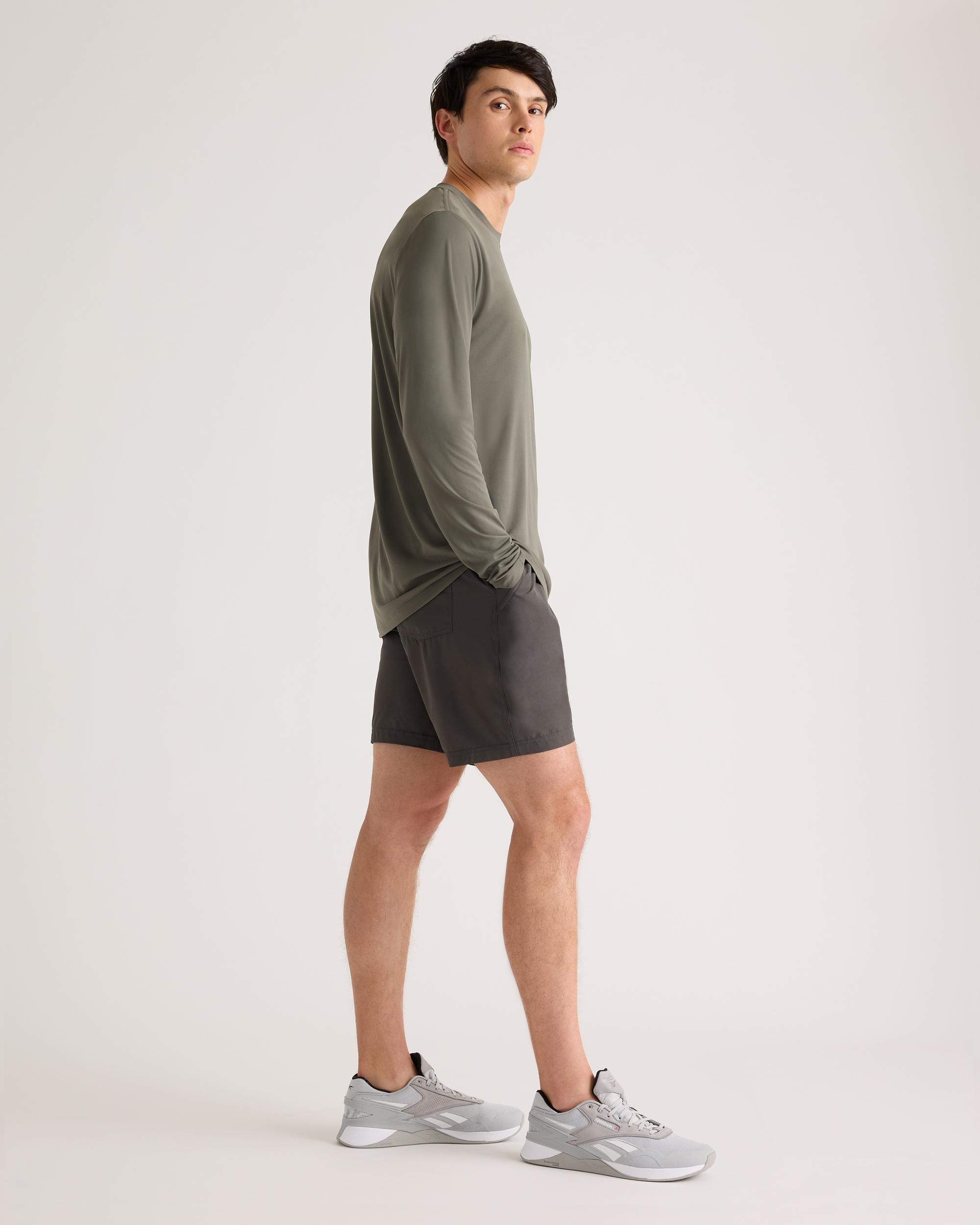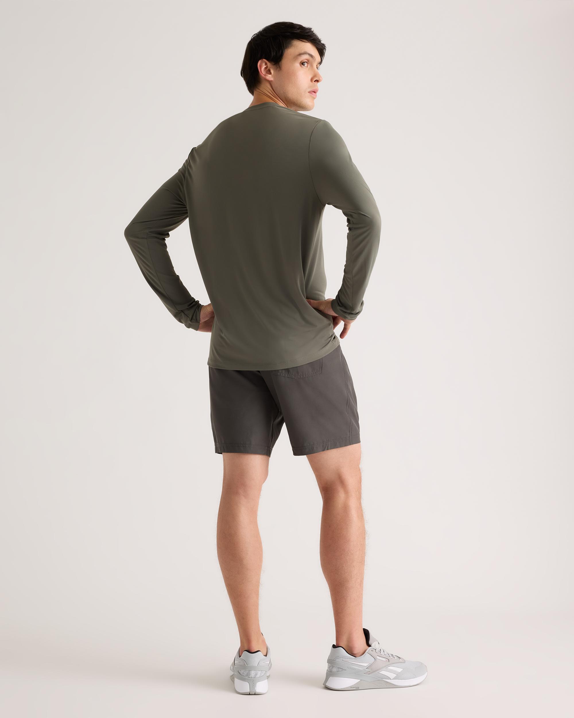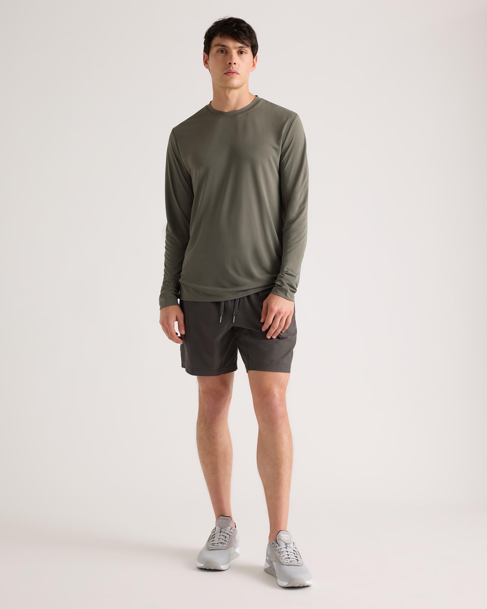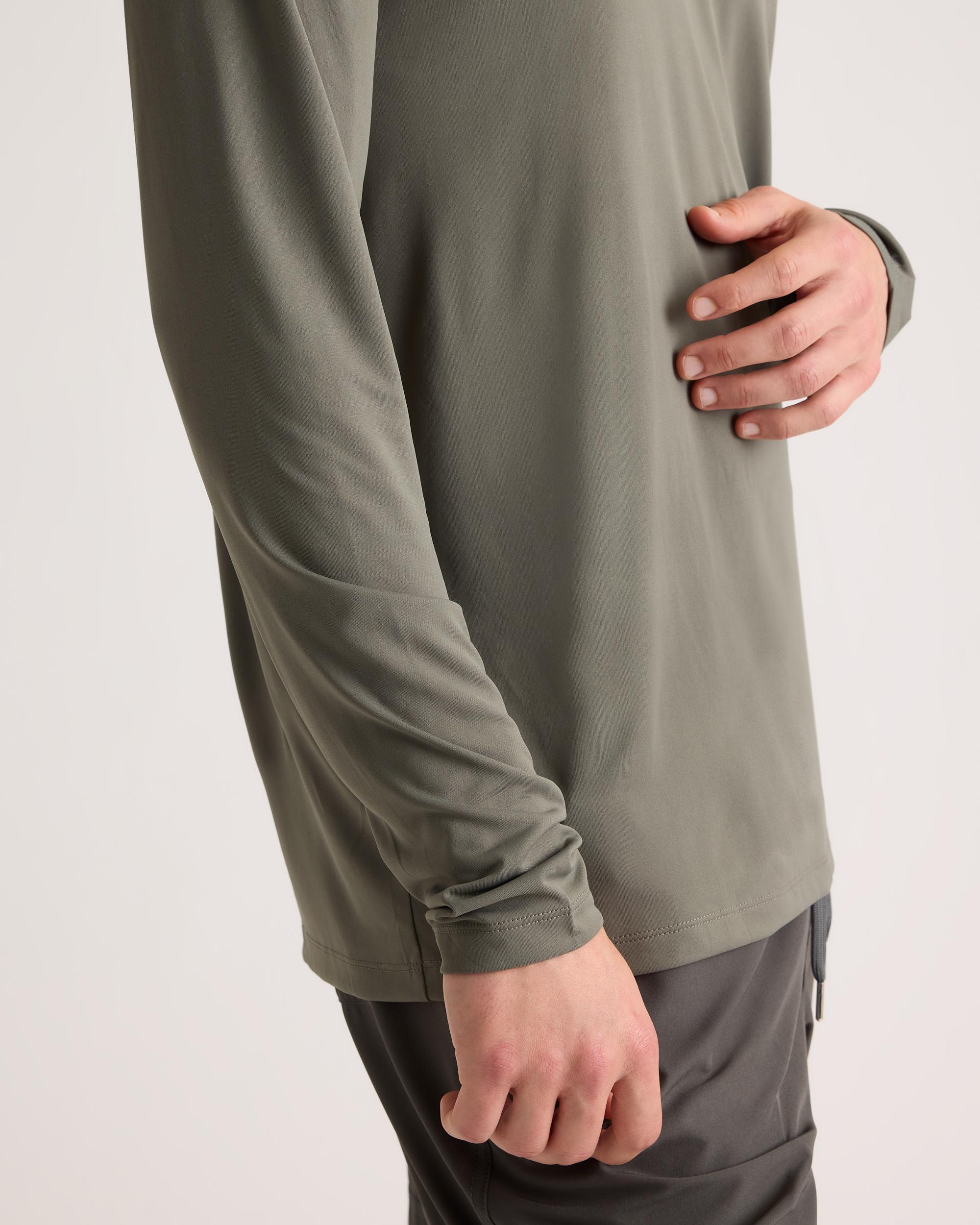 Our Ultra-Light Hike Long Sleeve Tee is the perfect staple for any outdoor adventure. Made from ultra-light weight fabric, this tee offers wicking and quick-dry technology to keep you comfortable and dry during your longest treks or toughest training sessions. The anti-odor feature ensures you stay fresh, while the UPF 30 protection keeps you safe from the sun's harmful rays. | Quince | Men's Ultra-Light Hike Long Sleeve T-Shirt in Heritage Olive, Size XXL, Recycled Polyester
