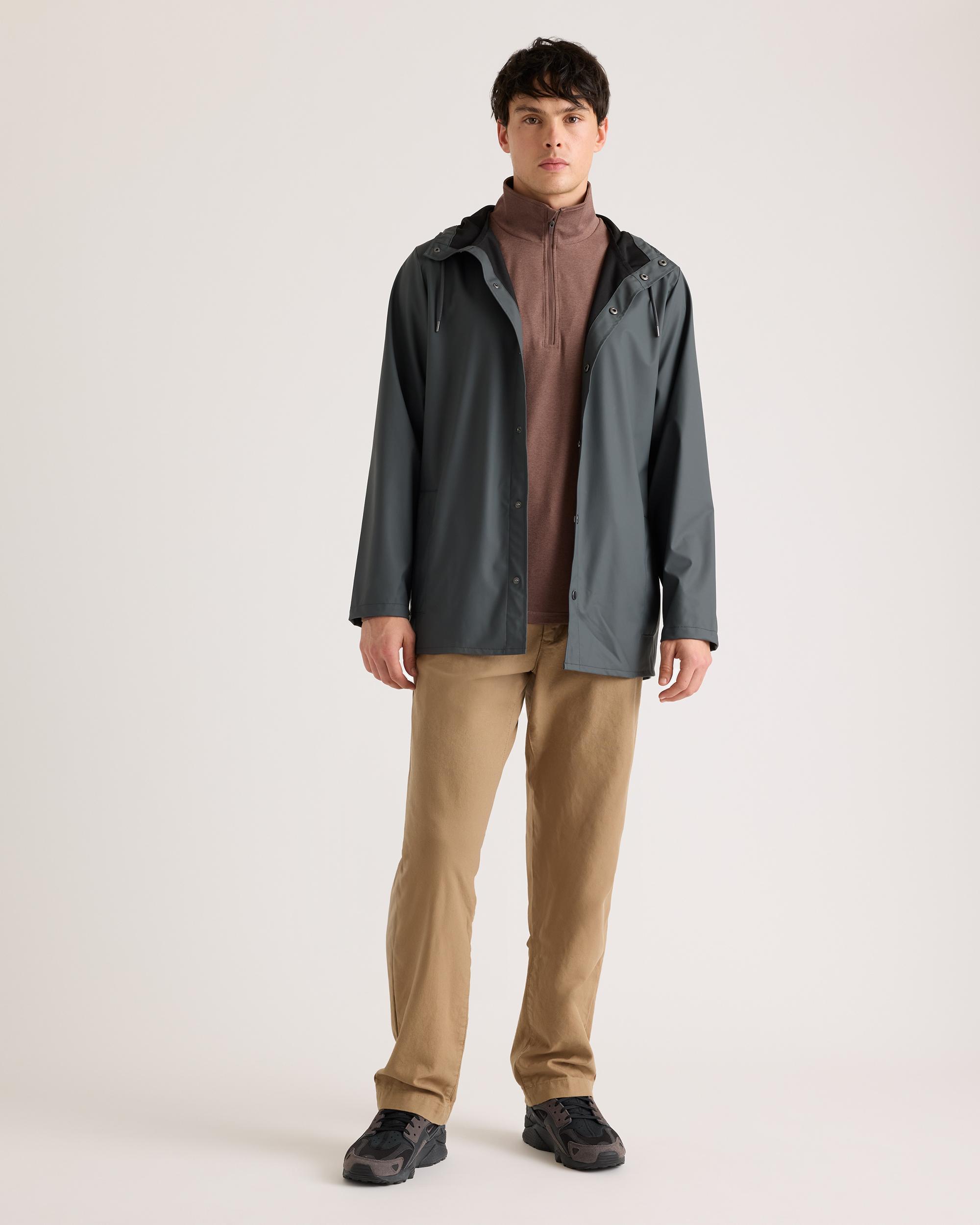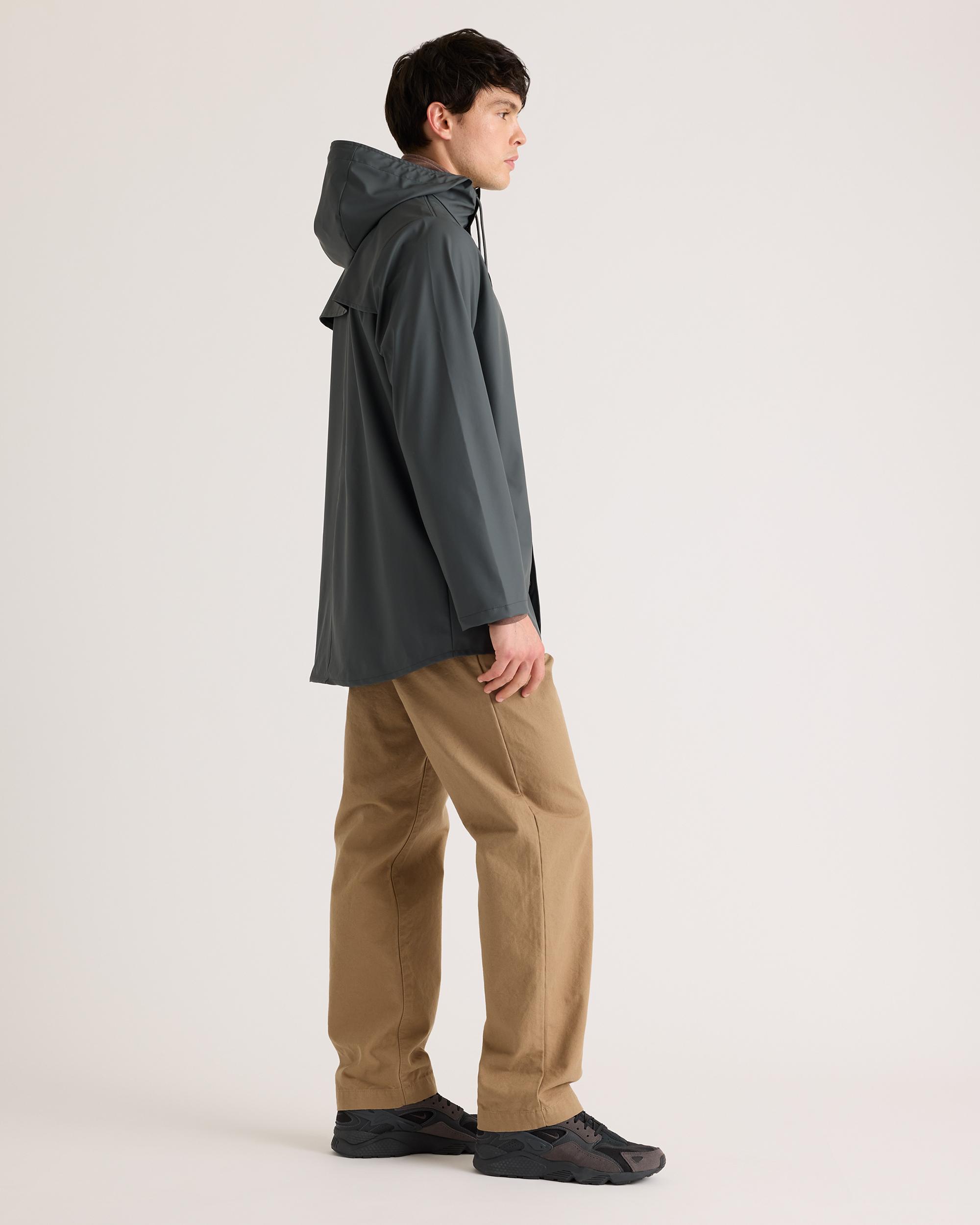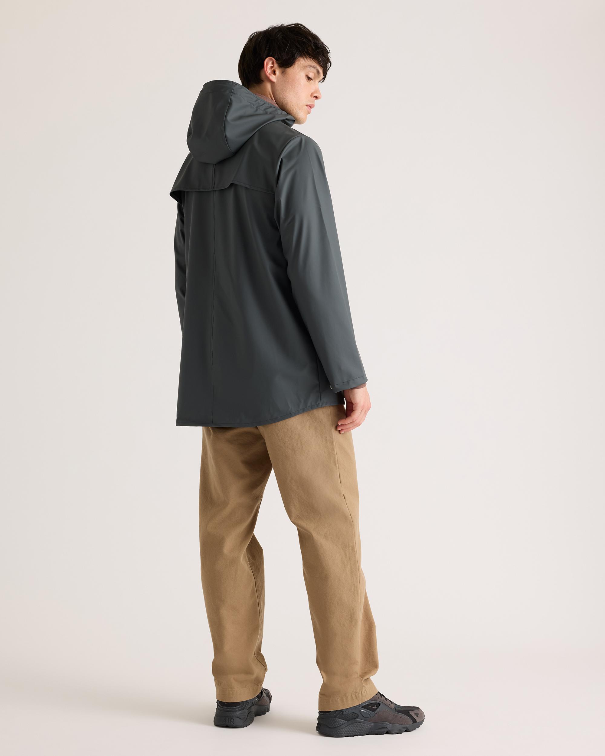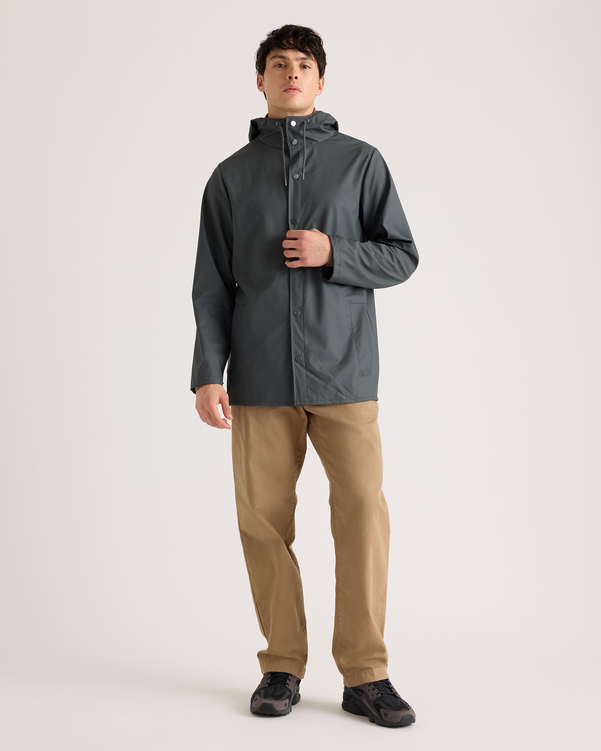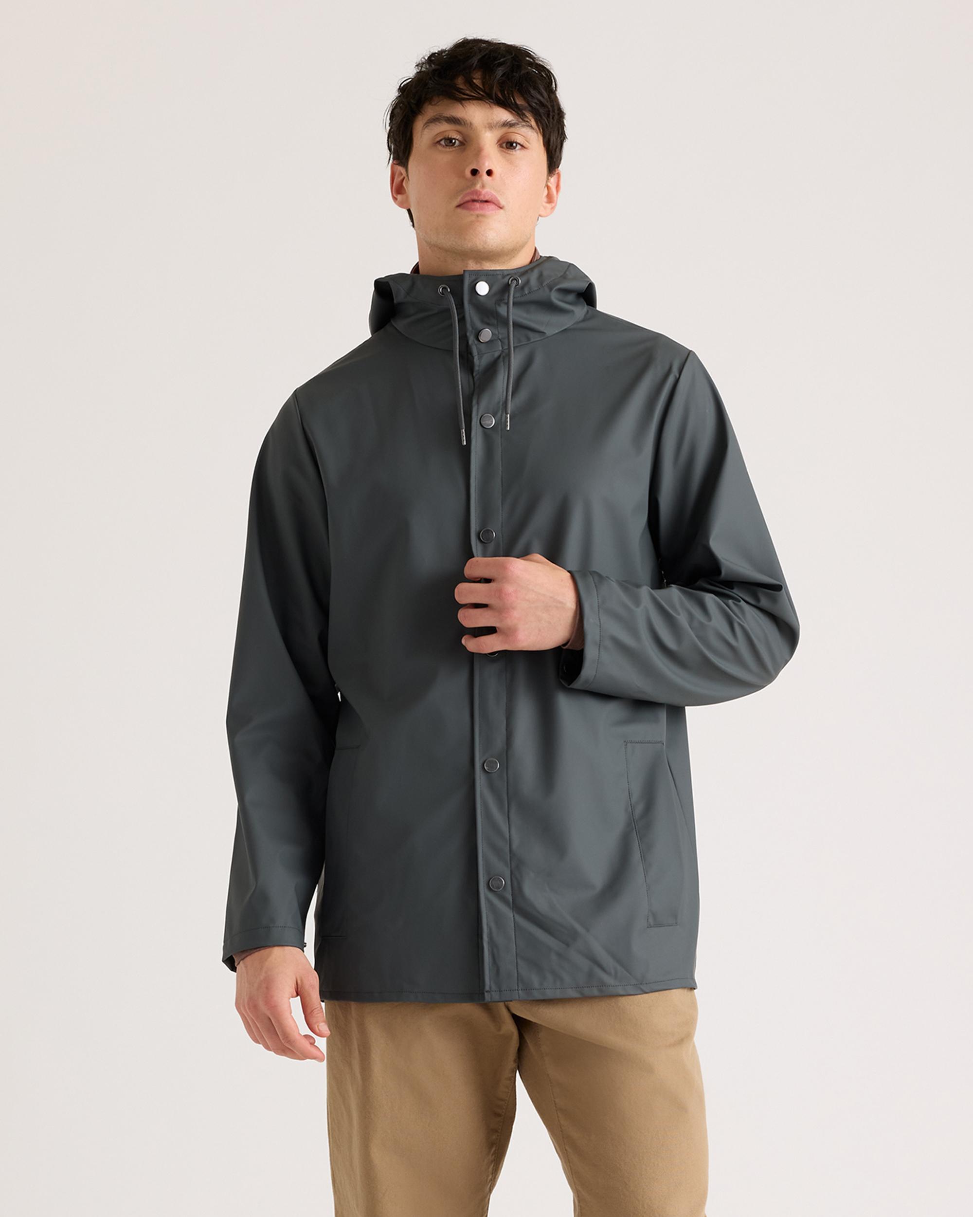 Introducing our Waterproof Rubberized Rain Jacket – a sleek and stylish solution for rainy days. Crafted from a cutting-edge rubberized fabric, this jacket keeps you dry without compromising on style. The smooth, matte finish and minimal silhouette give it a sharp, modern look that easily elevates your outerwear game. Looking for something longer? Try our longer length. | Quince | Men's Waterproof Rubberized Rain Jacket in Slate, Size XXL, Recycled Polyester