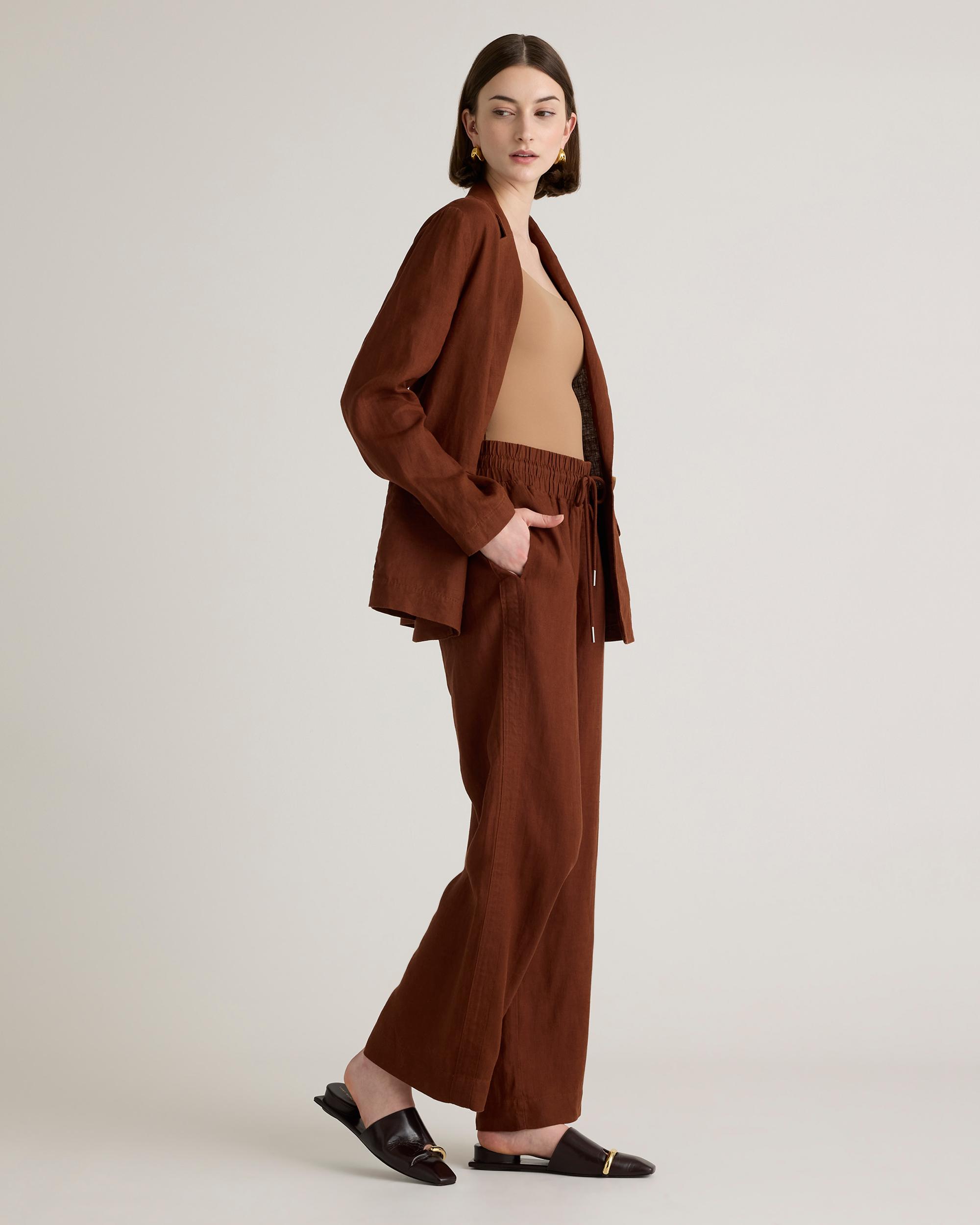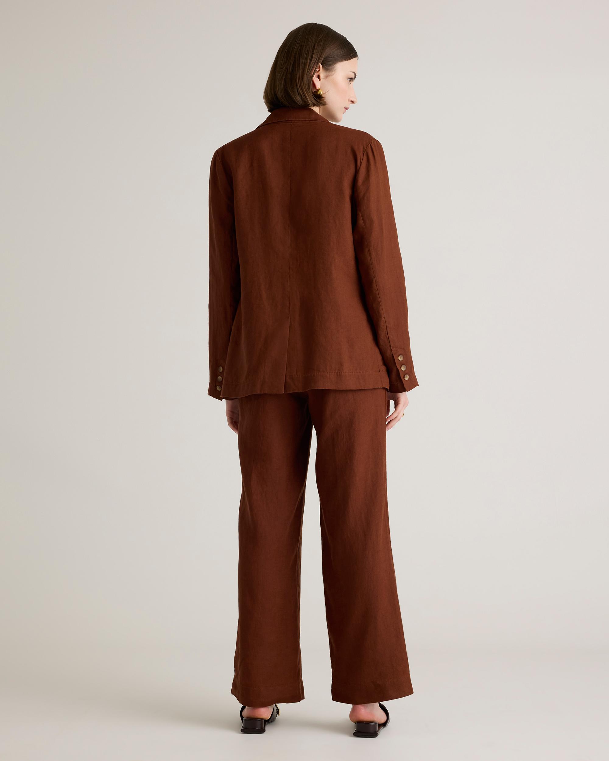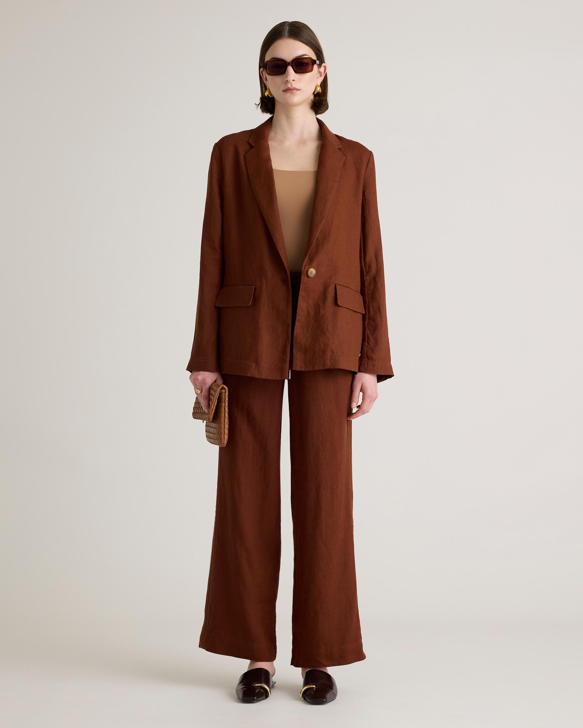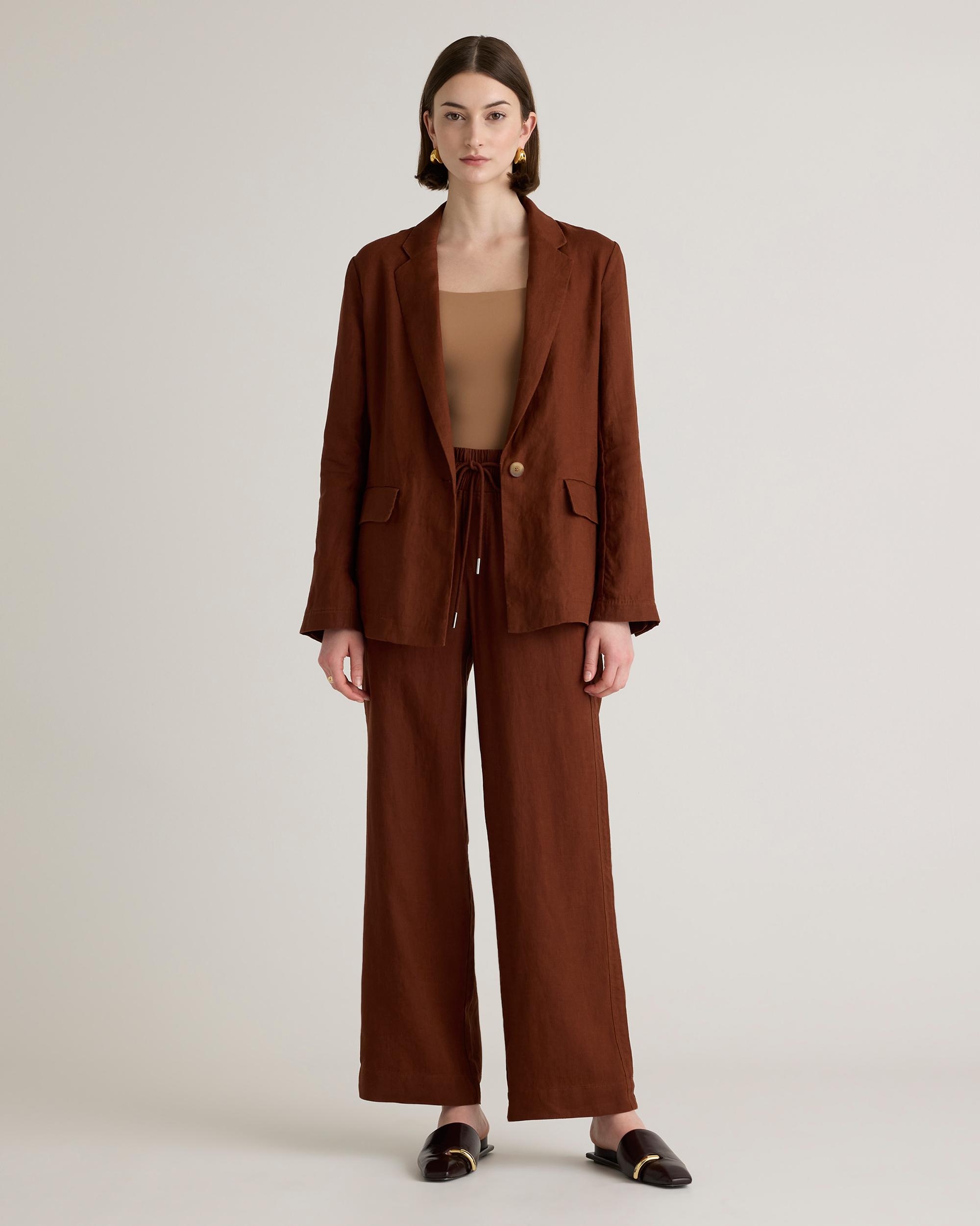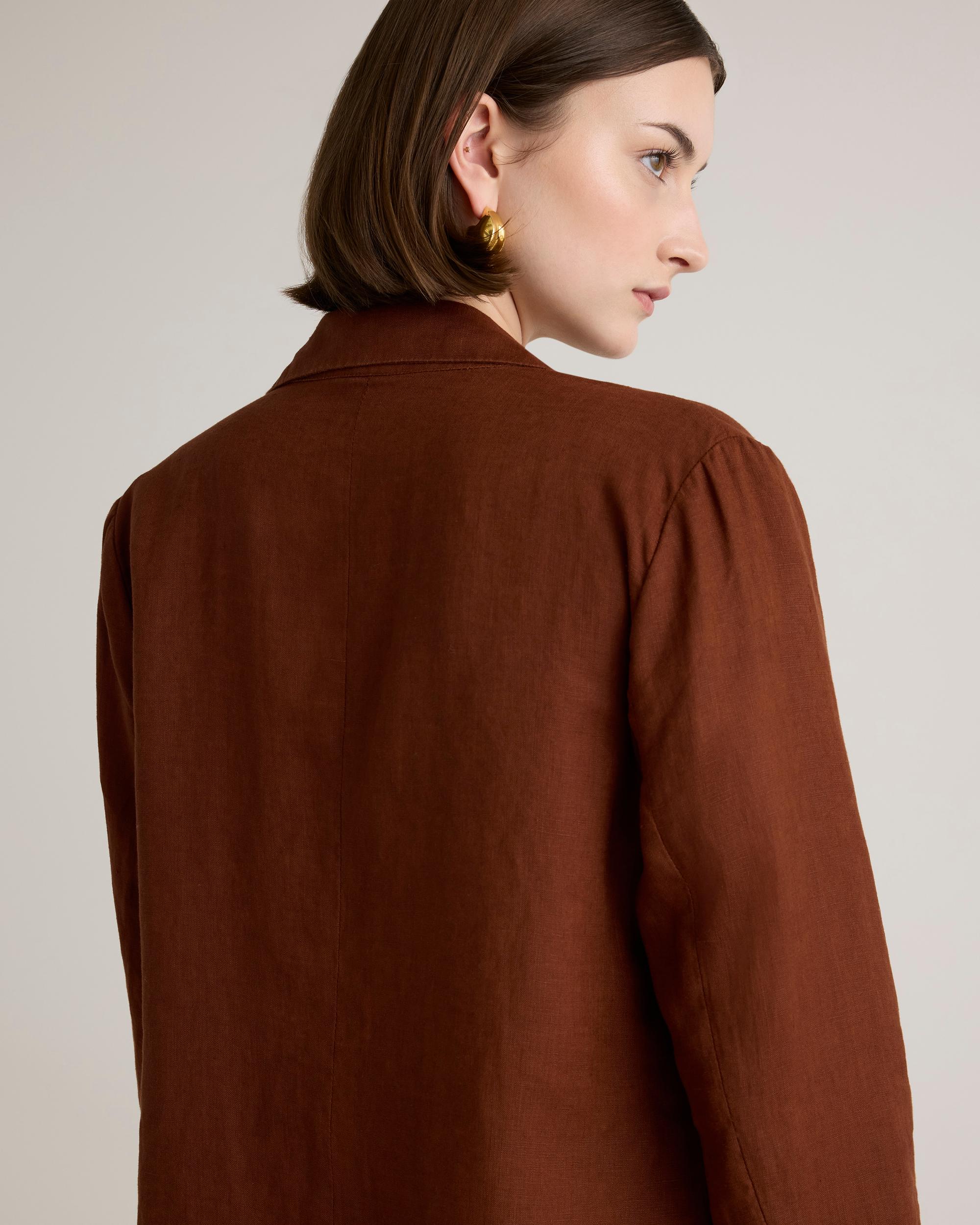 Who doesn't want to throw on the effortless look of linen to top off their outfit? The single-breasted European Linen Blazer is here to do just that. Relaxed fit, functional pockets, breathable, and lightweight. We love her for work, vacation, and weekends—versatile is an understatement. | Quince | Women's 100% European Linen Blazer in Chocolate, Size XS