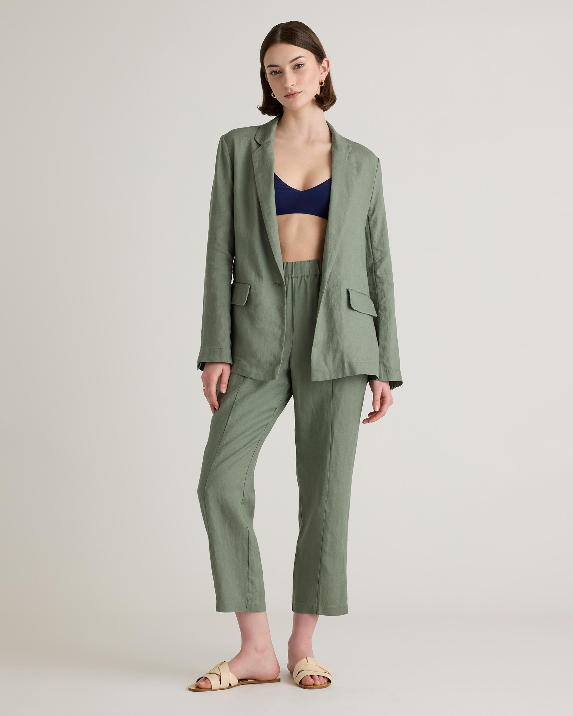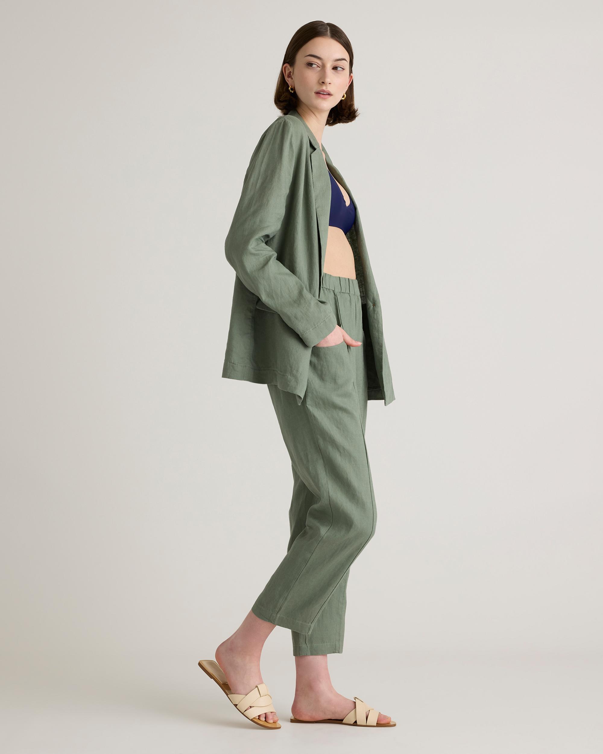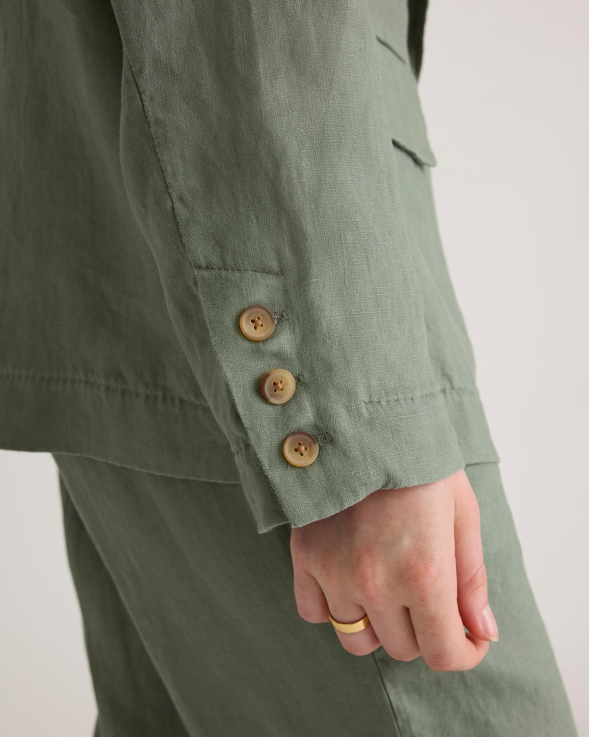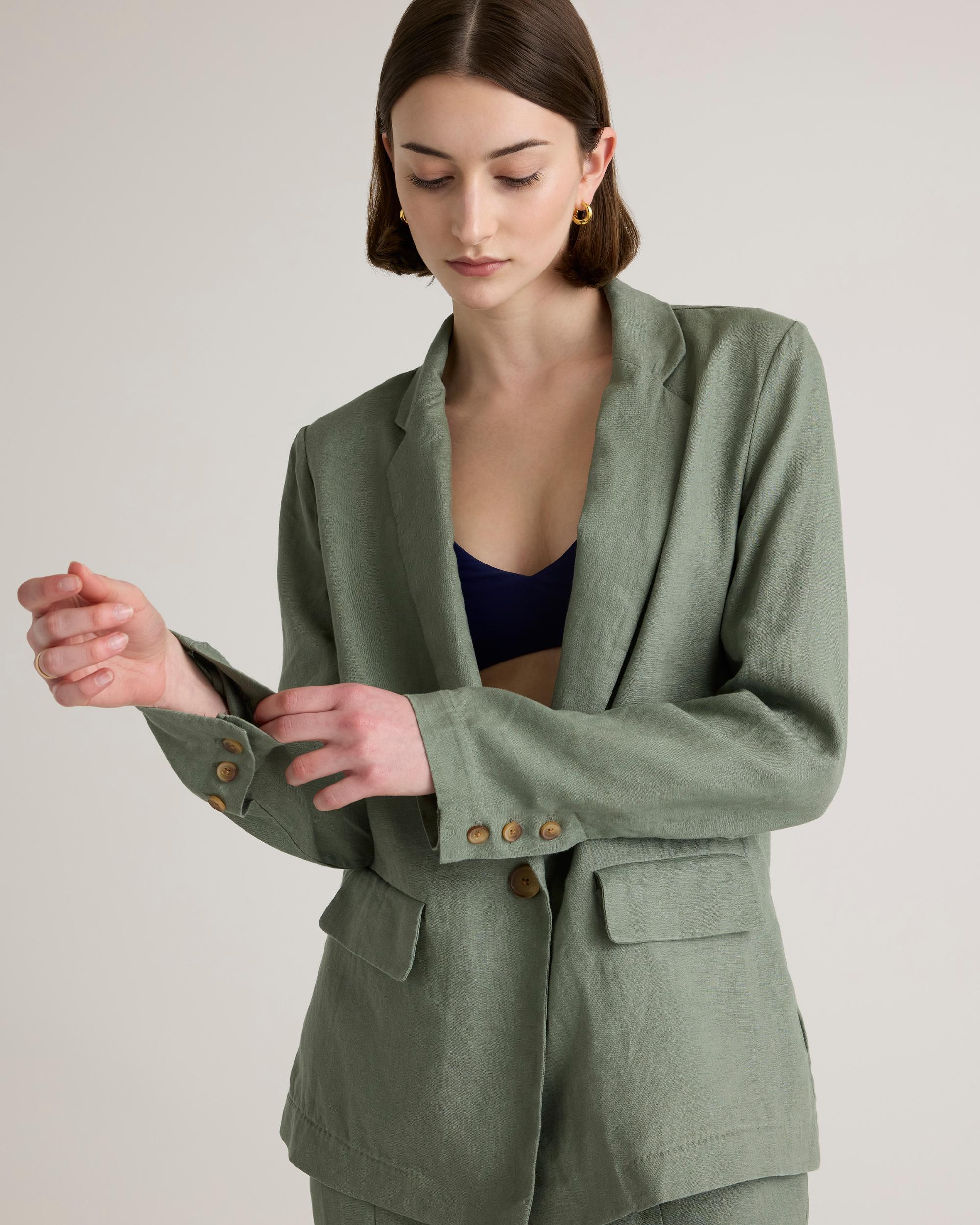 Who doesn't want to throw on the effortless look of linen to top off their outfit? The single-breasted European Linen Blazer is here to do just that. Relaxed fit, functional pockets, breathable, and lightweight. We love her for work, vacation, and weekends—versatile is an understatement. | Quince | Women's 100% European Linen Blazer in Light Cargo, Size XS