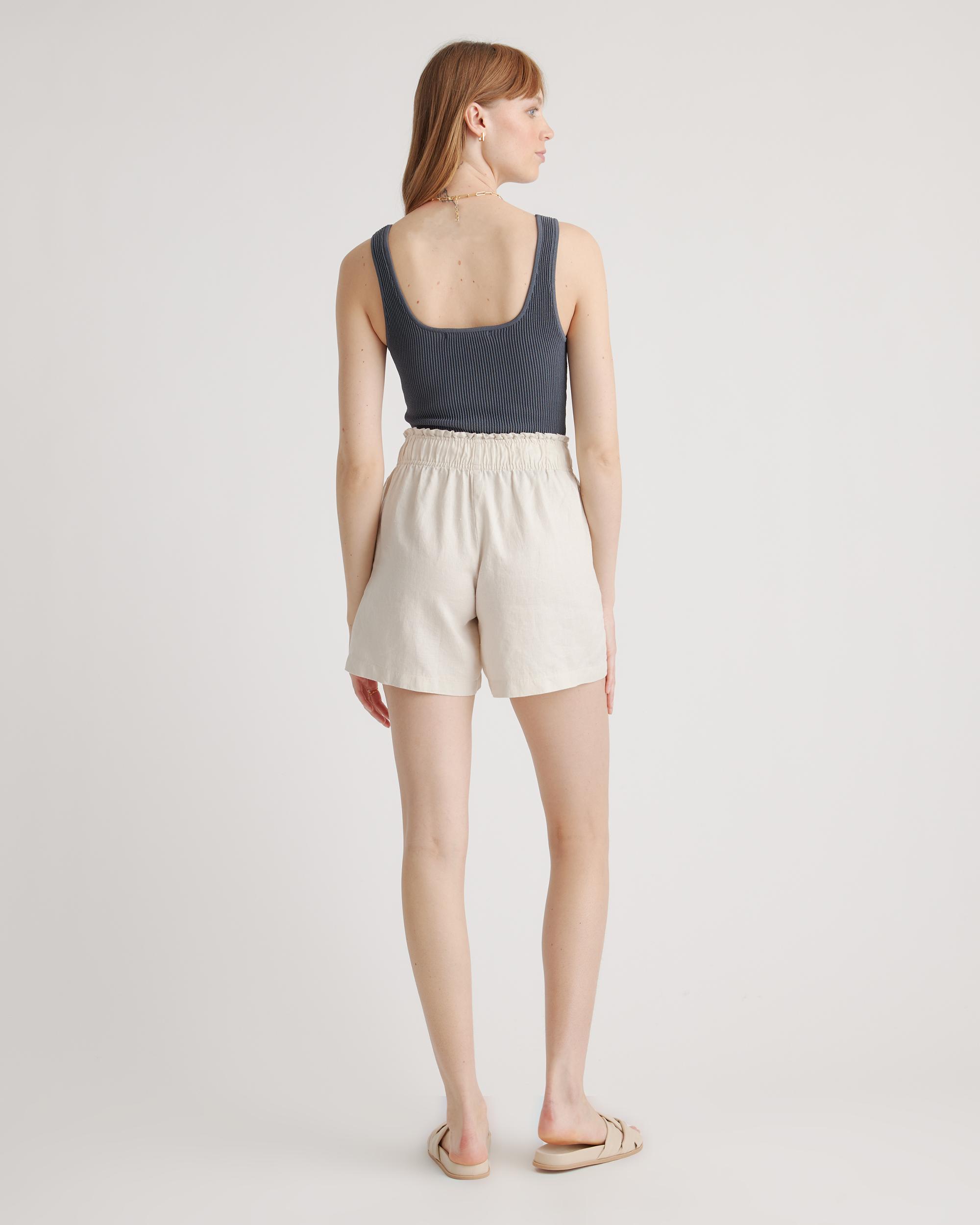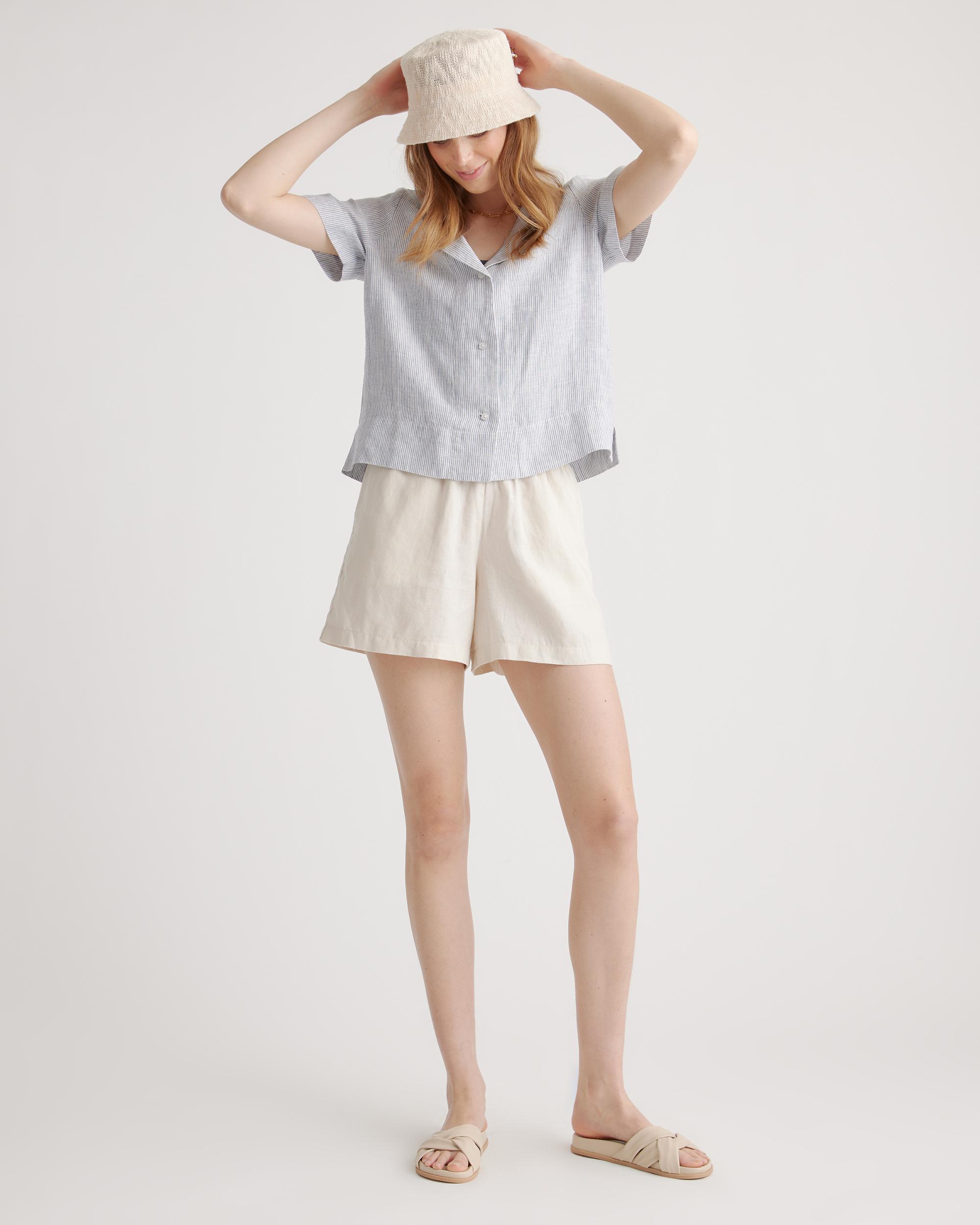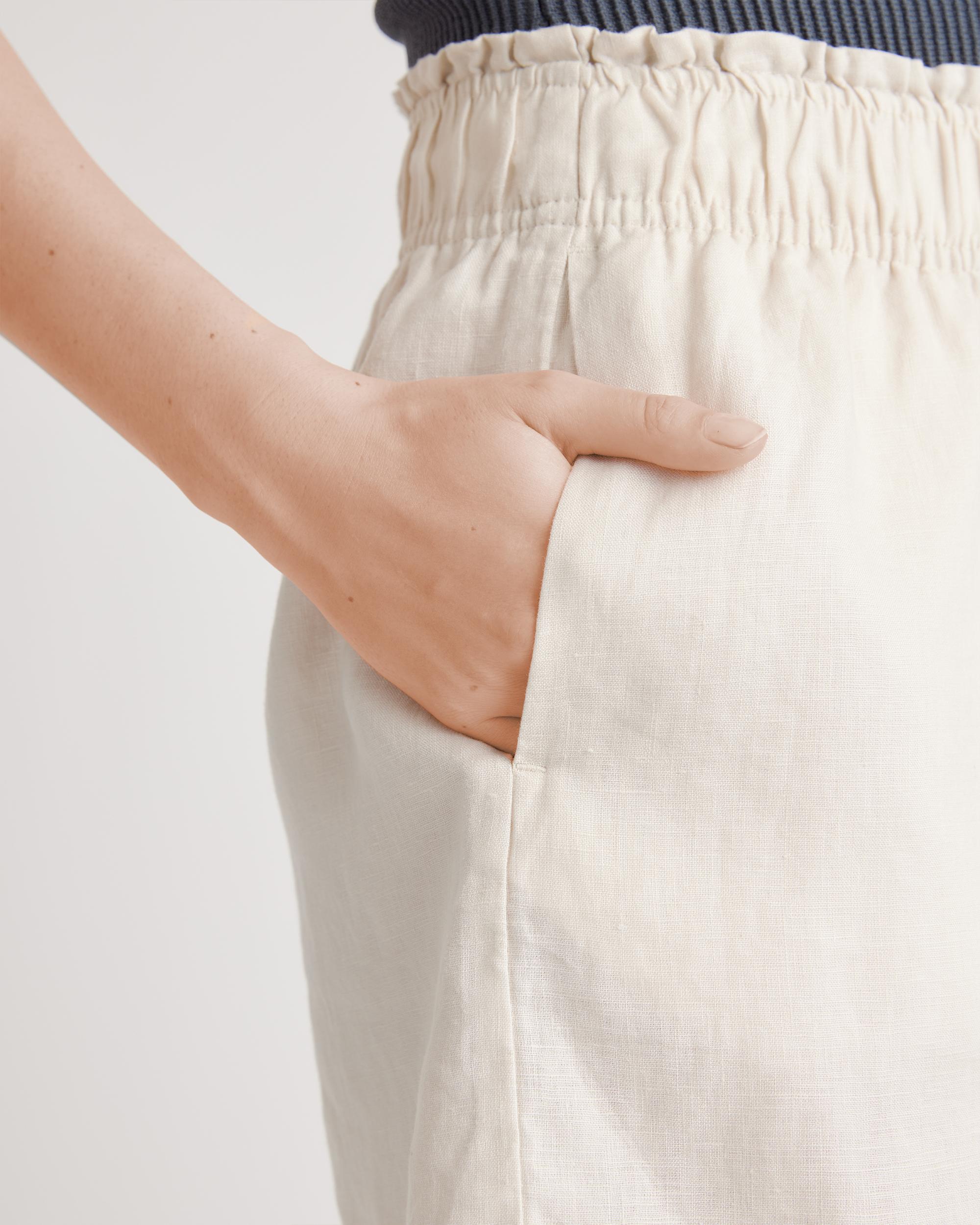 Elevate your summer style with our 100% European Linen High Waisted Shorts. Crafted from premium linen, these shorts offer a luxuriously lightweight and breathable option for warm weather dressing. The high rise silhouette elongates your legs and flatters your figure, while the relaxed fit keeps you comfortable all day long. Featuring a clean, minimalist design, these shorts are perfect for dressing up or down. Whether you're lounging at the beach or exploring a new city, our European Linen High Waisted Short are the ultimate summer essential. | Quince | Women's 100% European Linen High Waisted Shorts in Sand, Size Medium