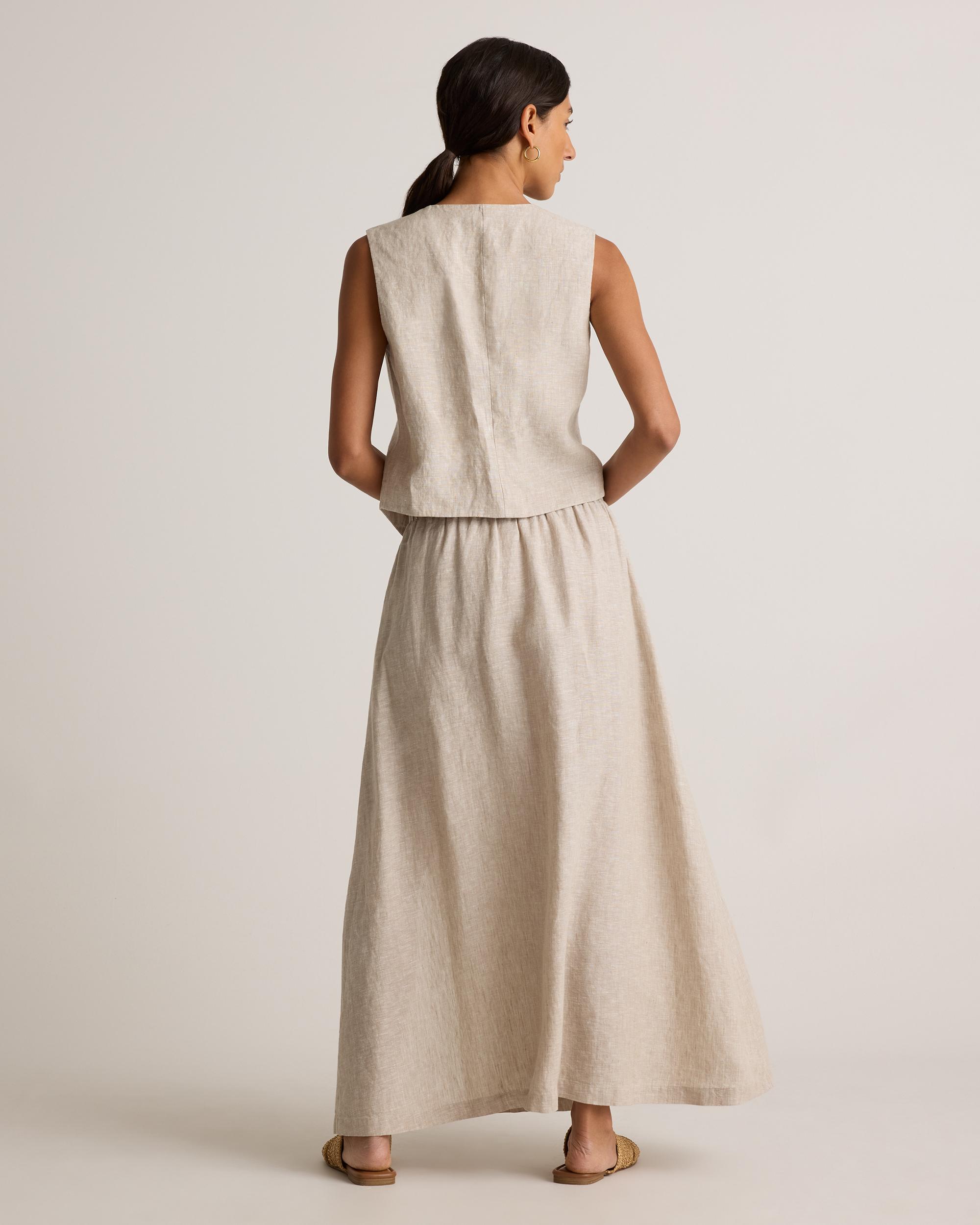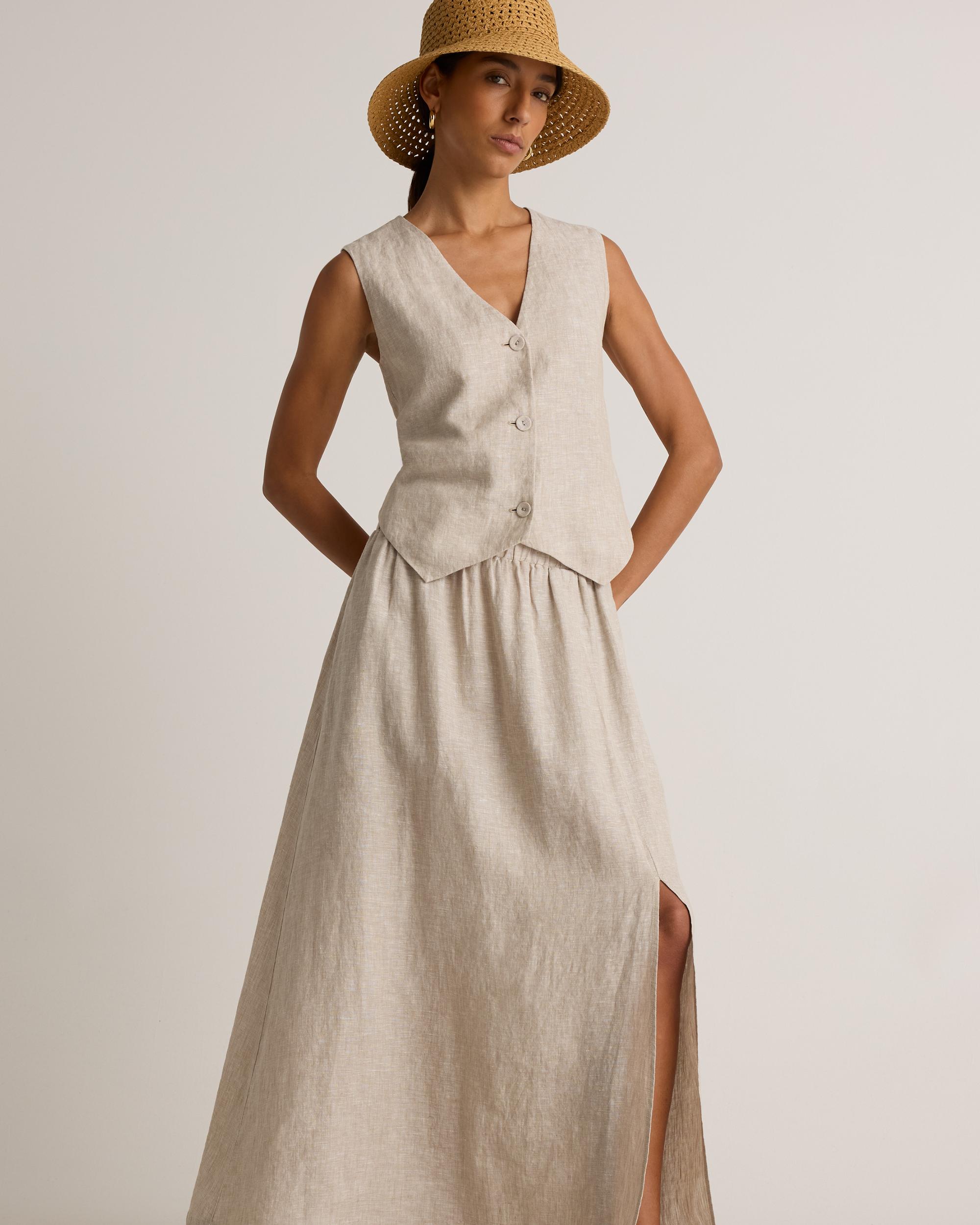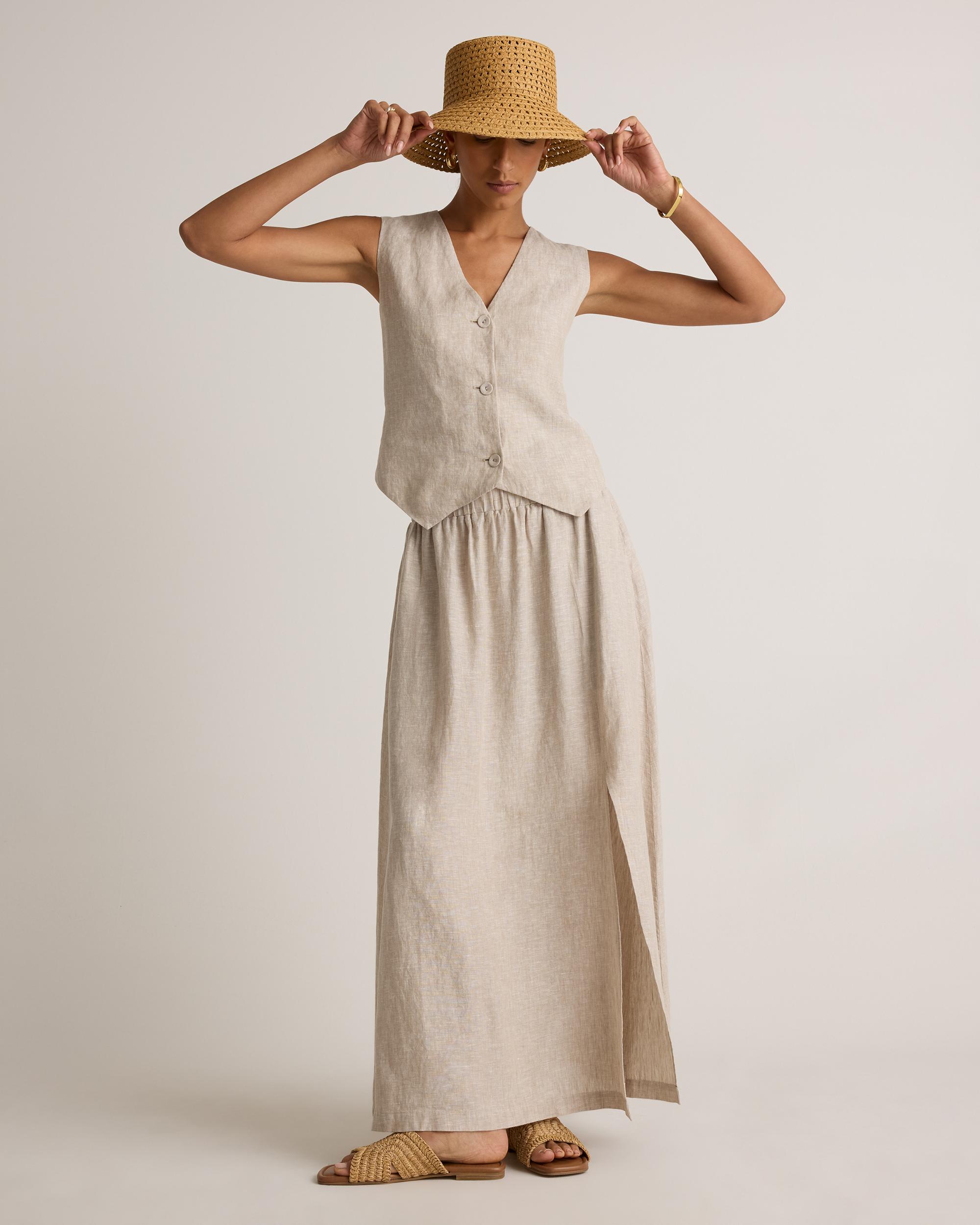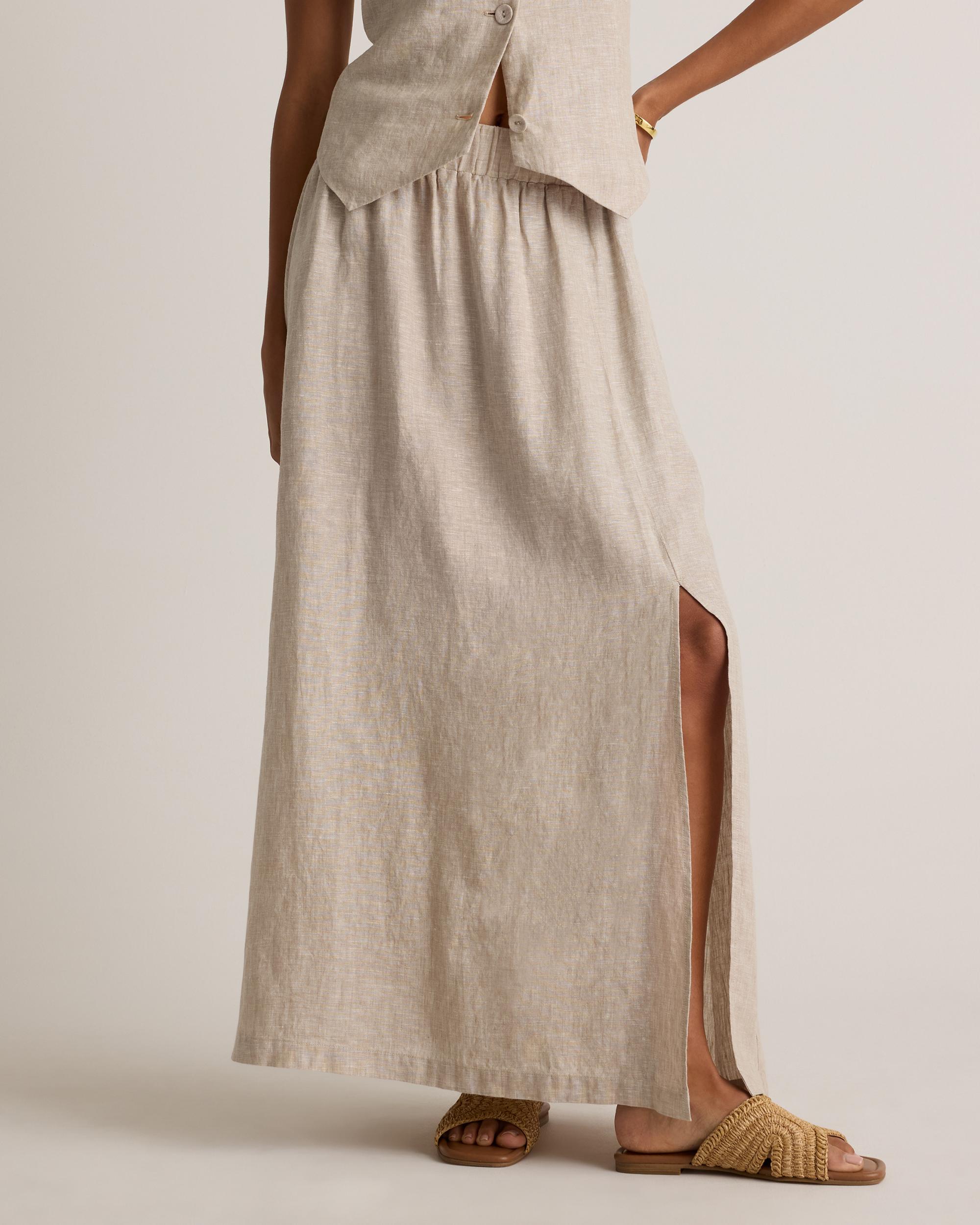 Airy, elevated, effortless. Our 100% European Linen Maxi Skirt is crafted from lightweight and breathable linen fabric to keep you cool and chic all season long. Its flowing silhouette offers a relaxed yet sophisticated look, while the maxi length adds a touch of drama. Pair it with a simple tank top for a casual style or match it with one of our linen tops for a resort-inspired outfit. | Quince | Women's 100% European Linen Maxi Skirt in Flax, Size XS