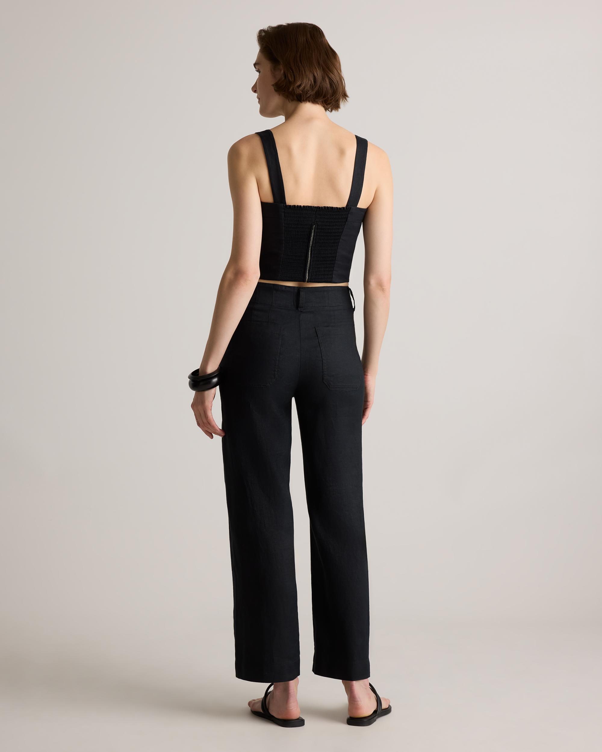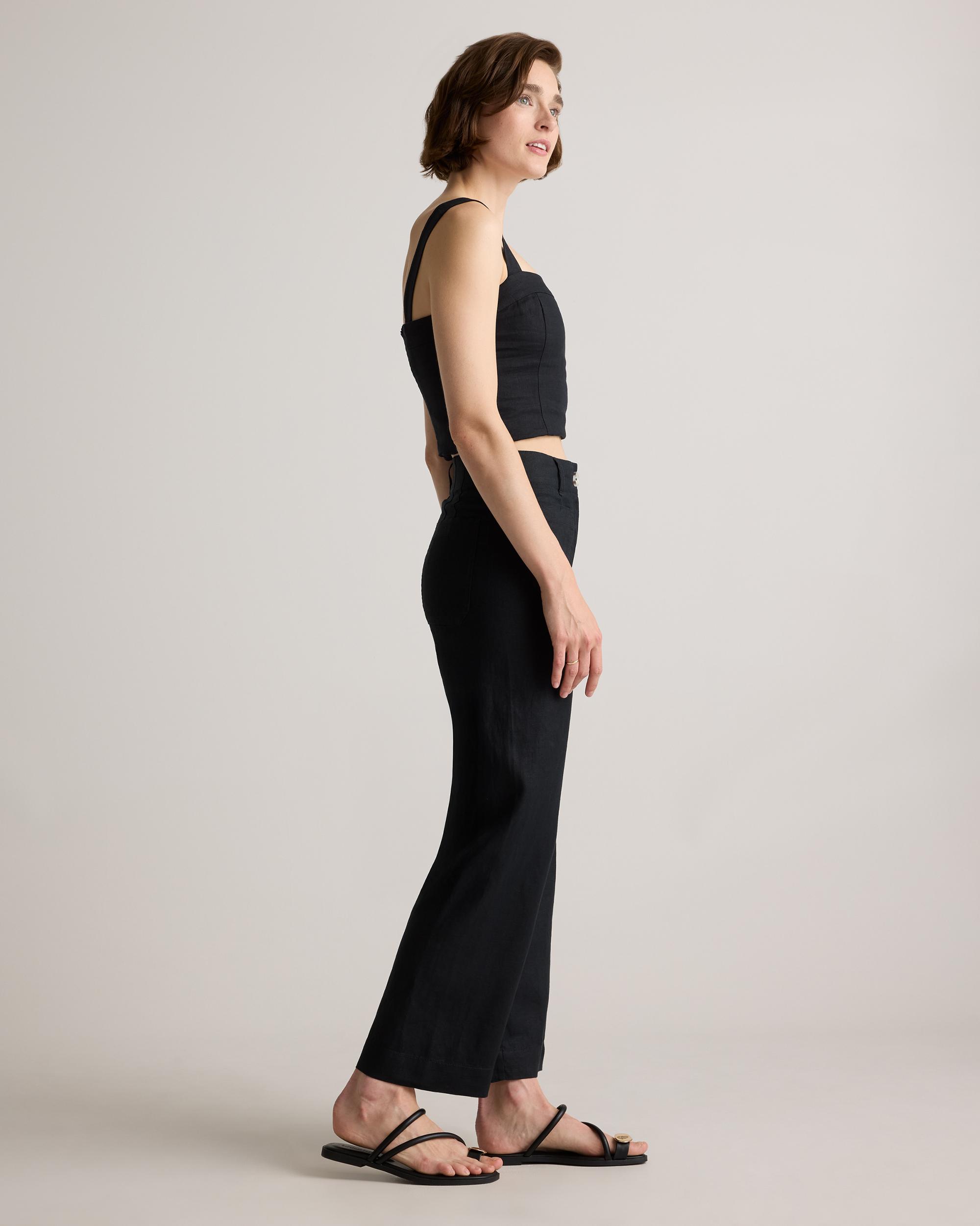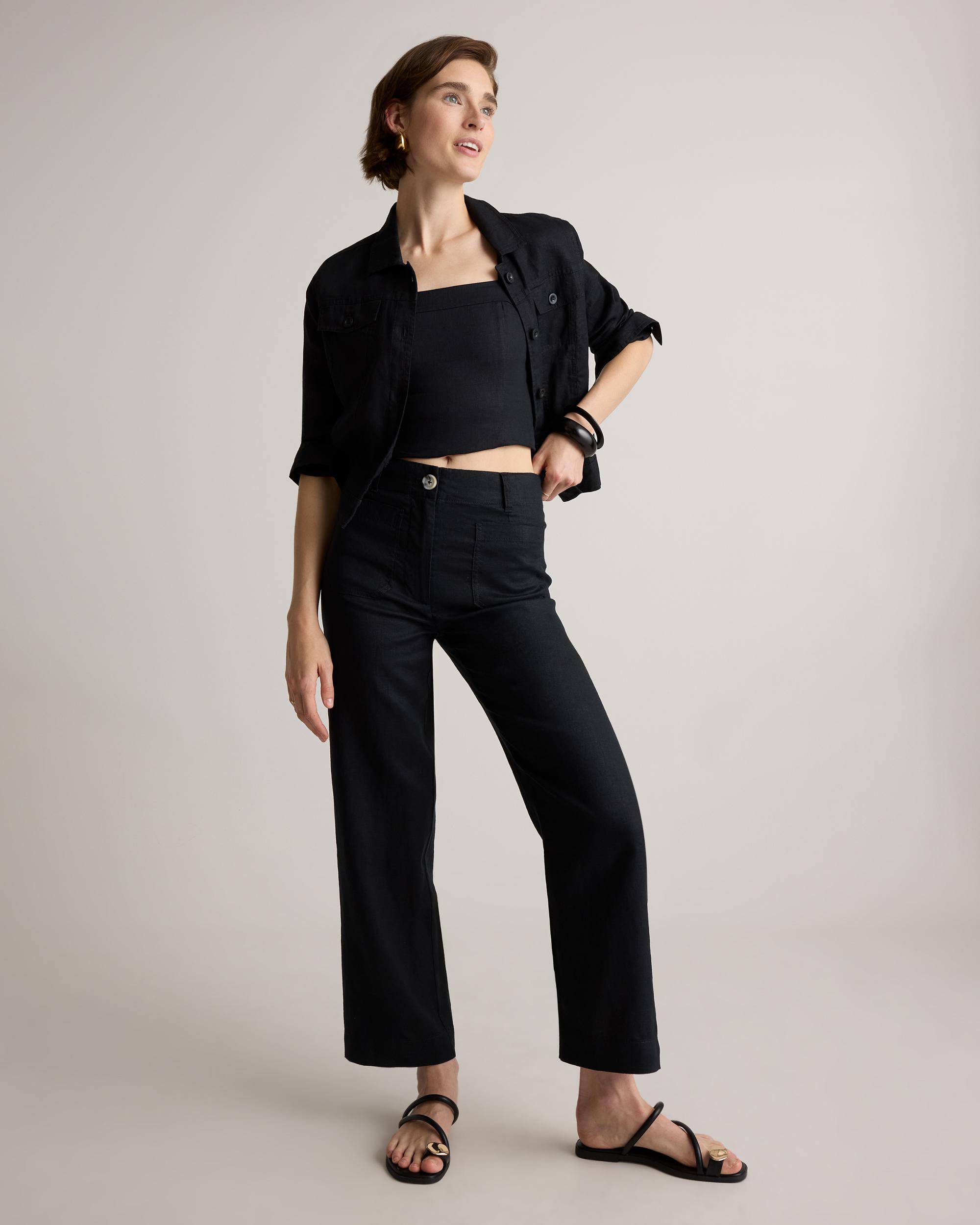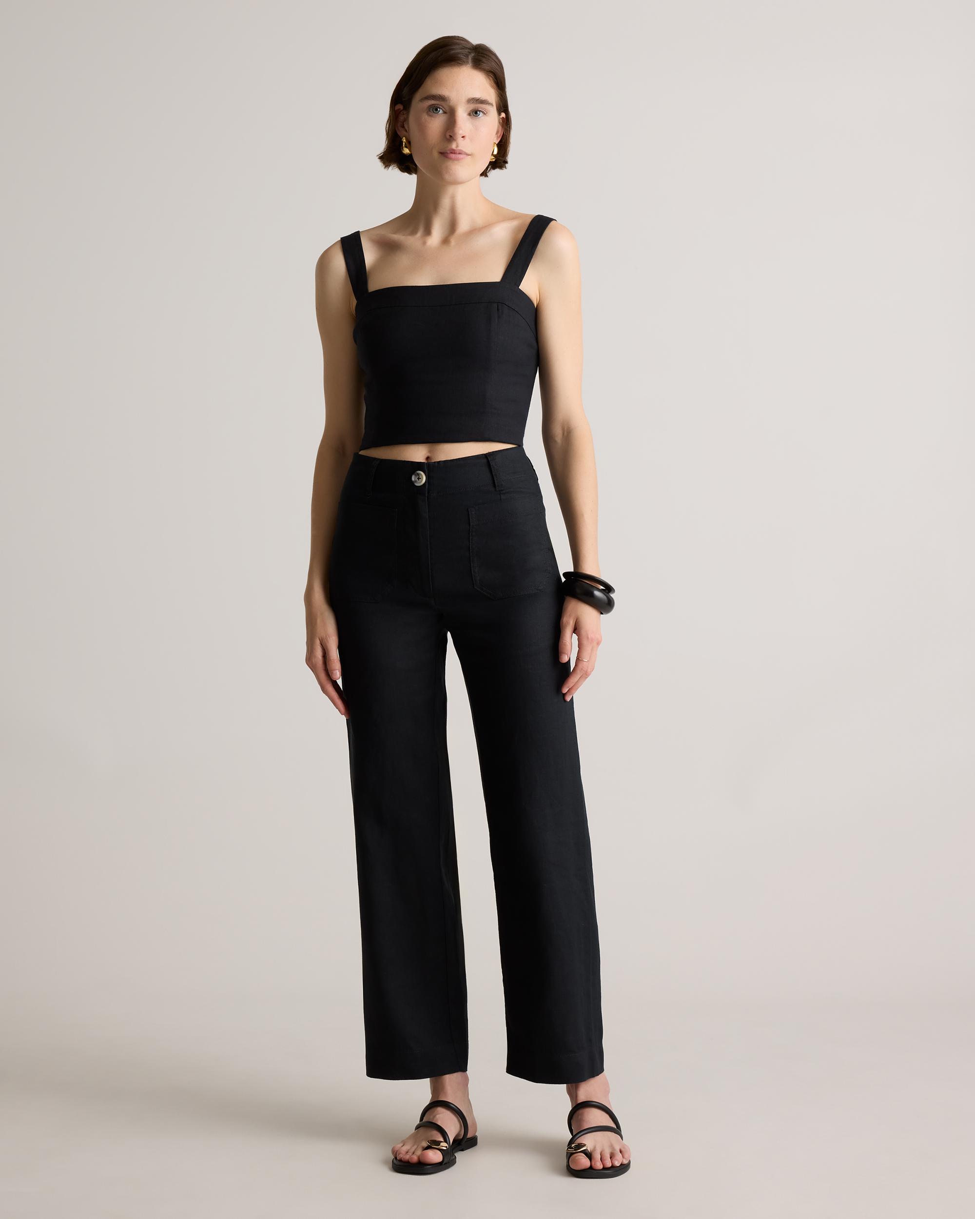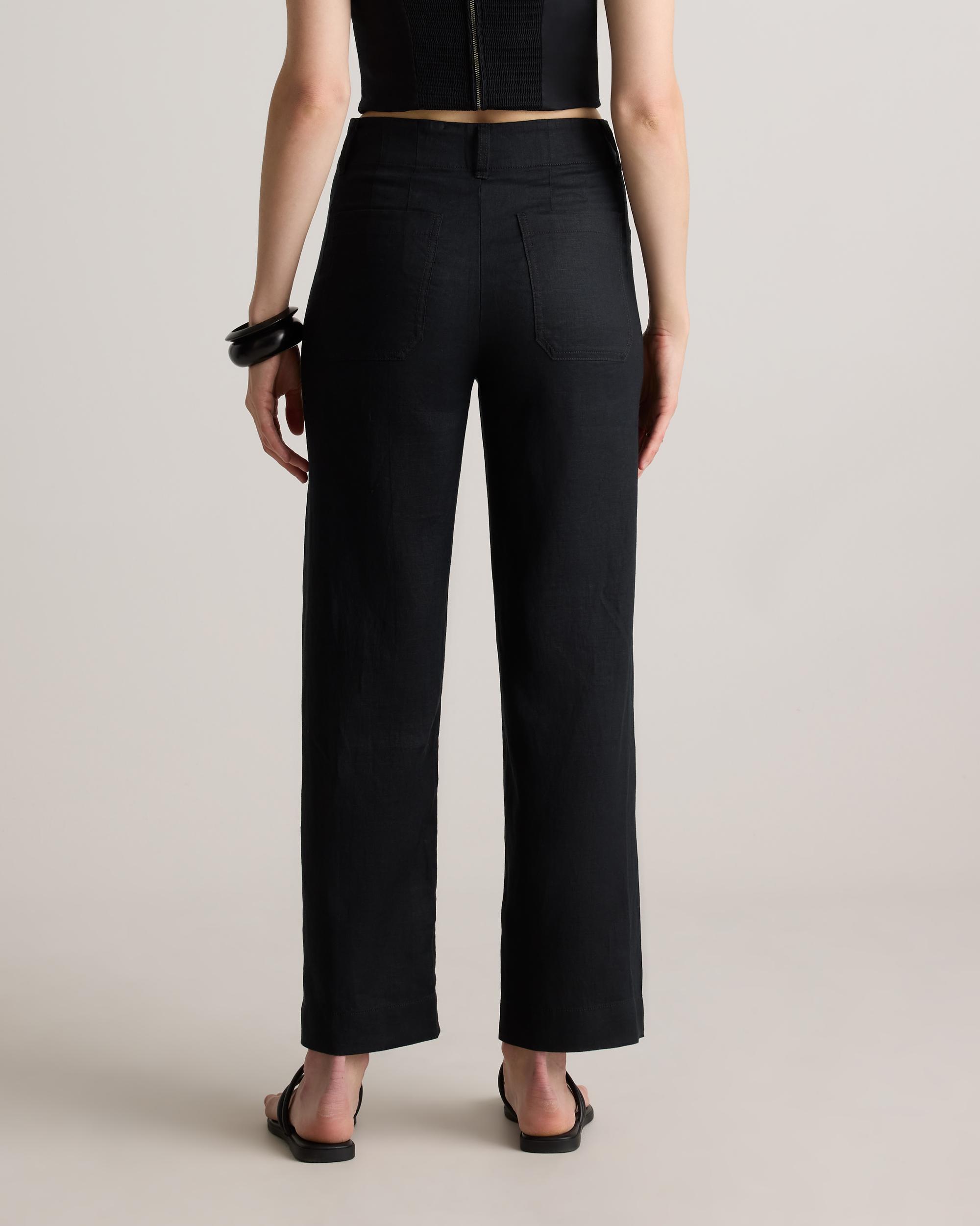 Timeless, effortlessly polished, and designed for all-day ease. Our 100% European Linen Patch Pocket Wide Leg Pants are perfect for staying cool and comfortable. The refined silhouette features a high-rise fit and a wide leg shape, striking the perfect balance between structure and ease. Thoughtfully designed with patch pockets for a touch of utility, these linen pants are a versatile staple for warm-weather styling. | Quince | Women's 100% European Linen Patch Pocket Wide Leg Pants in Black, Size 4