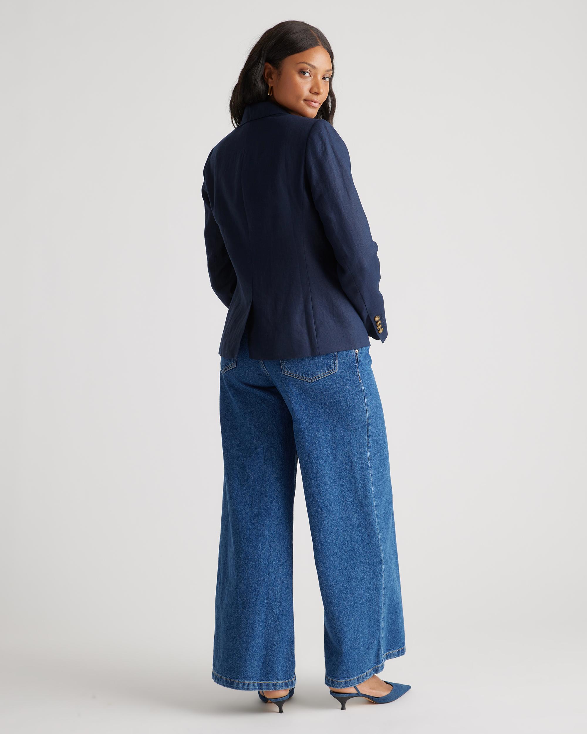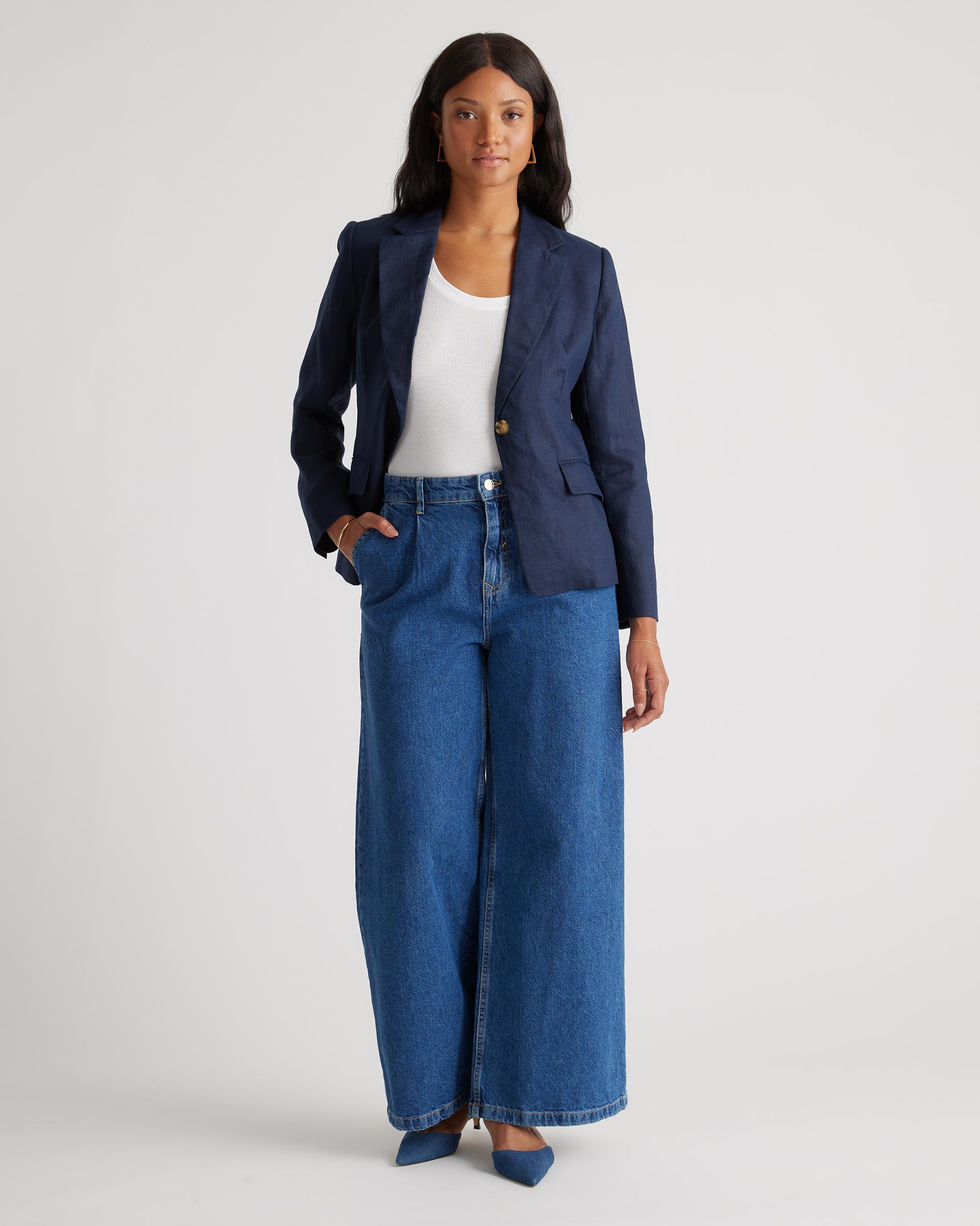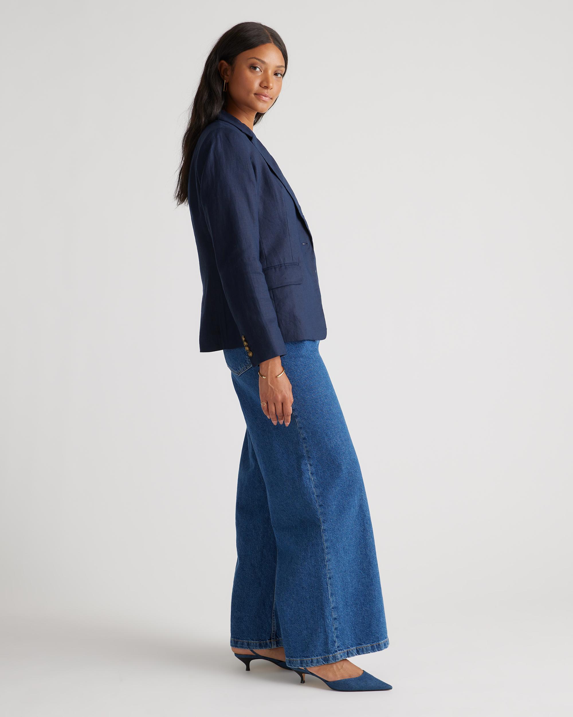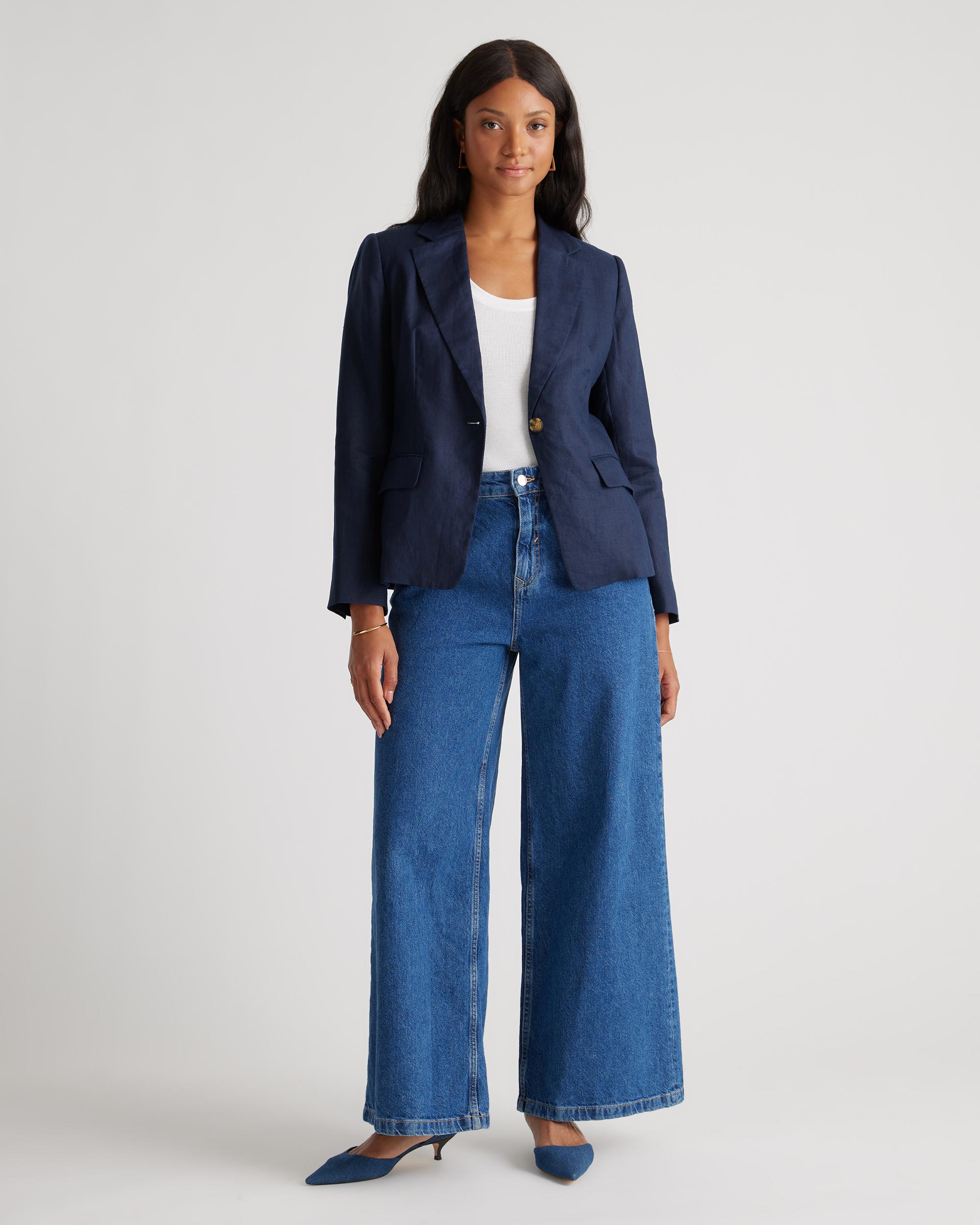With its crisp tailoring and quietly luxurious fabric, our 100% European Linen Structured Blazer is the layer that instantly pulls your look together. Designed with a notched lapel, single-button closure, and functional pockets, this timeless style makes everything else you're wearing look that much more polished. Crafted from premium-quality European linen and fully lined in cotton, it's equally lightweight and durable, and ideal for year-round wear. For a more casual look, check out our 100% European Linen Blazer. | Quince | Women's 100% European Linen Structured Blazer in Deep Navy, Size XL