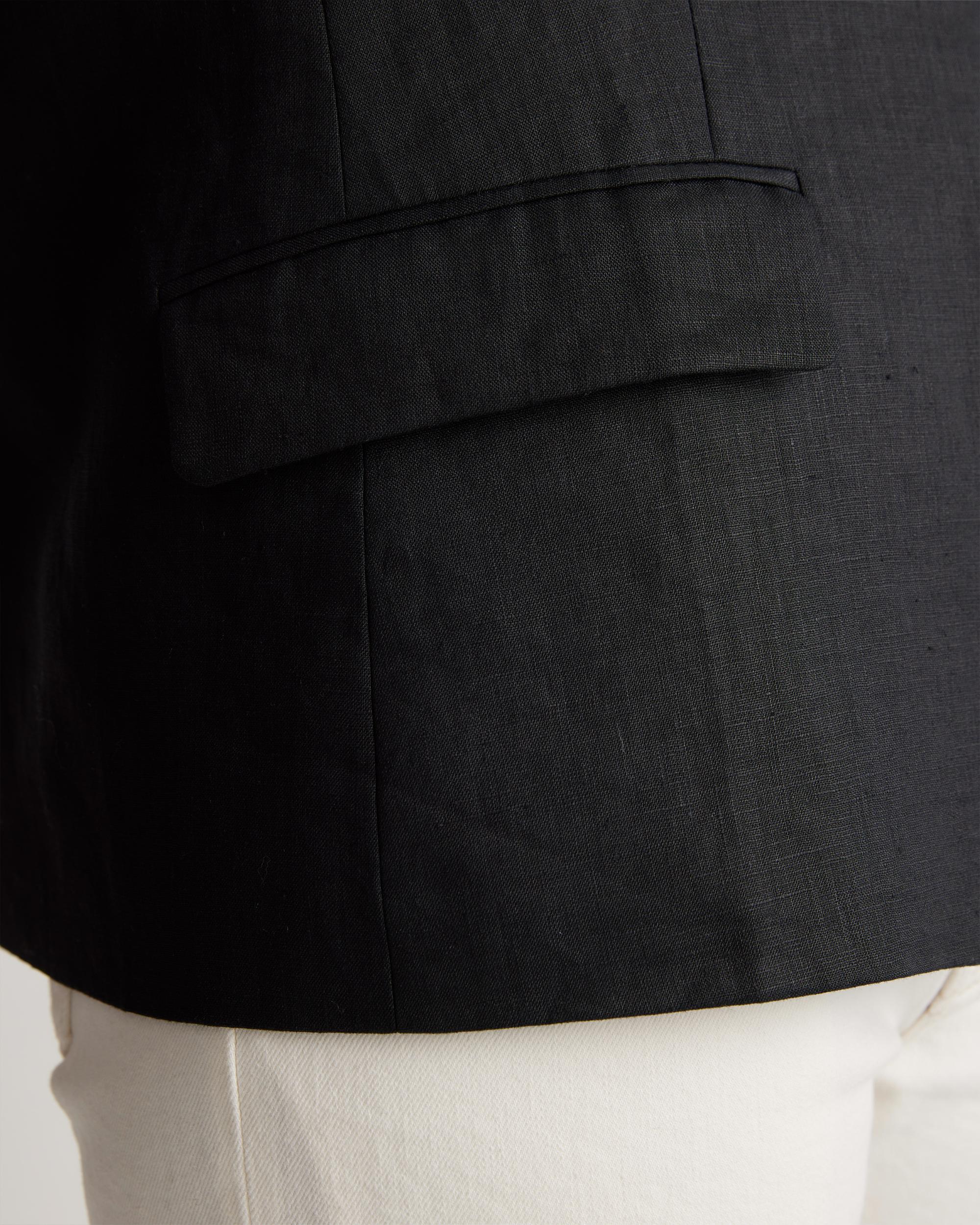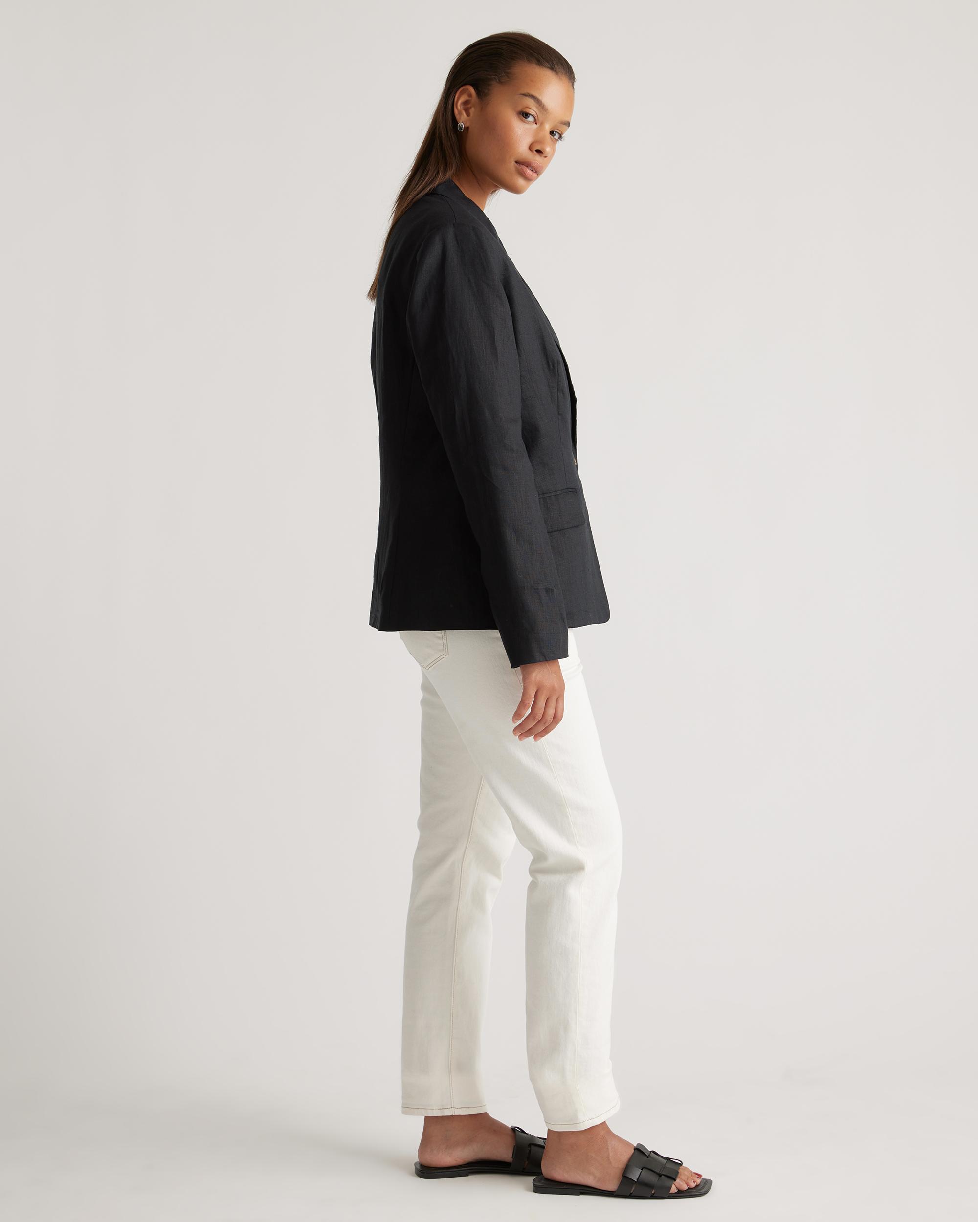 With its crisp tailoring and quietly luxurious fabric, our 100% European Linen Structured Blazer is the layer that instantly pulls your look together. Designed with a notched lapel, single-button closure, and functional pockets, this timeless style makes everything else you're wearing look that much more polished. Crafted from premium-quality European linen and fully lined in cotton, it's equally lightweight and durable, and ideal for year-round wear. For a more casual look, check out our 100% European Linen Blazer. | Quince | Women's 100% European Linen Structured Blazer in Black, Size XS