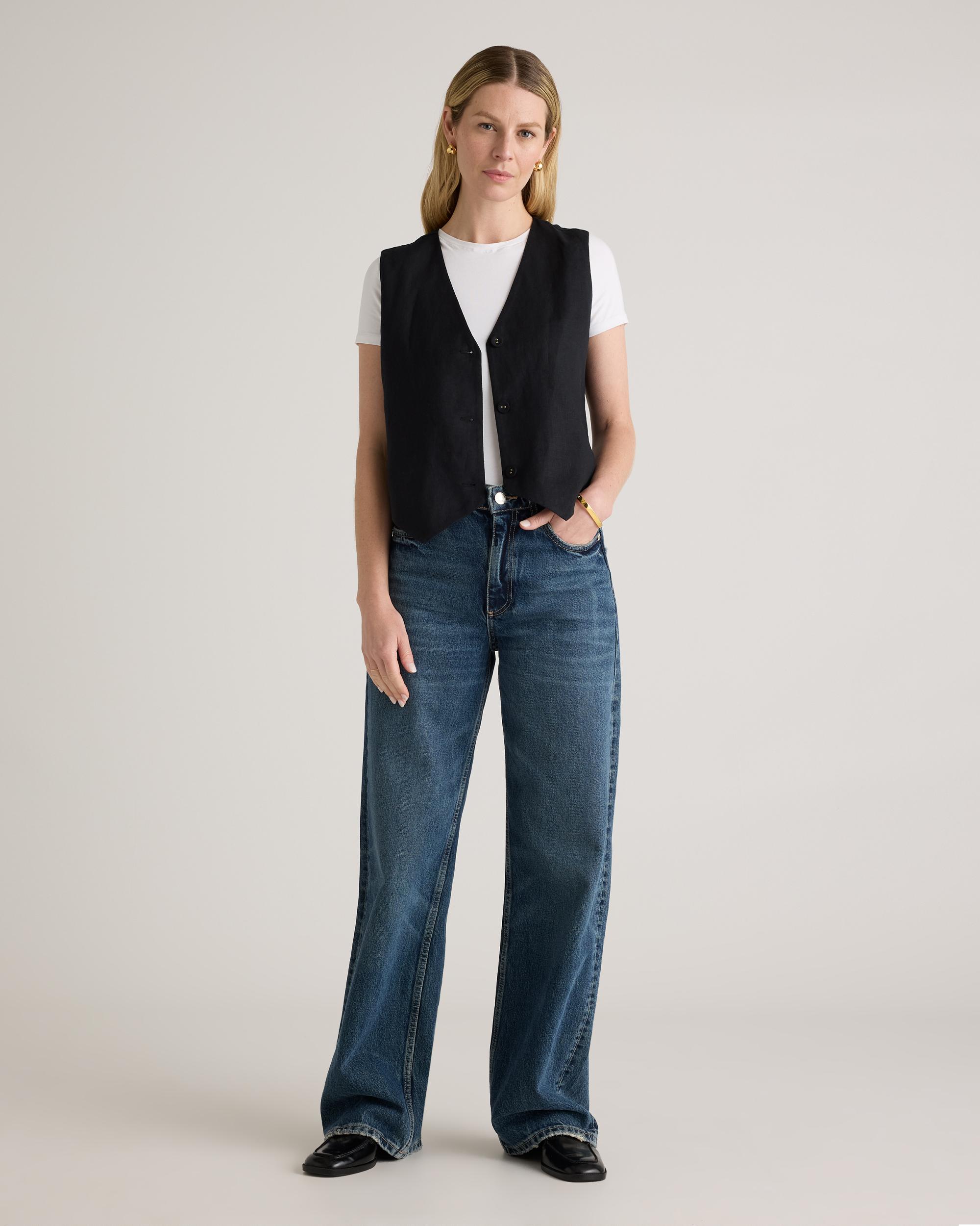 Laid-back. Luxe. Lightweight. Our 100% European Linen Vest is the perfect mix of timeless style and low-key luxury. Crafted with a relaxed silhouette, it can be worn on its own or over your favorite top. It’s the ultimate year-round vest to add a little extra style to your look. | Quince | Women's 100% European Linen Vest in Black, Size XL