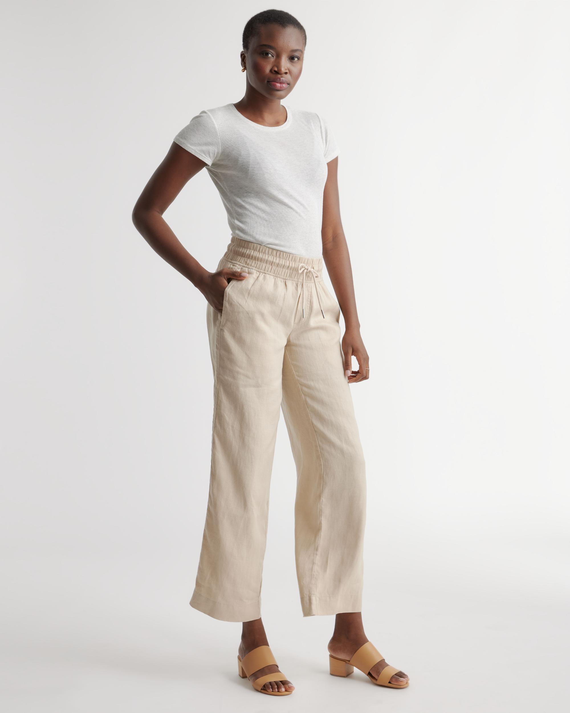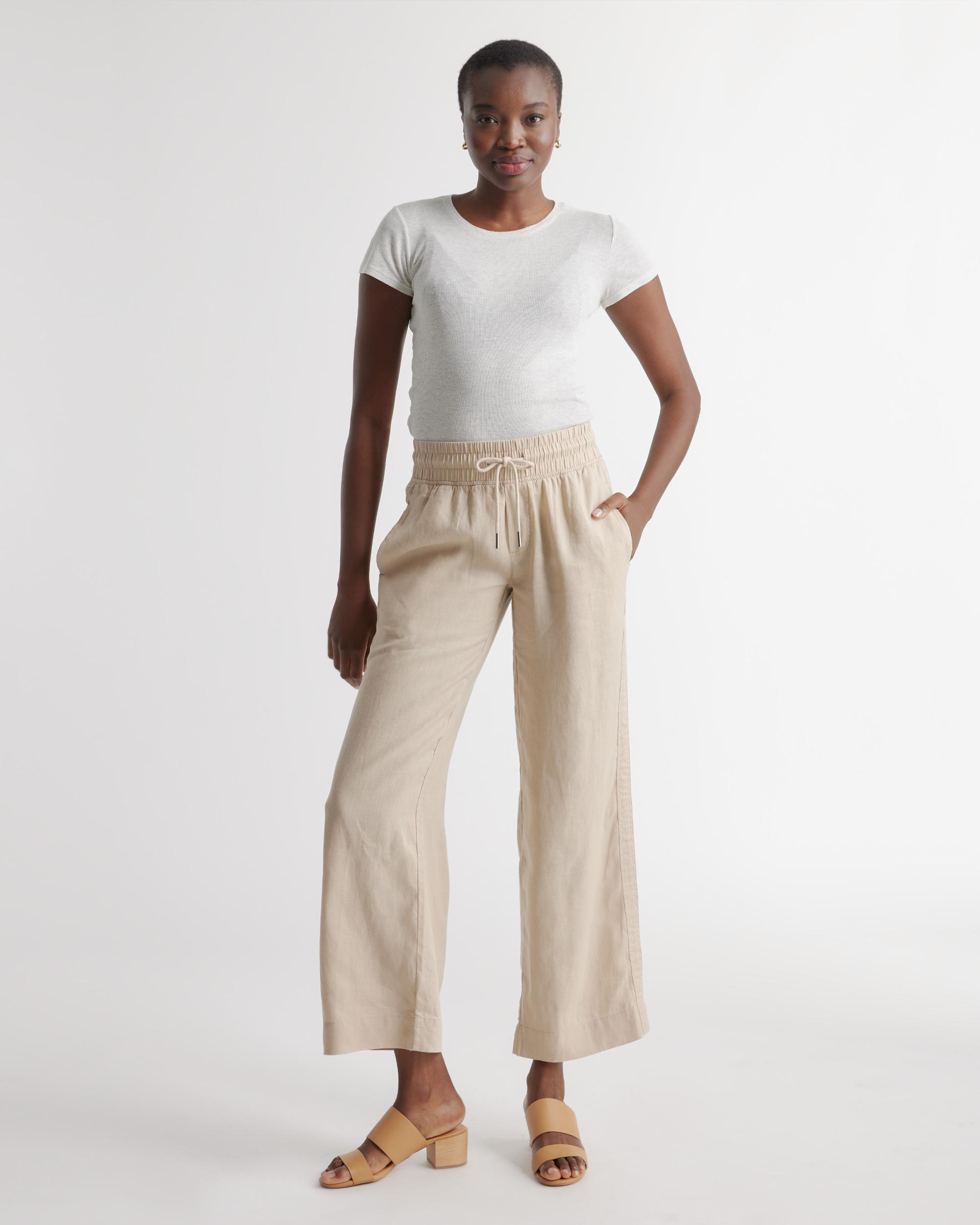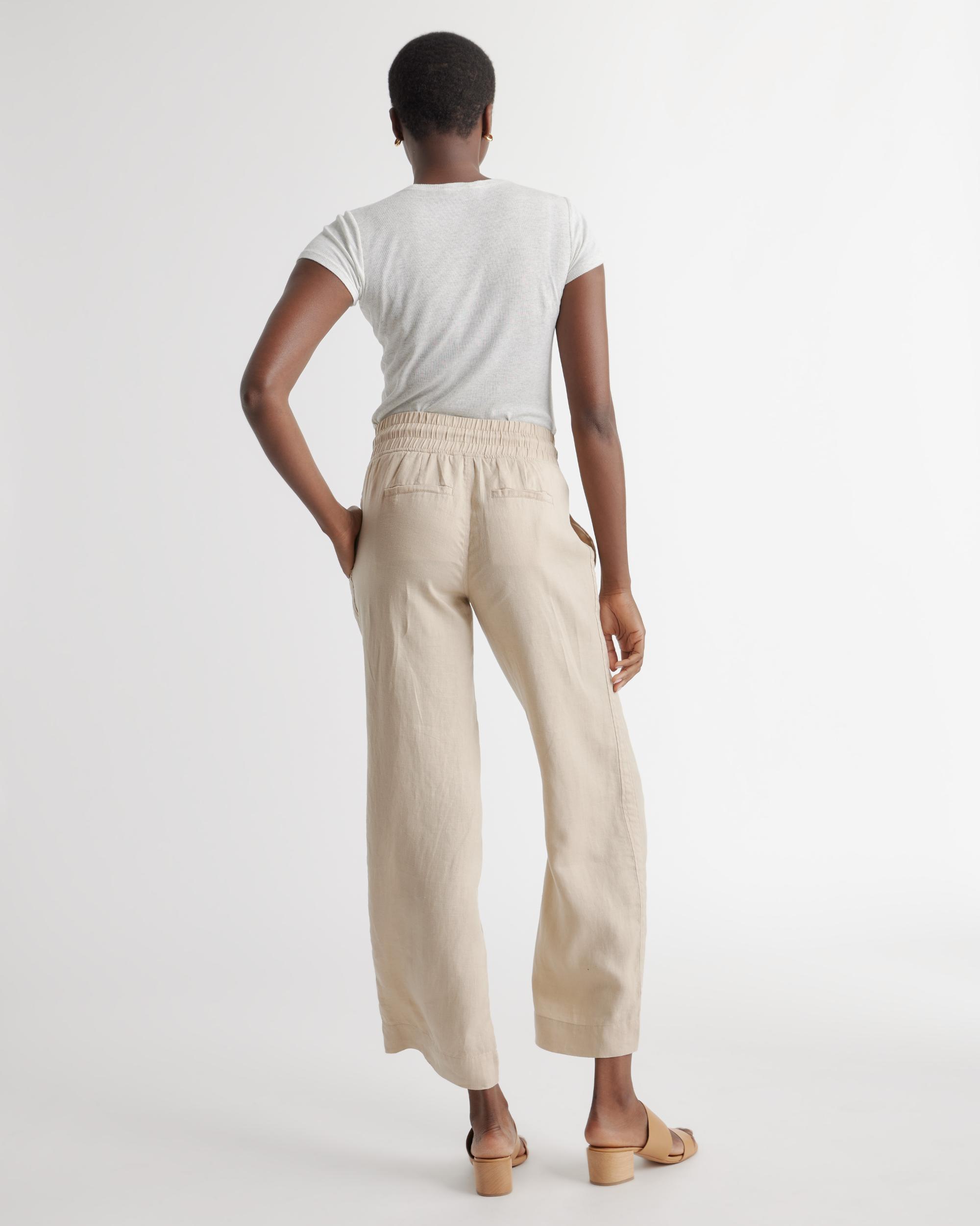 Looks like effortless style. Feels like pajamas. We love these wide-leg linen lounge pants from our best-selling European linen collection for casual work days, lazy weekends, and vacation vibes. Relaxed fit, elastic waistband, drawstring, and functional front pockets. Also offered in sizes 1X-3X. | Quince | Women's 100% European Linen Wide Leg Pants in Driftwood, Size XL