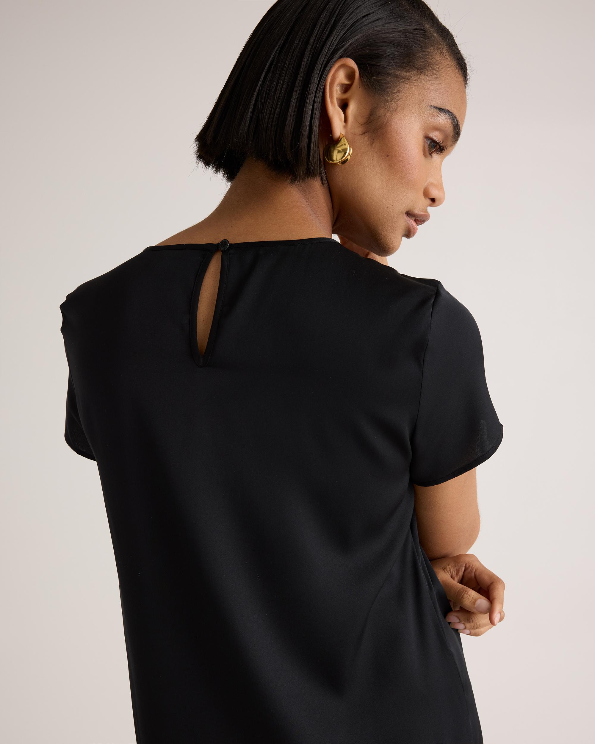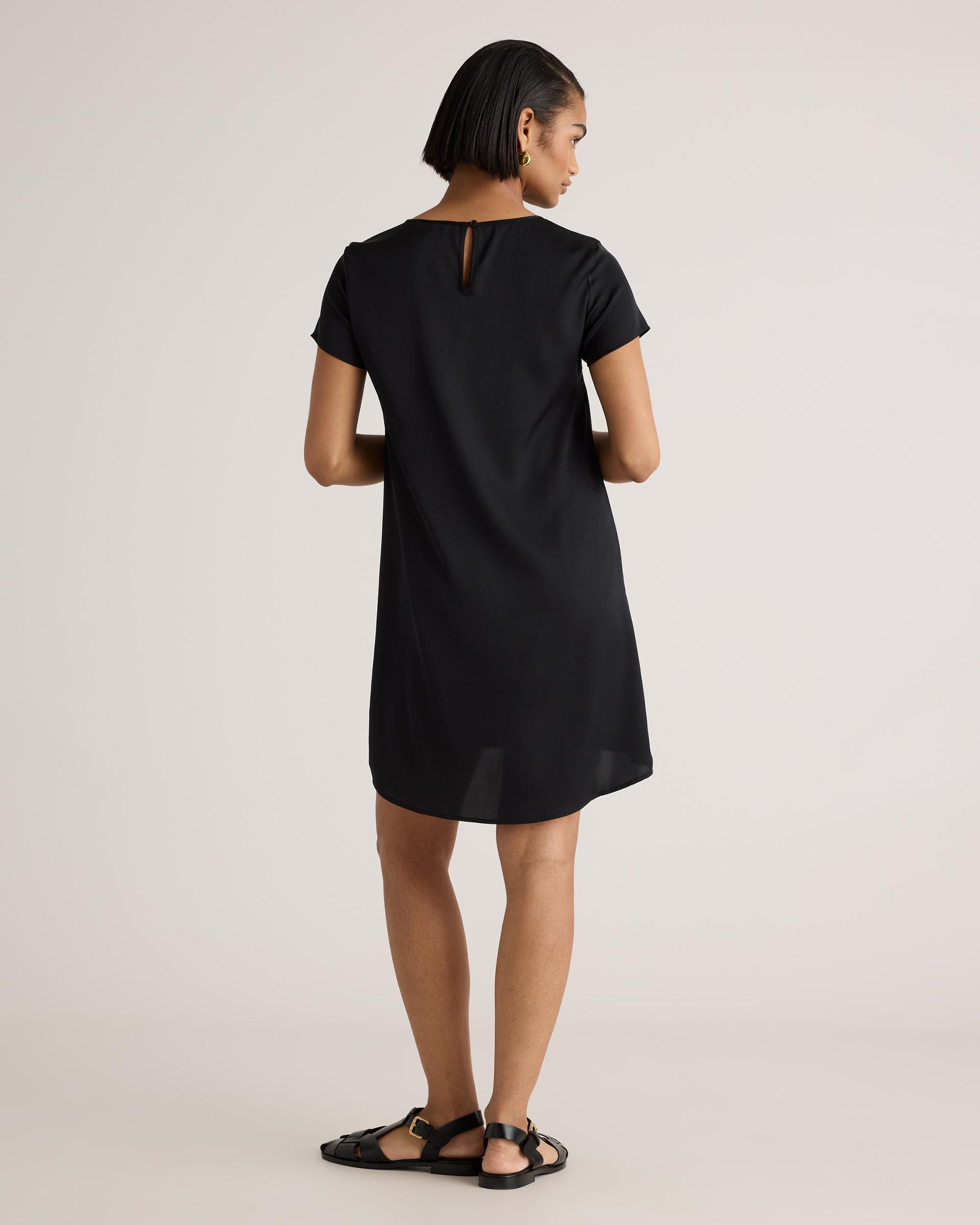 Slinky, simple and versatile. Always chic, never fussy, this dress is an easy win every time. Made from mulberry silk with a little stretch, our silk is washable for low-maintenance ease. Plus, silk fiber contains 18 kinds of amino acids that make it amazing for skin nourishment, hypo-allergenic, and naturally thermoregulating to help maintain body temperature. | Quince | Women's 100% Washable Silk Stretch T-Shirt Dress in Black, Size Small