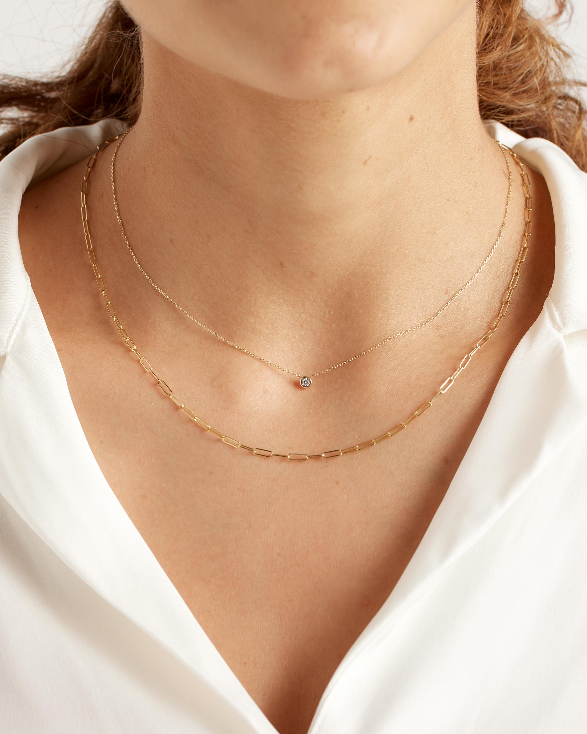 The delicate design of this paperclip chain gives it a modern and sophisticated look, making it perfect for everyday wear. Crafted from high-quality 14K gold, this necklace is sure to become a staple in your jewelry collection. | Quince | Women's 14K Gold Small Paperclip Chain Necklace in Yellow Gold, Size 16"