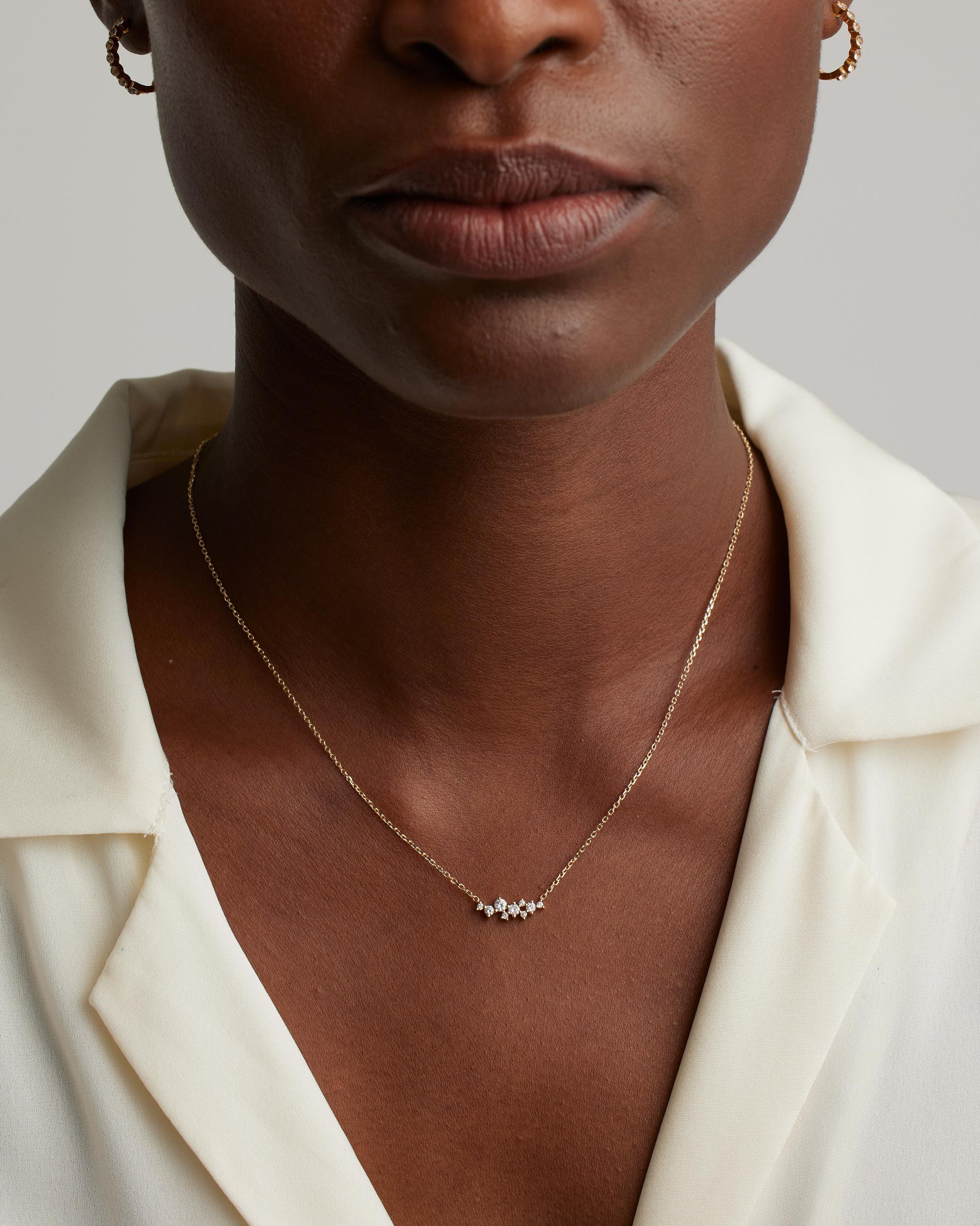 All-day glam, any time you need to dress up your look. Our 14K Gold Diamond Scatter Necklace is simply sparkling. The unique, asymmetrical diamond formation set in 14K gold is designed to make a statement…and because we’re all about quality, it’s made to last a lifetime (for real). | Quince | Women's 14K Gold Diamond Scatter Necklace in Yellow Gold