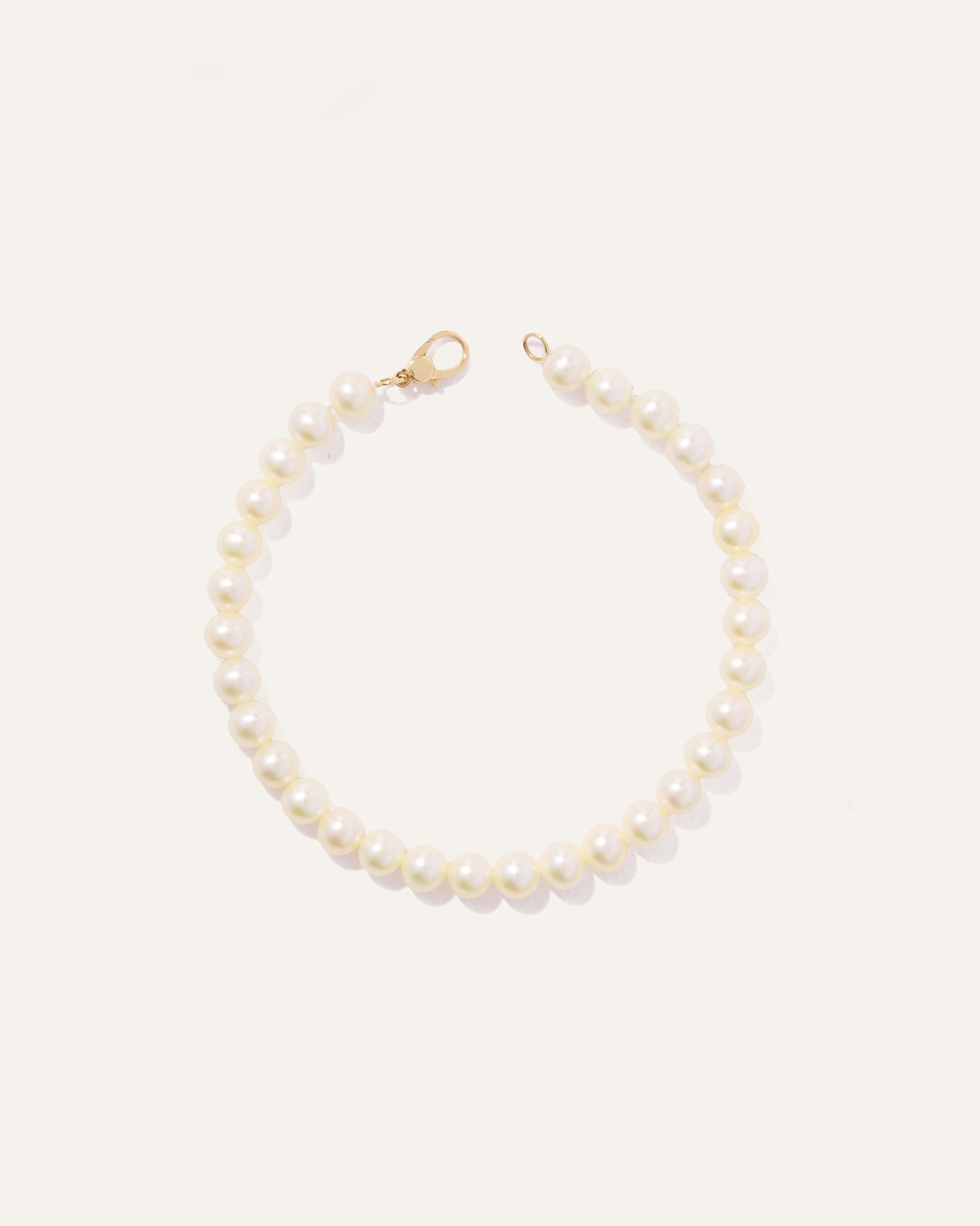 Classic luxury defined. Our 14K Gold Freshwater Cultured Pearl Bracelet has luminous freshwater pearls strung together in an organic design that never goes out of style. Finished with a lobster clasp for easy wear, this bracelet is the perfect arm candy for adding a touch of low-key glamour. | Quince | Women's 14k Gold Freshwater Cultured Pearl Bracelet in Yellow Gold