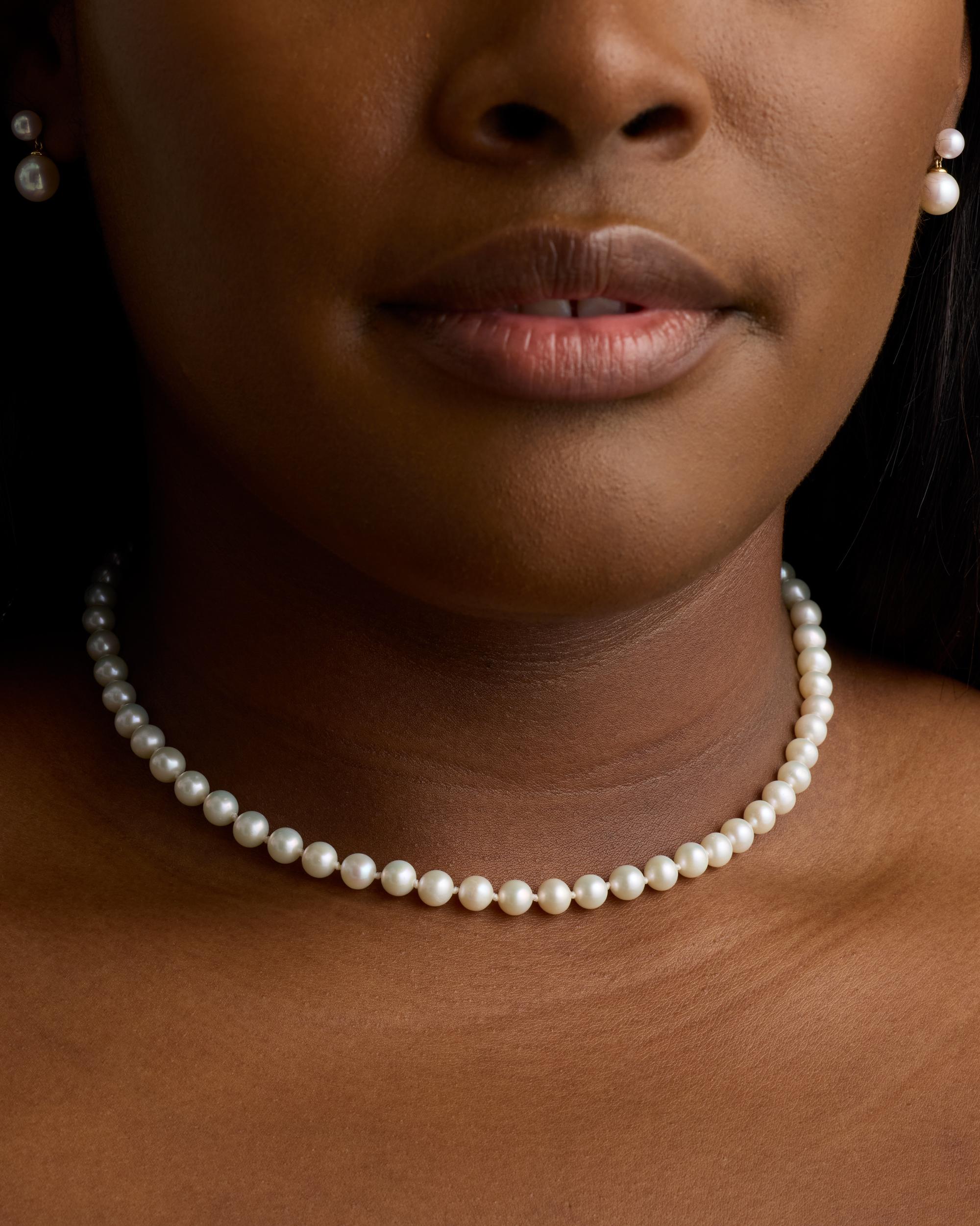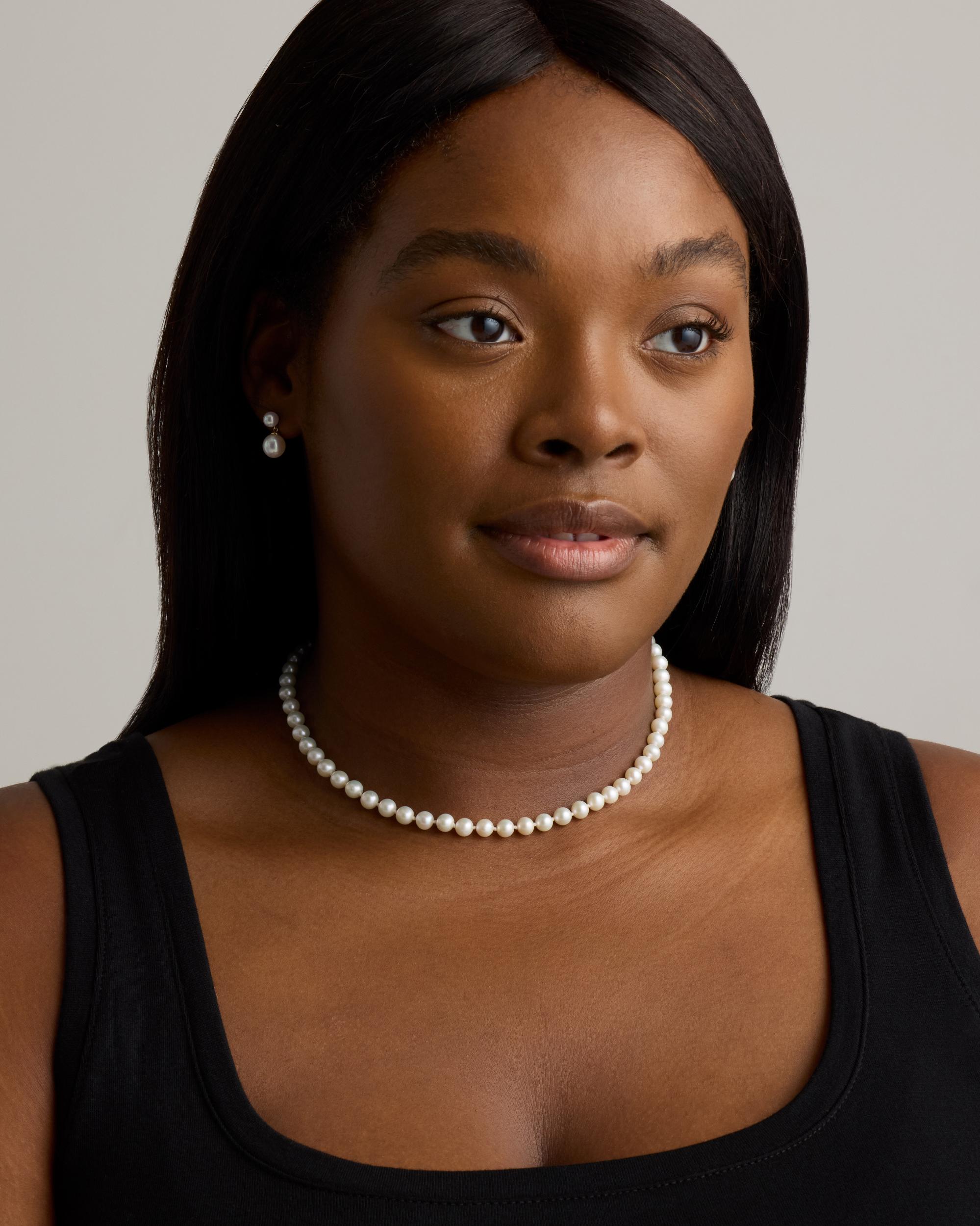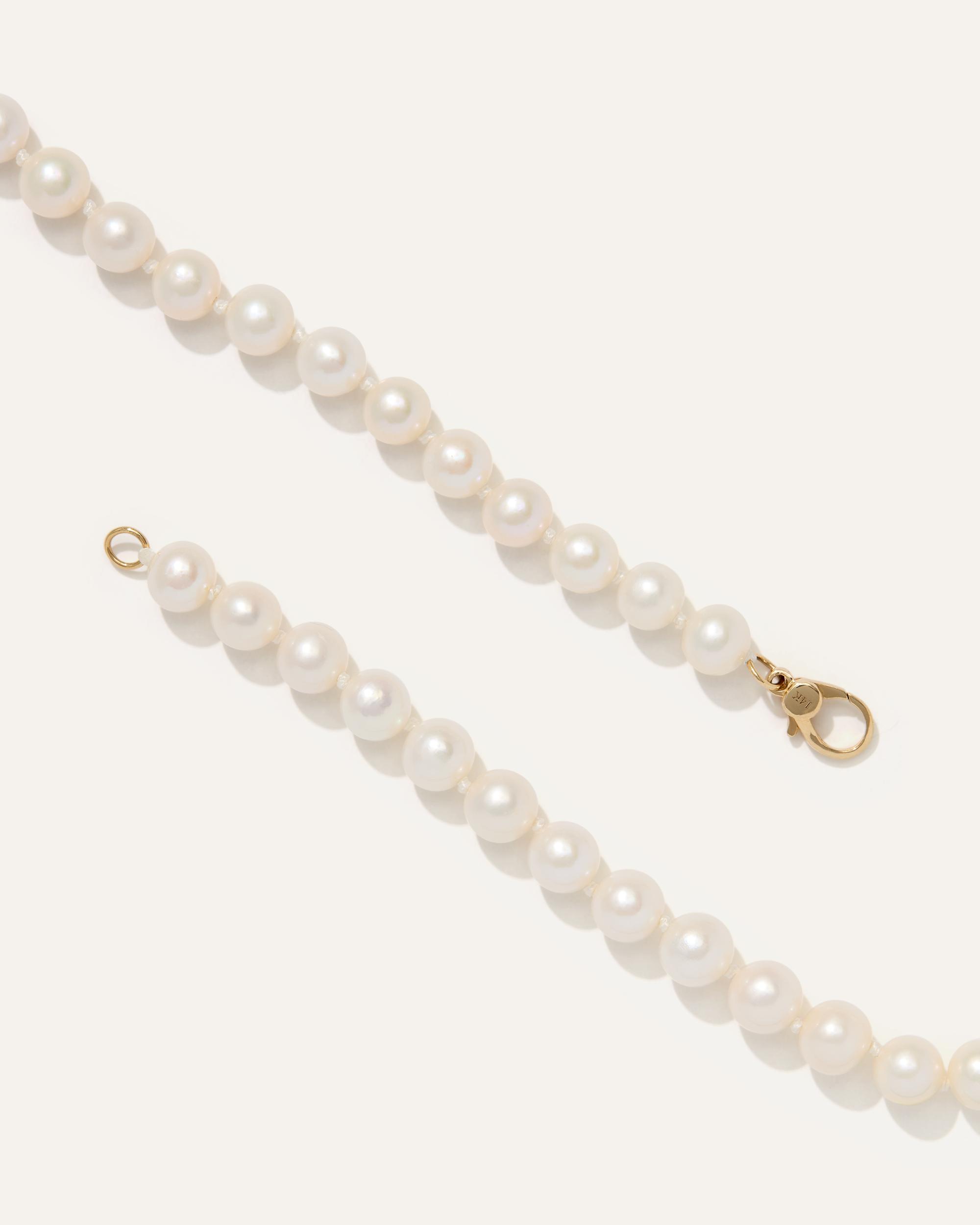 Elevate your style with our exquisite hand-knotted pearl strand necklace, featuring AAA quality freshwater cultured pearls meticulously strung on a 16.5 inch polyester cord. Secured with a luxurious 14K yellow gold lobster clasp, this elegant accessory exudes timeless sophistication. | Quince | Women's 14K Gold Freshwater Cultured Pearl Strand Necklace in Yellow Gold