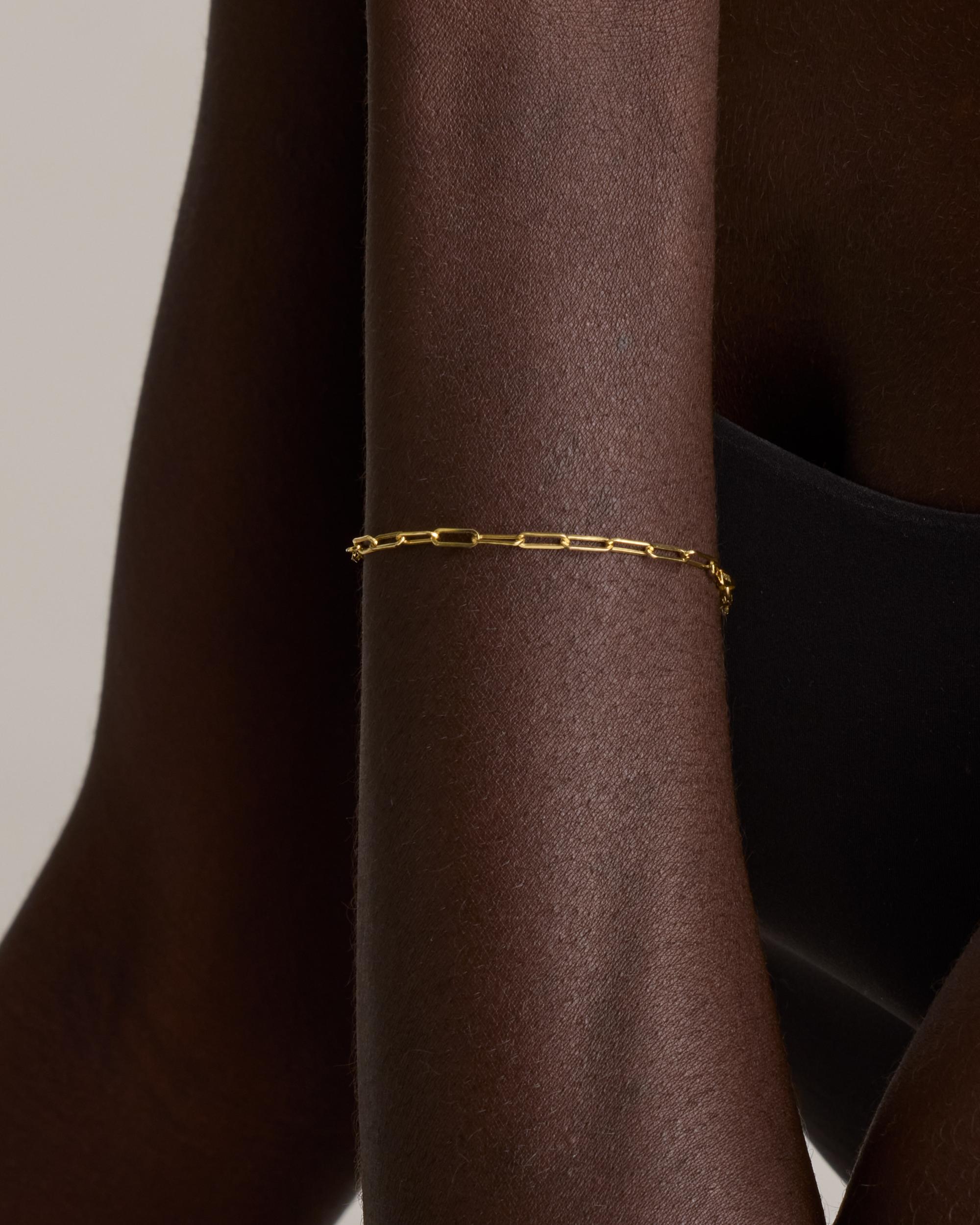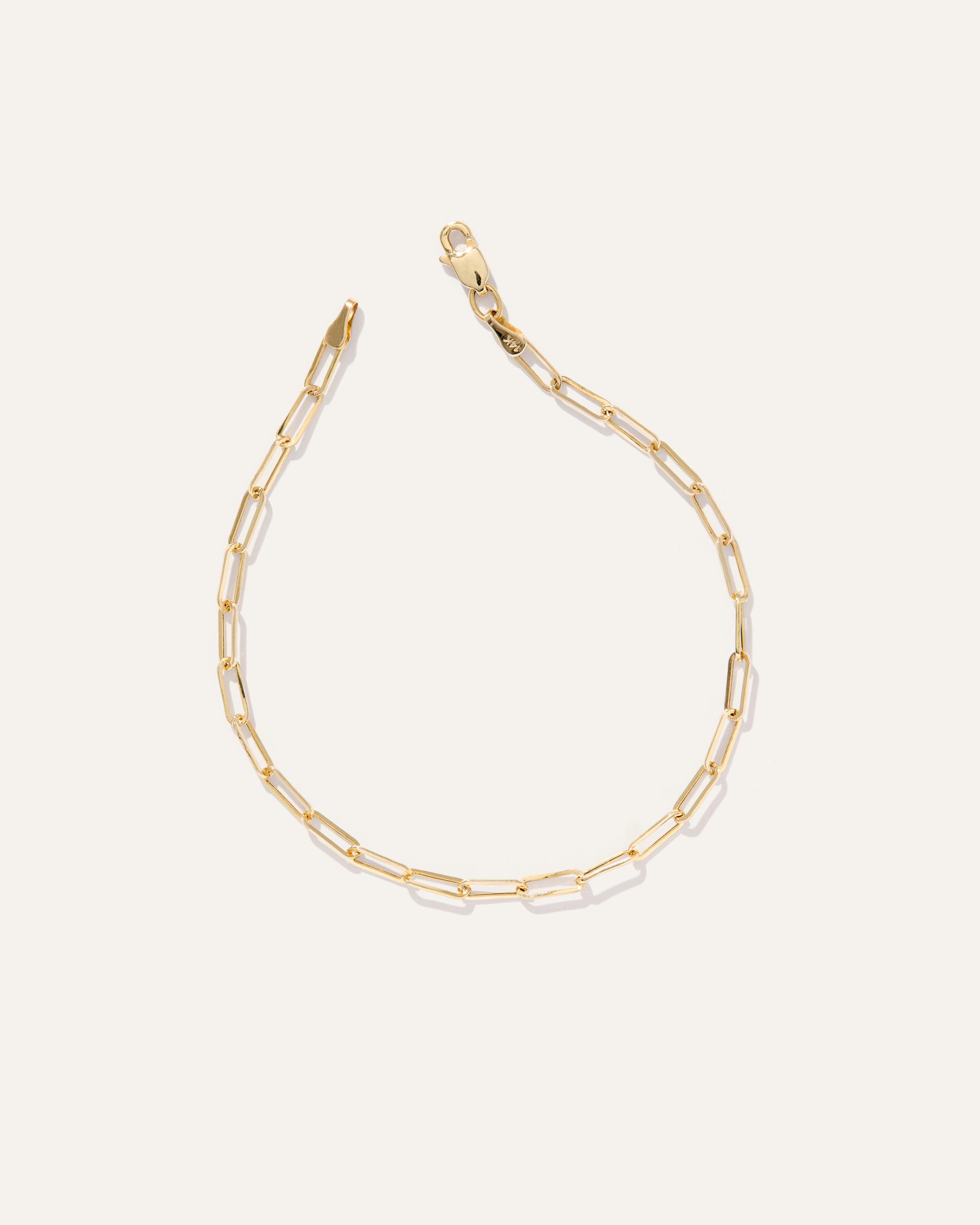 The 14K gold paperclip chain bracelet is a timeless and versatile piece that is perfect for everyday wear. Whether you're dressing up for a special occasion or just running errands, this bracelet is a staple that will never go out of style. | Quince | Women's 14K Gold Paperclip Chain Bracelet in Yellow Gold