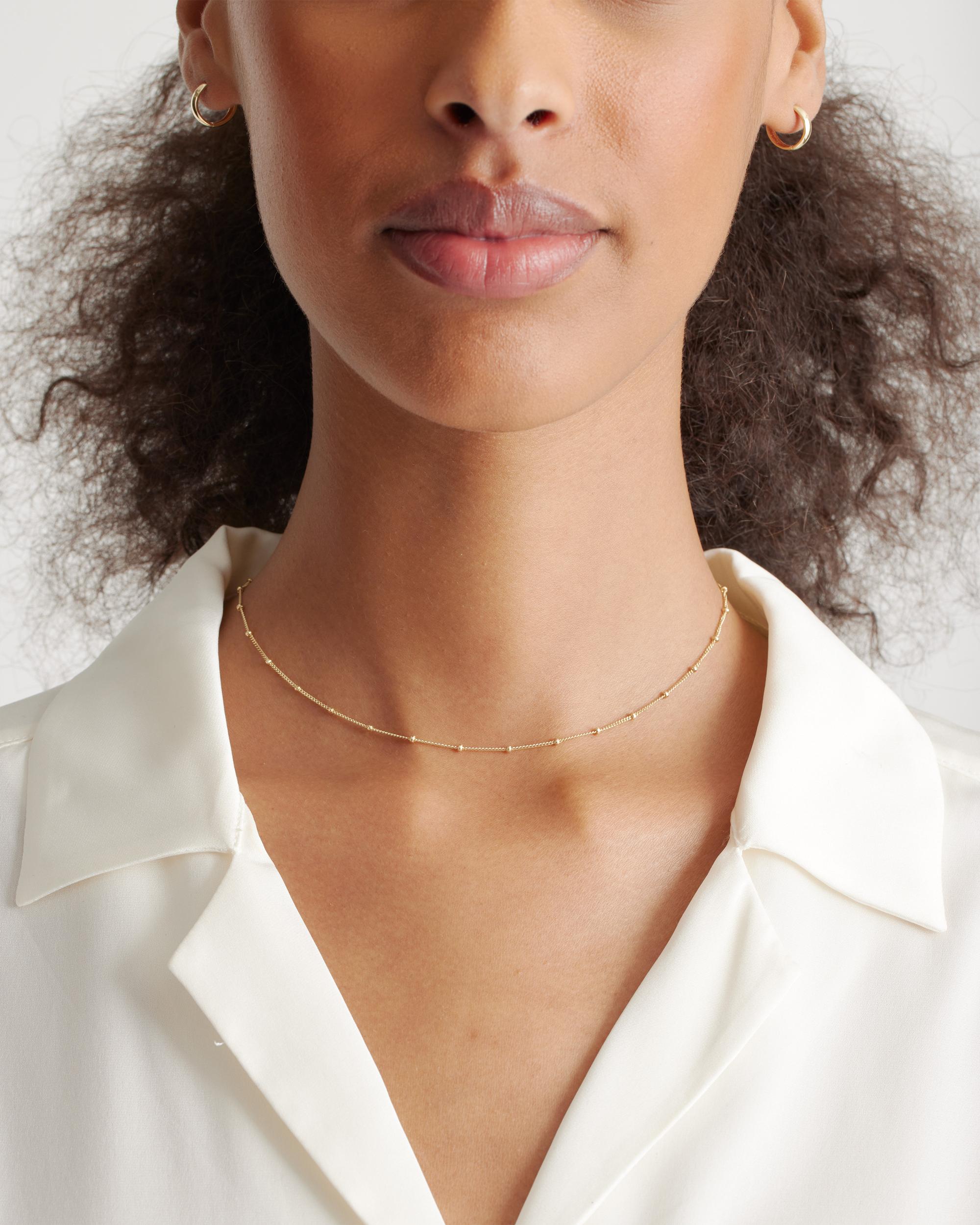 Designed as a little everyday luxury, our choker-length 14k gold beaded station necklace holds its own when worn solo but is also a great foundation for layering. Try pairing it with your other Quince faves for a delicately stacked look. | Quince | Women's 14k Gold Station Bead Choker in Yellow Gold
