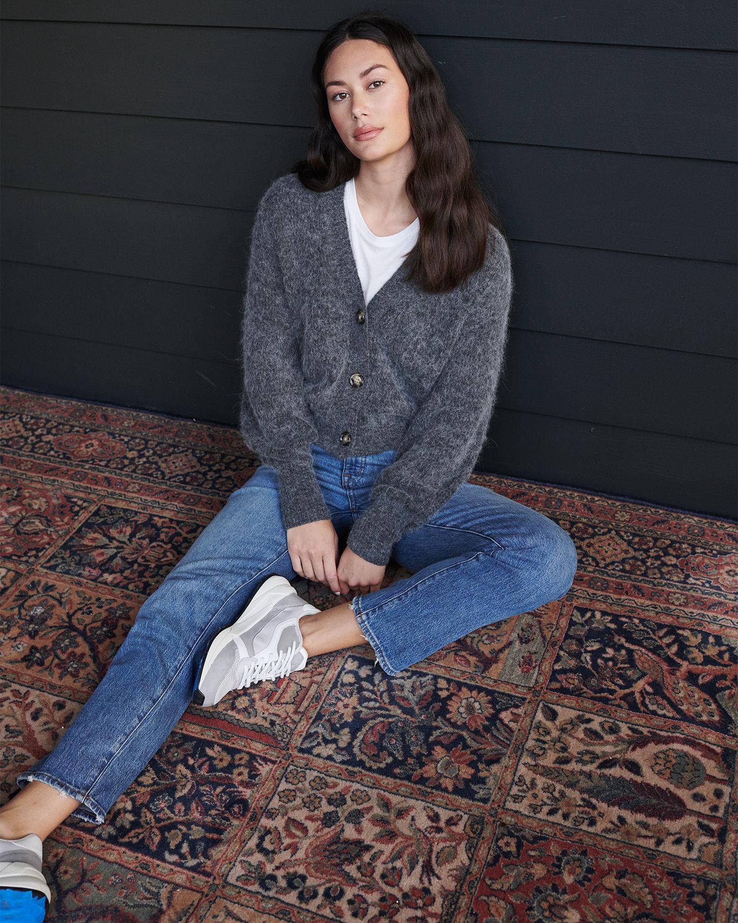 We adore this classic yet casual alpaca sweater. With a flattering cropped design, it's made for your everyday. The rib pattern, minimal button front, and cozy light feel make it a wardrobe staple. Alpaca wool is long lasting and resistant to pilling, and doesn't have the scratchiness of some other wools. | Quince | Women's Alpaca Cropped Cardigan Sweater in Charcoal, Size Small
