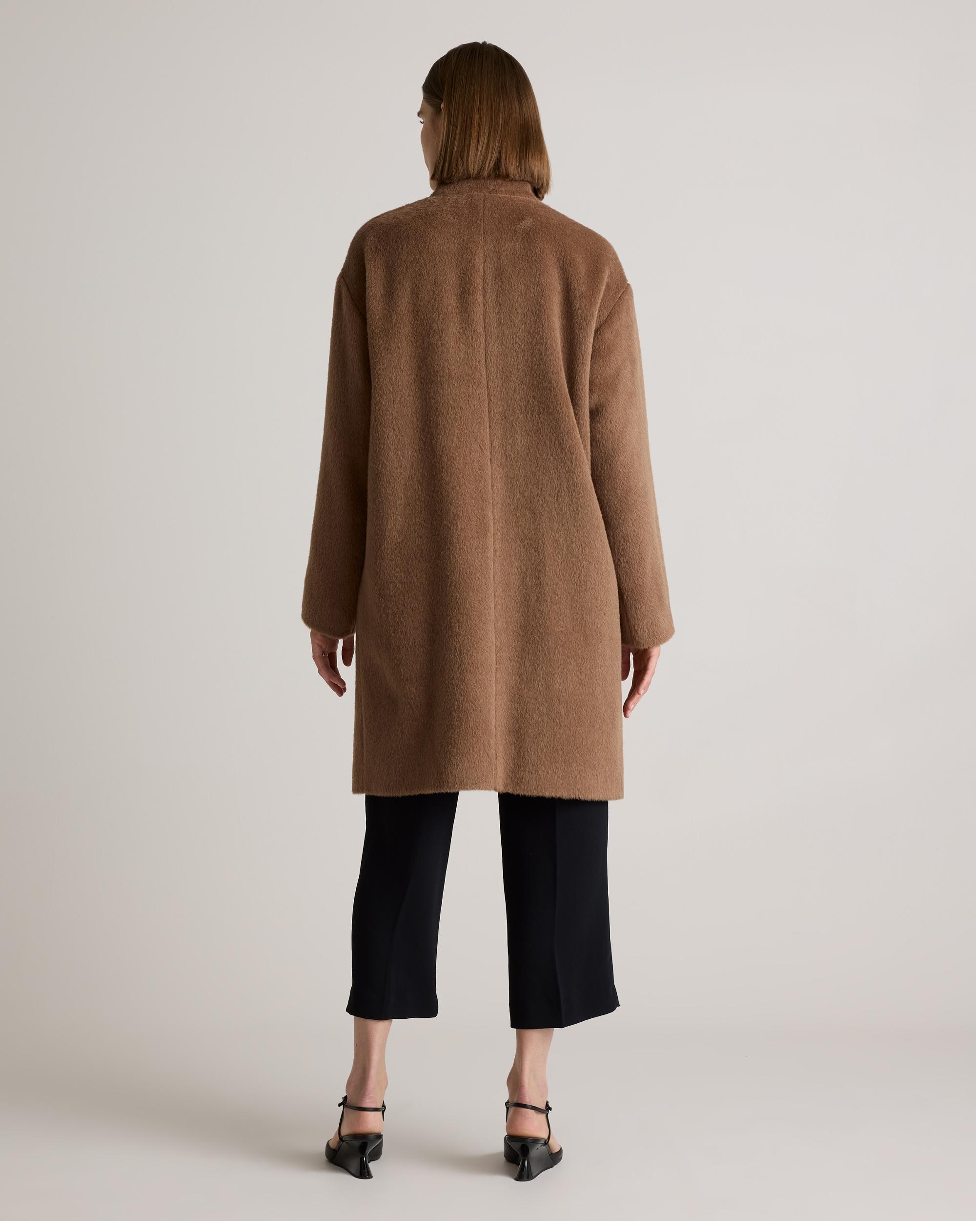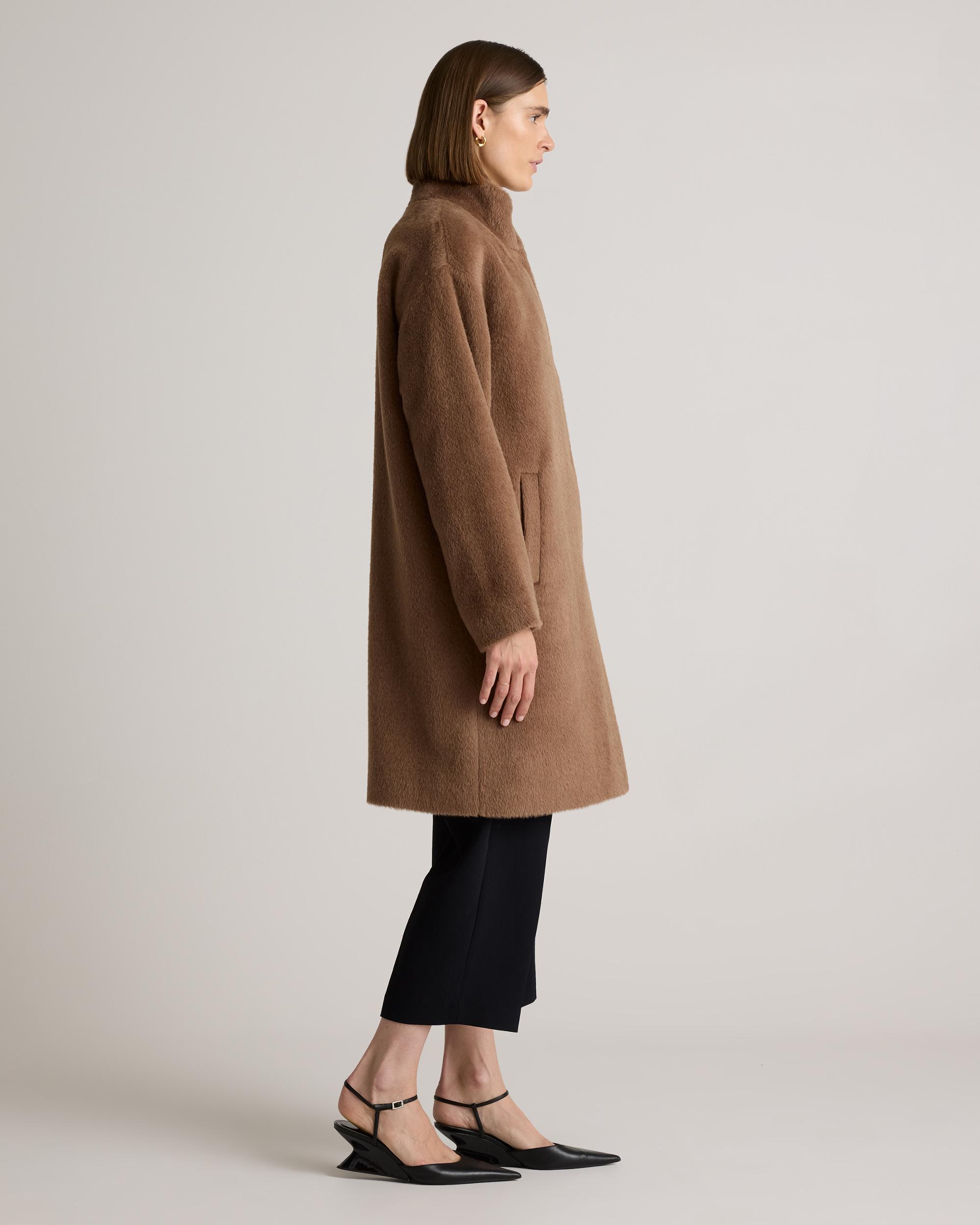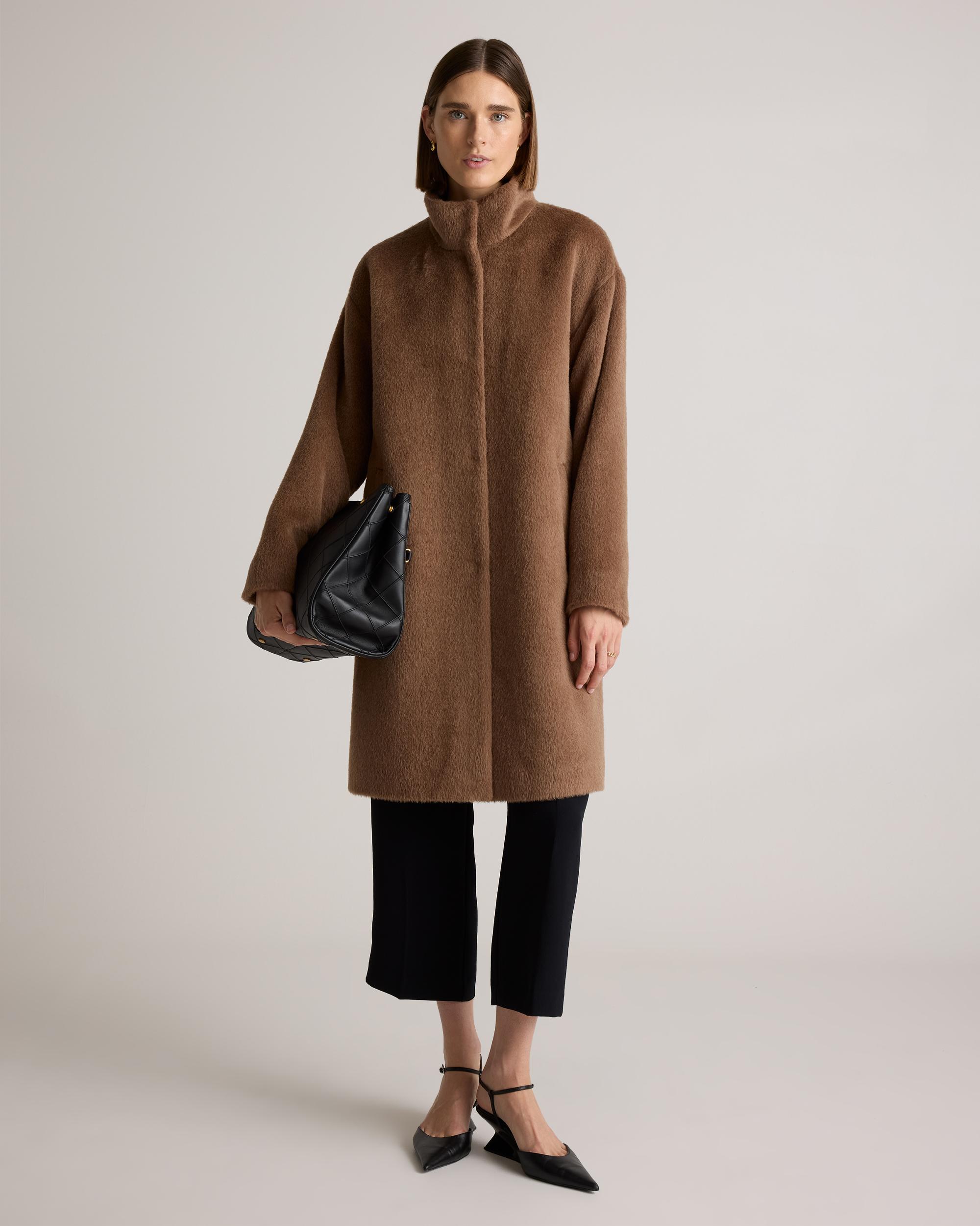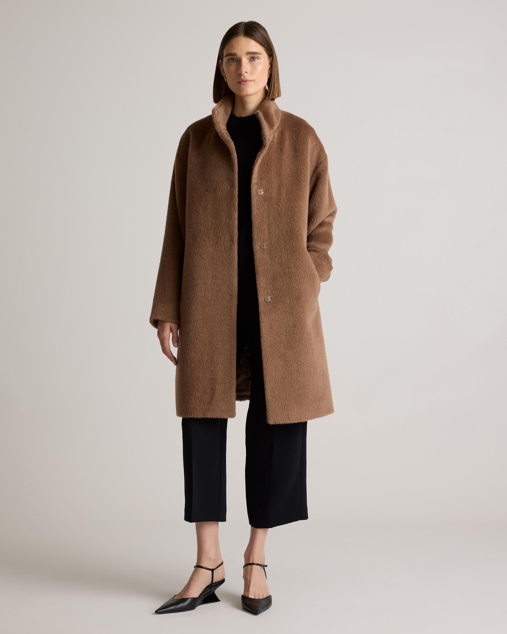 Elevate your wardrobe with our Alpaca-Wool Stand Collar Coat, crafted from luxurious and rare 100% alpaca-wool. Prized for its ultra-soft, teddy-like texture, durability, superior warmth, and moisture-wicking properties, alpaca-wool offers a unique blend of comfort and sophistication—qualities that few materials can match. The coat’s sleek stand collar adds modern sophistication, while the slightly oversized silhouette provides a fit that drapes effortlessly. With its soft feel and superior insulation, this alpaca-wool coat is a rare treasure designed to keep you warm in style for years to come. | Quince | Women's Alpaca-Wool Stand Collar Coat in Rustic Brown, Size Small