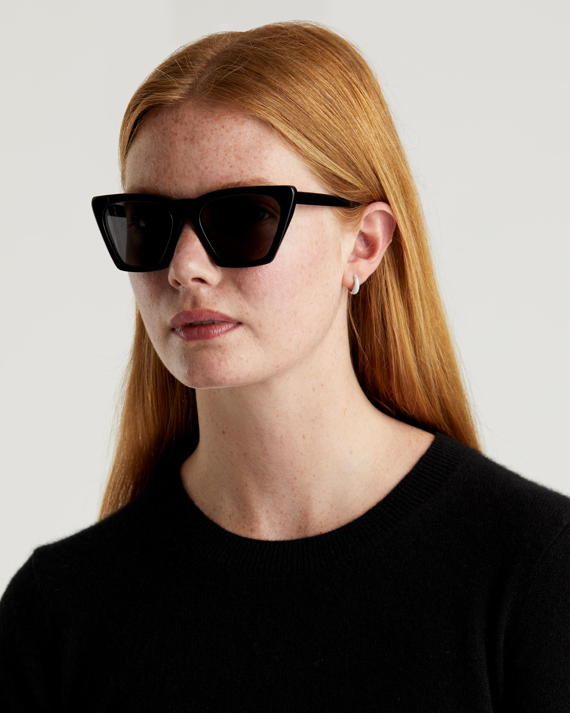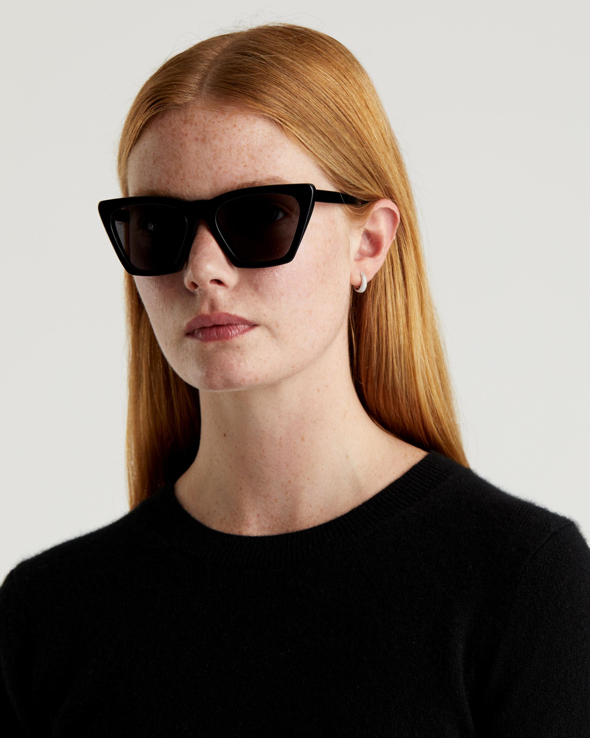 Our Andy Polarized Acetate Sunglasses are the perfect fusion of fashion and function. The sleek and angular cat-eye frame creates a striking silhouette that accentuates your features, making a glamorous statement wherever you go. They’re also lightweight for all-day comfort, and because they’re polarized, they’ll protect your eyes from glare. Bonus: The acetate frames are a plant-based alternative to conventional plastics made from petroleum, so you can feel good about wearing them too. | Quince | Women's Andy Polarized Acetate Sunglasses in Black with Grey lens, Size Standard, Cellulose Acetate