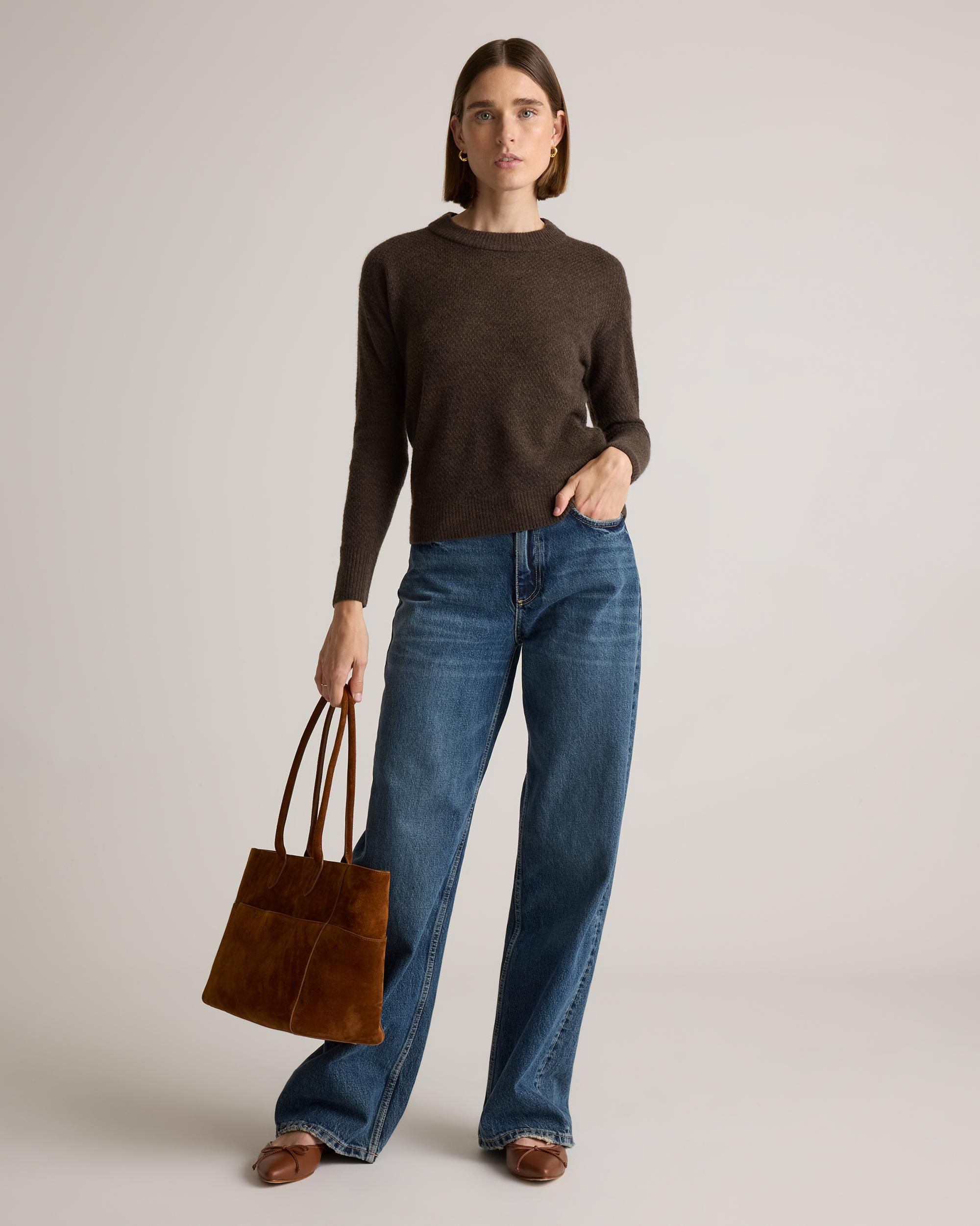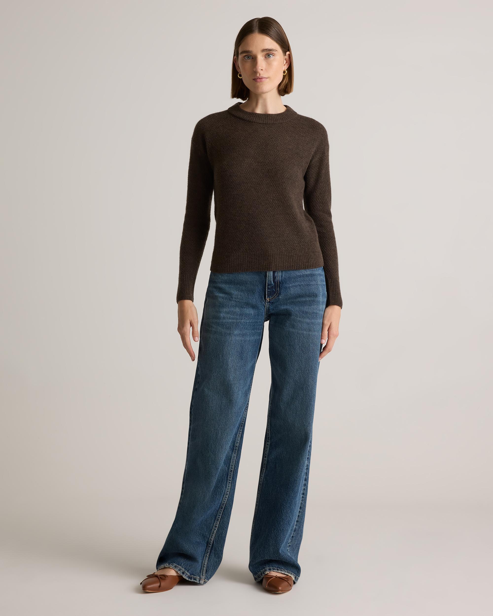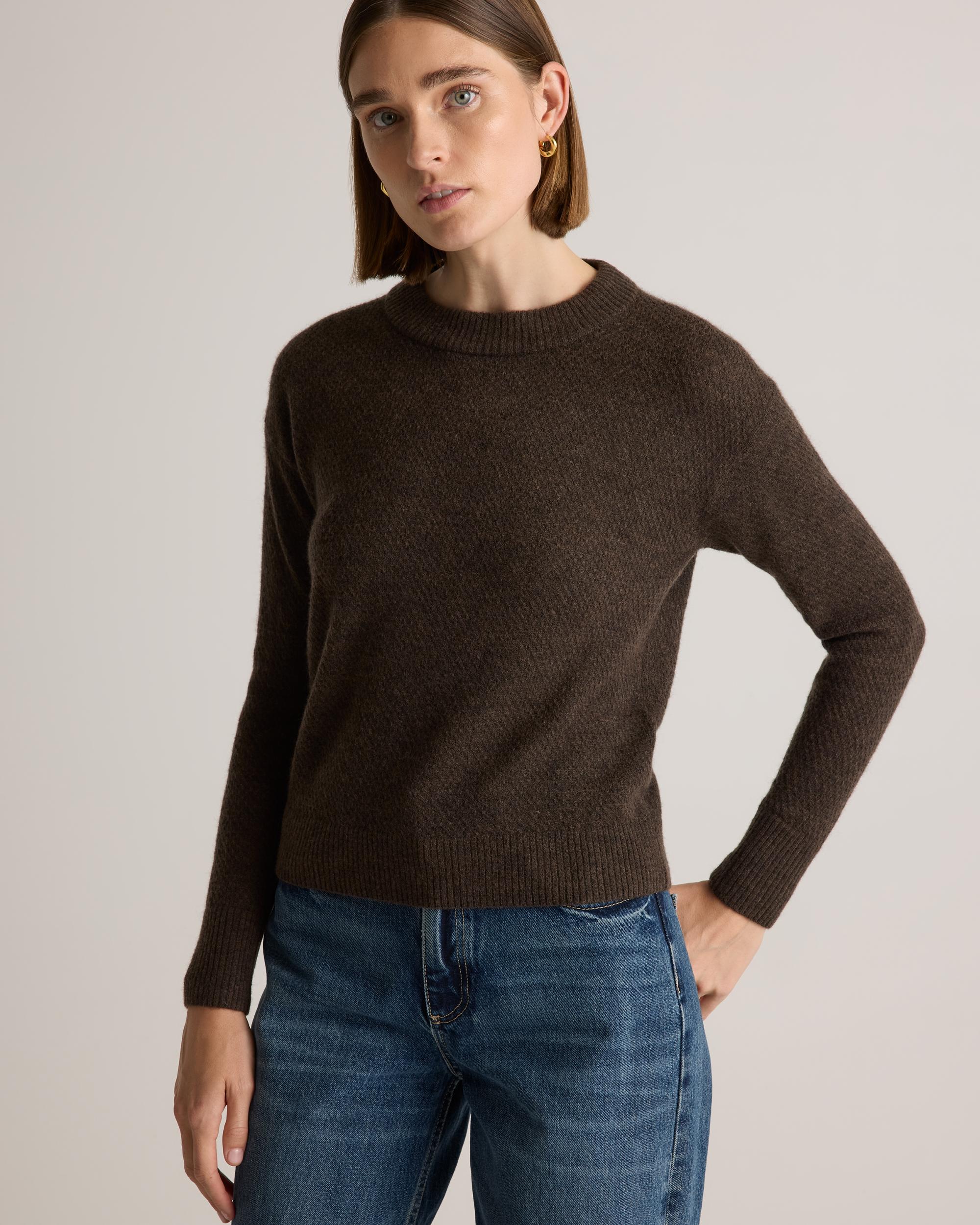 Soft, textured, tactile. We love that our alpaca crewneck sweater has an oversized silhouette with a light feel. It has a diamond stitch pattern with an incredibly soft texture for ultimate easy styling and comfort. Alpaca wool is long lasting and resistant to pilling, and doesn't have the scratchiness of some other wools. | Quince | Women's Baby Alpaca-Wool Diamond Stitch Crew Neck Alpaca Sweater in Dark Walnut, Size Large