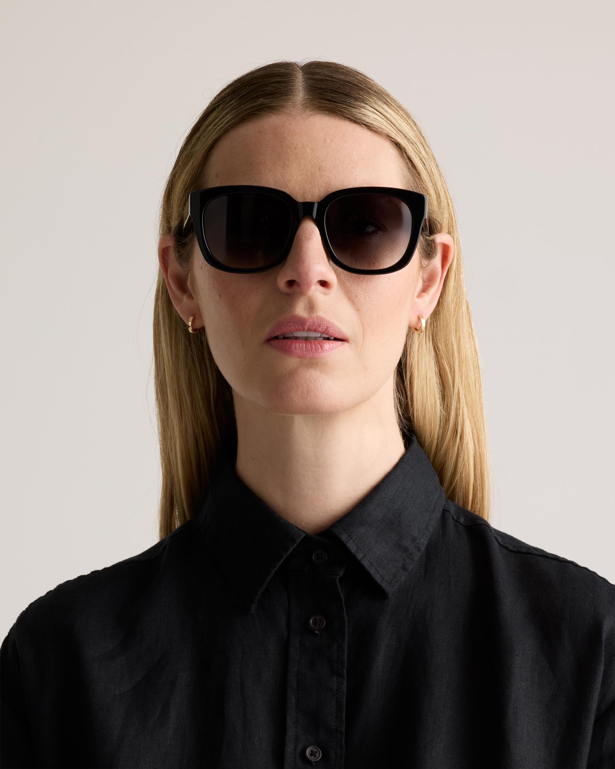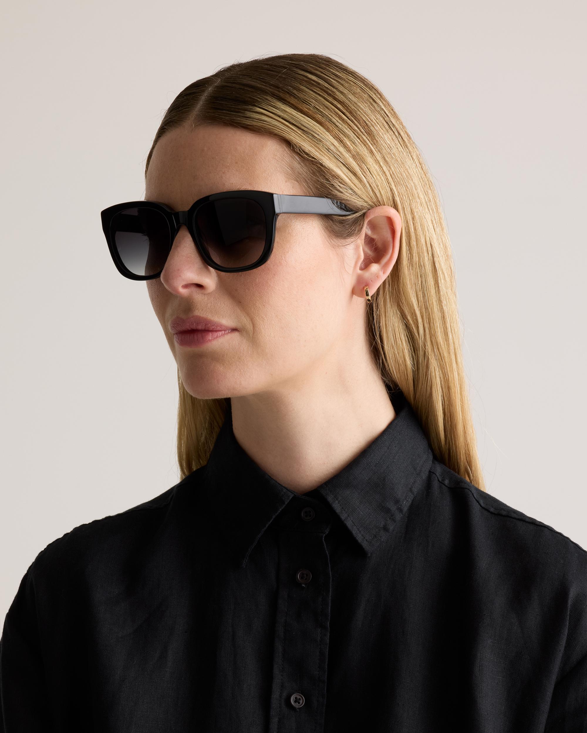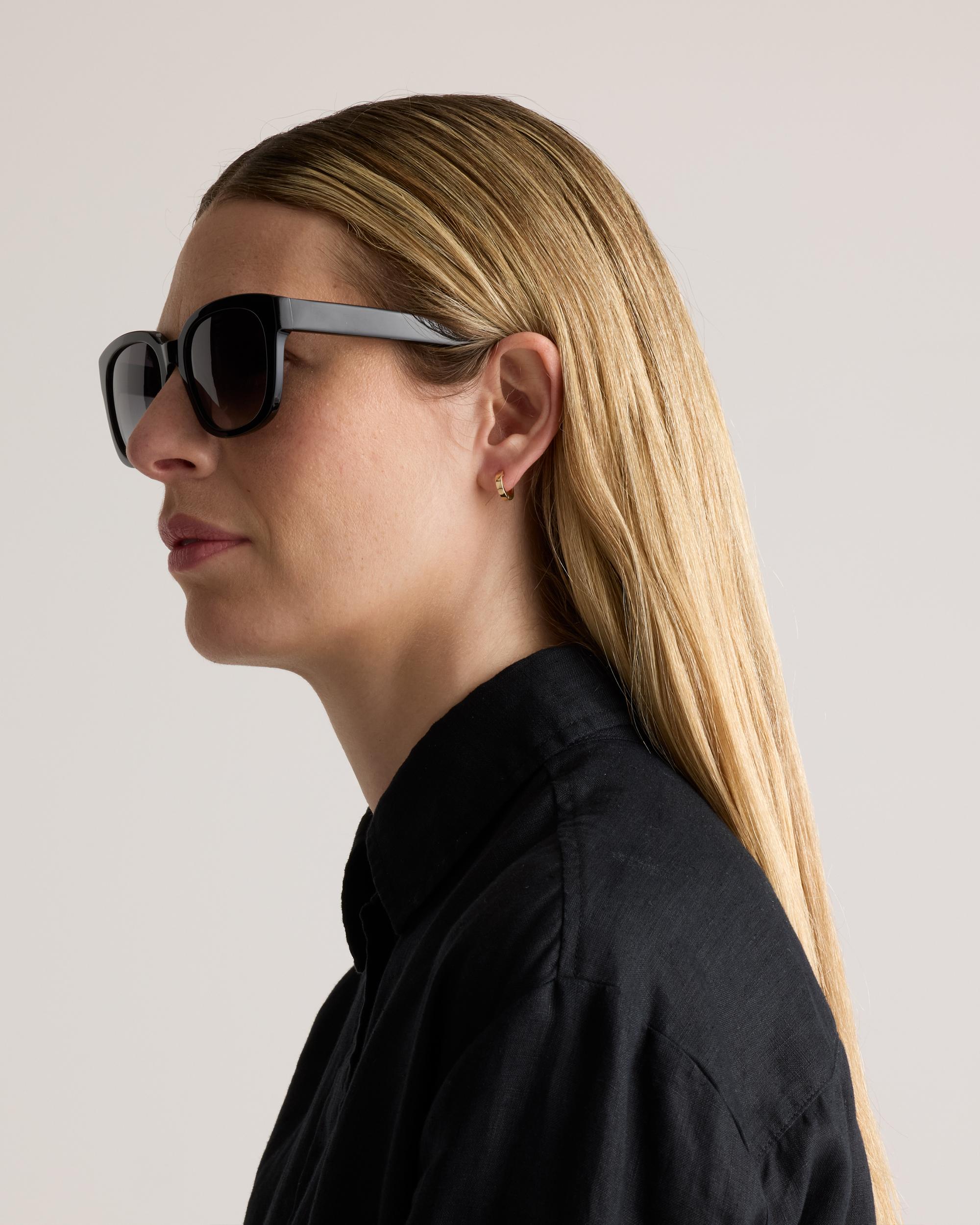 These timelessly chic sunglasses feature an oversized square frame with gradient tinted lenses, making them a versatile shade to wear every day. They’re also lightweight for all-day comfort and polarized to protect your eyes from glare. Bonus: The acetate frames are a plant-based alternative to conventional plastics made from petroleum, so you can feel good about wearing them too. | Quince | Women's Barcelona Polarized Acetate Sunglasses in Black with Grey Gradient lens, Size Standard, Cellulose Acetate