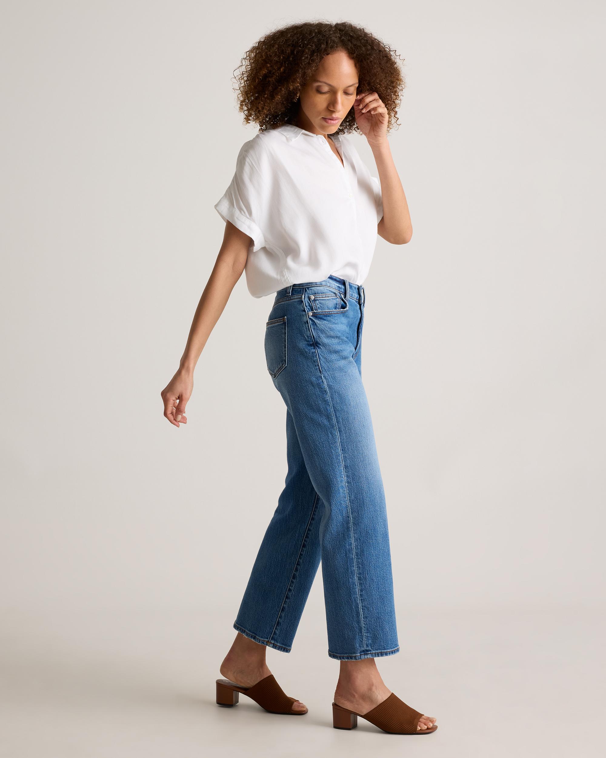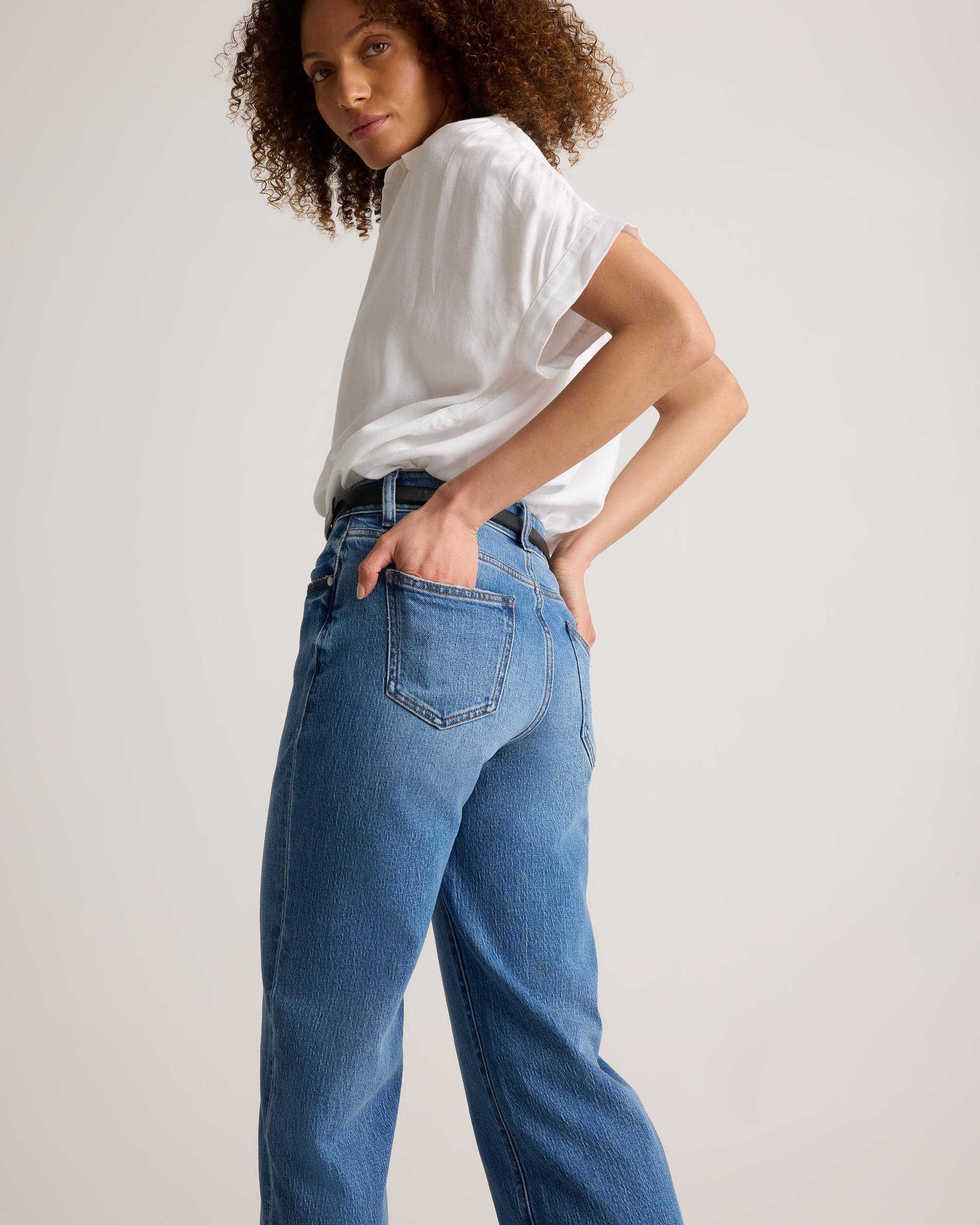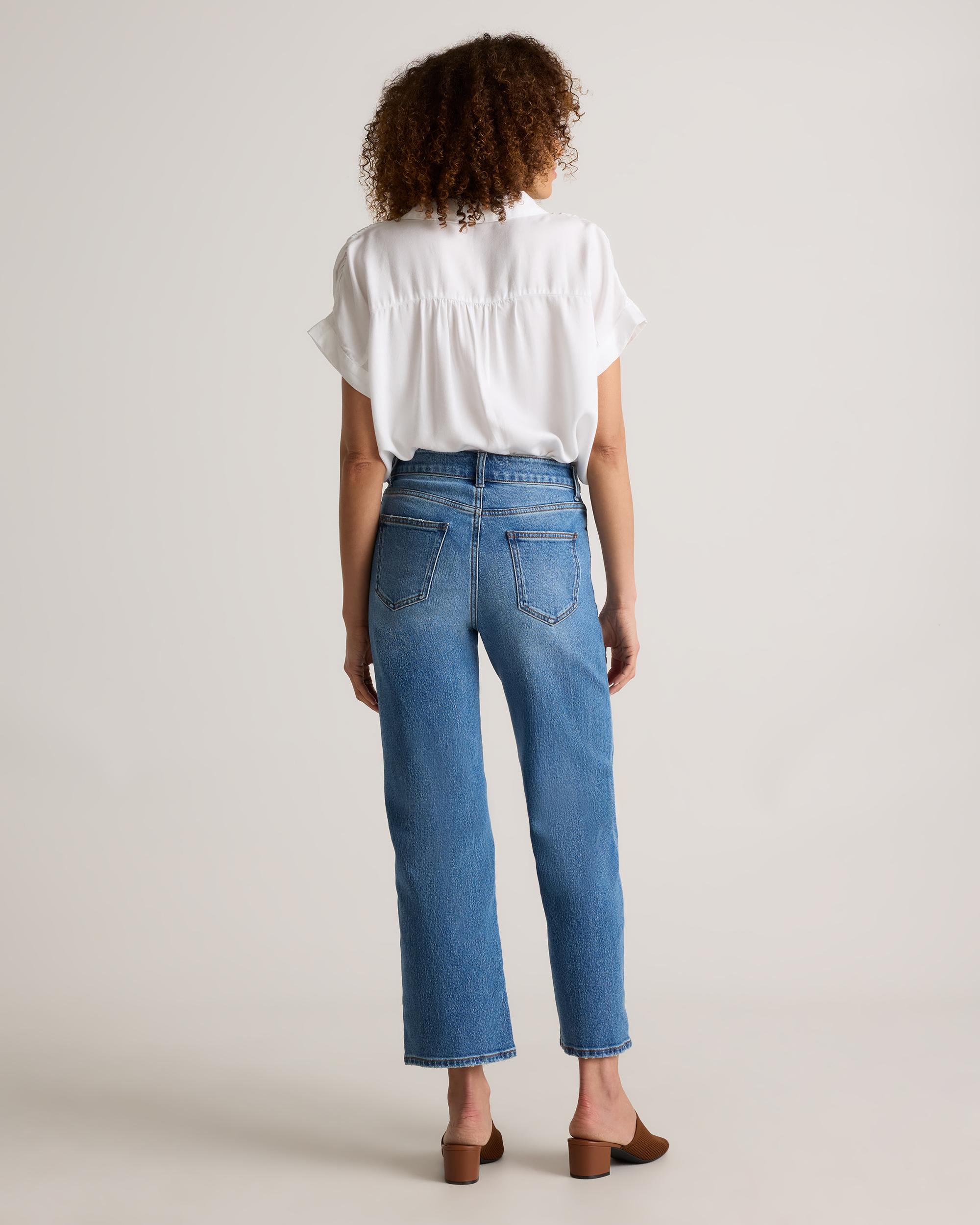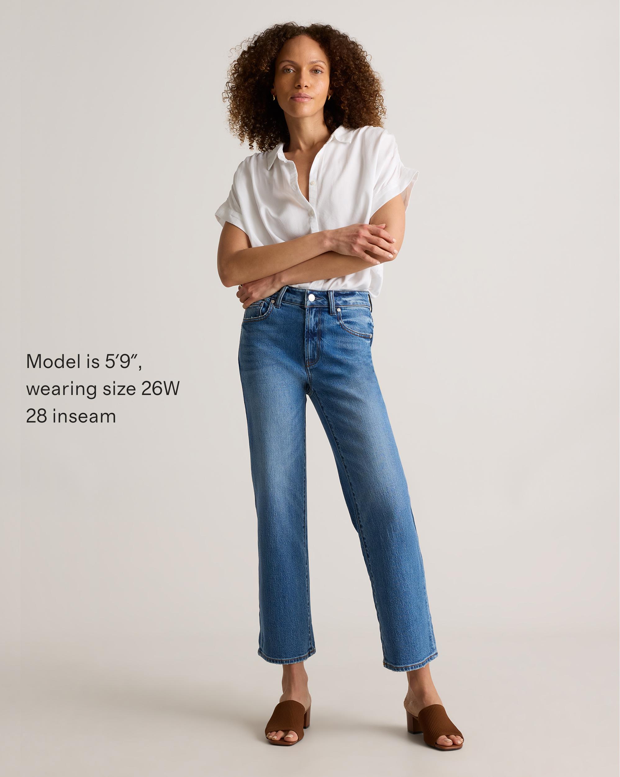 Designed with a nod to vintage style, our Bella Stretch Cropped Straight Jeans have a high rise with a curve-hugging cut and cropped straight leg for relaxed style. Plus it’s crafted from premium denim with organic cotton for a supportive yet comfy fit and impossibly soft feel. It’s the perfect pair you’ll always reach for. | Quince | Women's Bella Stretch Cropped Straight Jeans in Atlantic Blue, Size 29, Organic Cotton