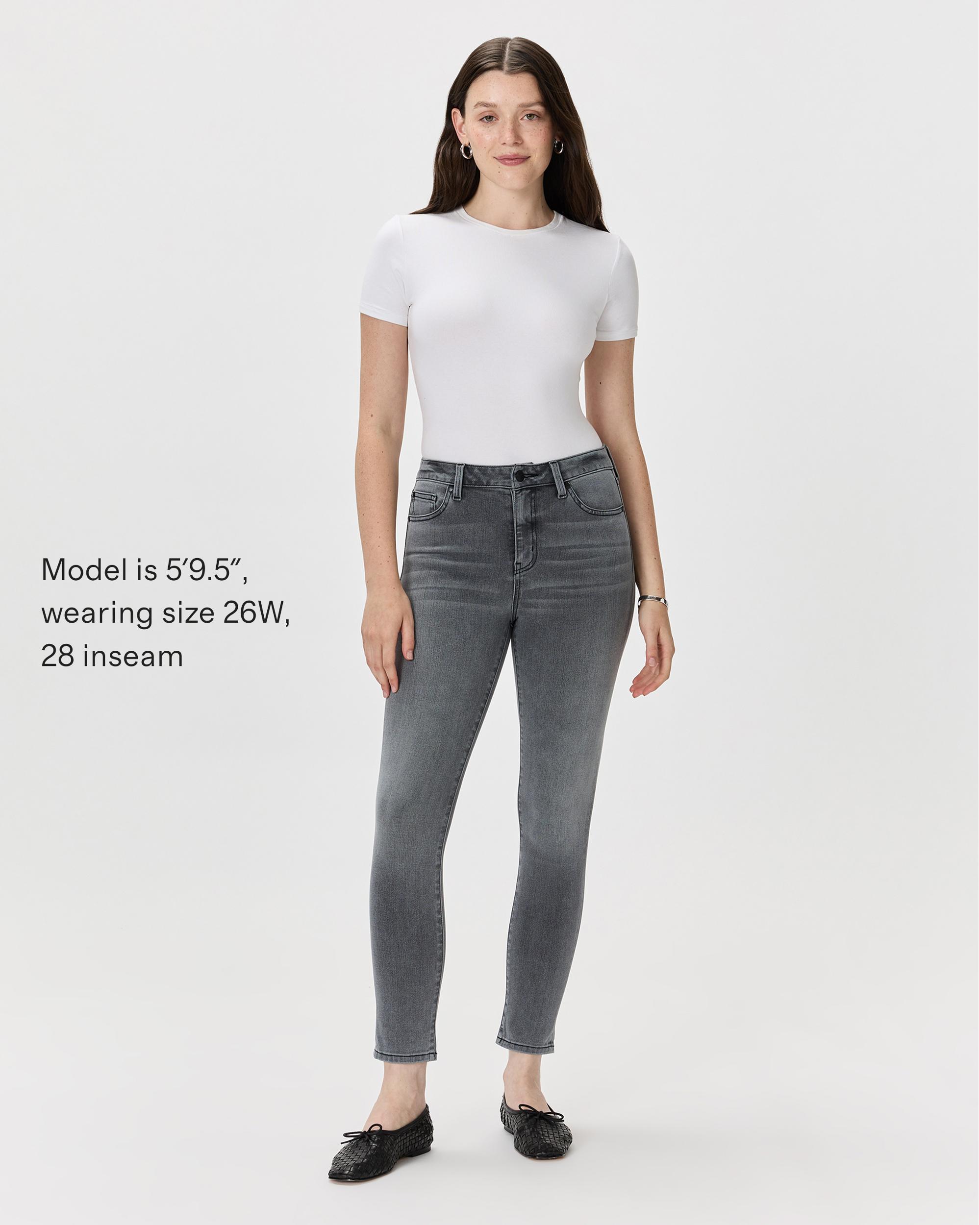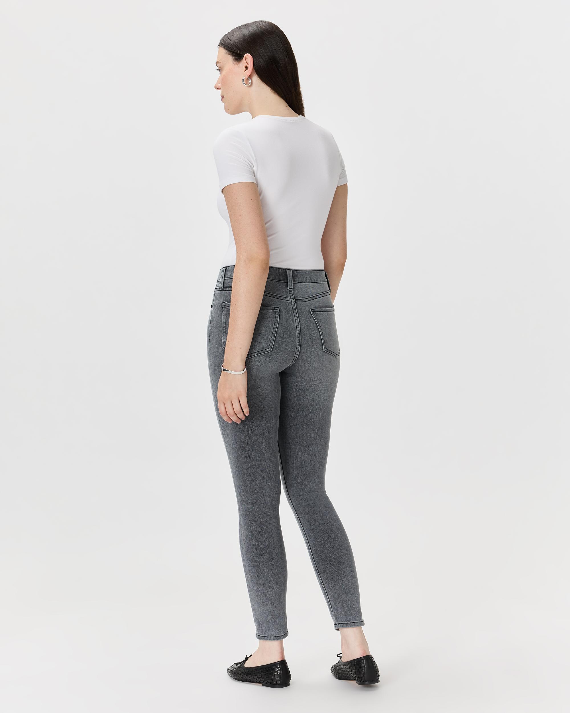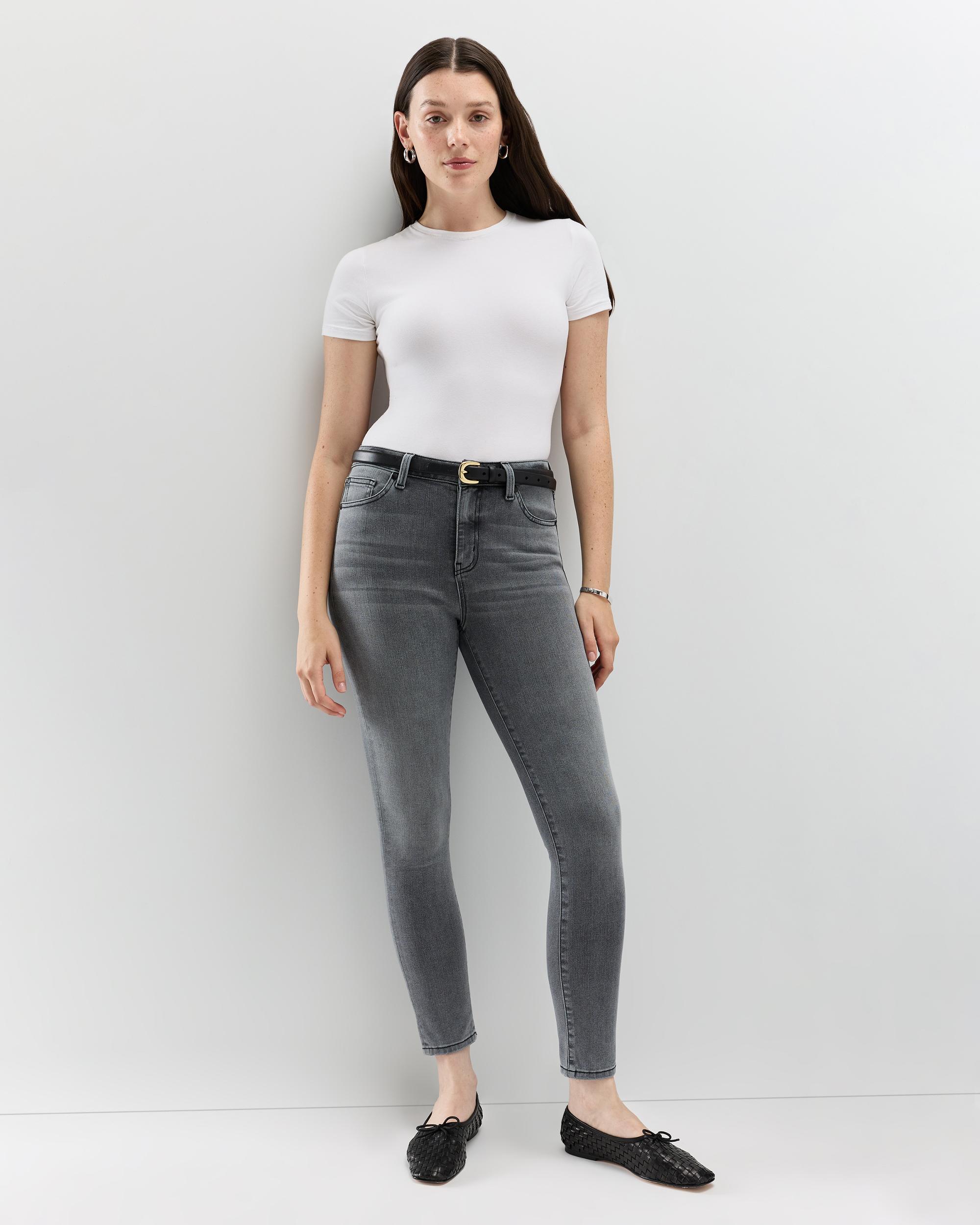 A modern classic with a curve-hugging cut from waist to ankle. Our Bella Stretch Skinny Jeans feature a high rise that flatters and feels good. The premium super stretch denim is made from organic cotton for a flexible fit and impossibly soft feel. It’s the comfy pair you’ll always reach for. | Quince | Women's Bella Stretch Skinny Jeans in Greyed Out, Size 32, Organic Cotton