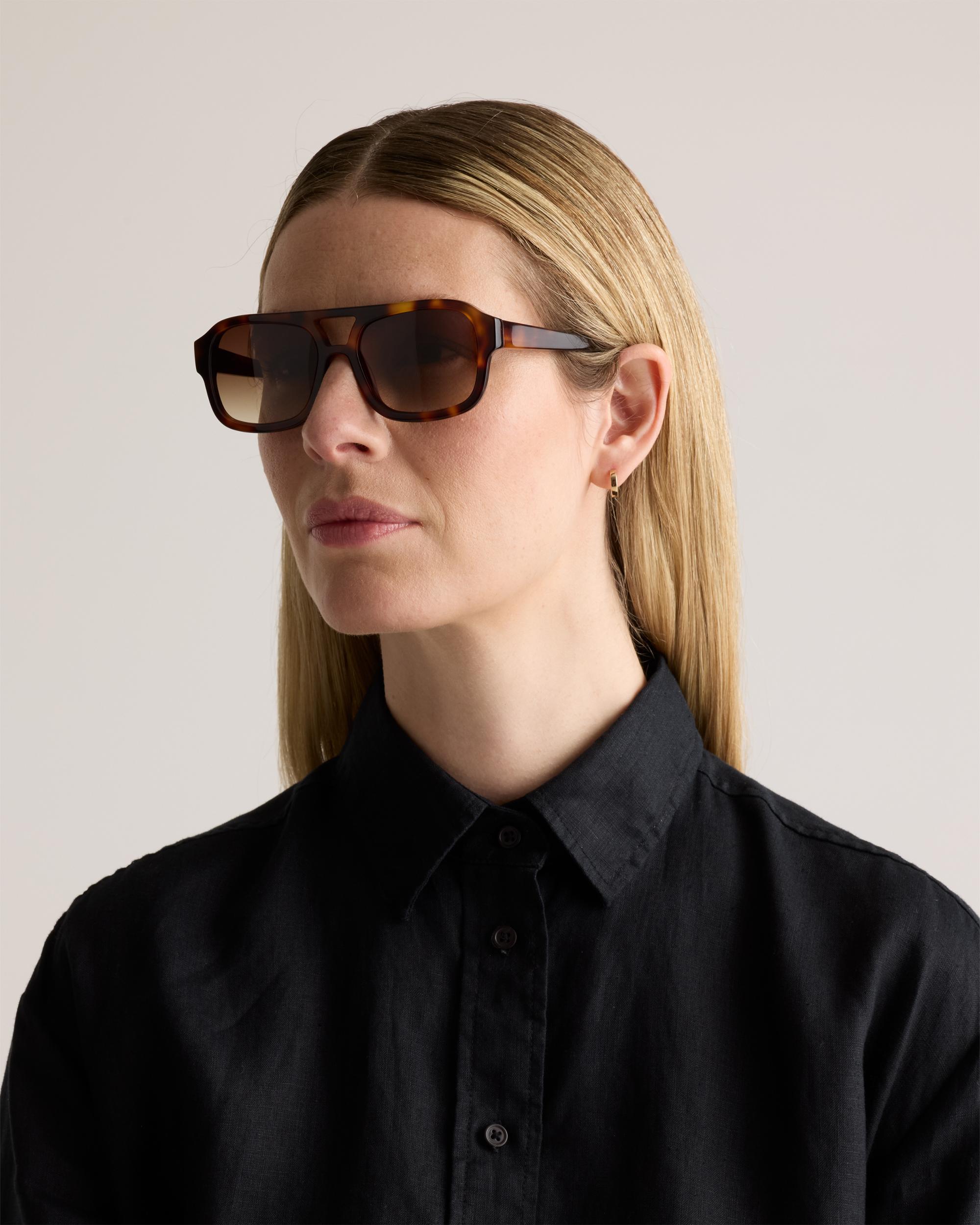 Meet the Berlin Polarized Acetate Sunglasses, your new favorite vintage-inspired aviators. These lightweight statement shades are polarized to protect your eyes from glare and made from eco-conscious (and durable) acetate, a plant-based alternative to conventional plastics. So you can look and feel good while wearing them. | Quince | Women's Berlin Polarized Acetate Sunglasses in Ginger Tortoise with Brown Gradient lens, Size Standard, Cellulose Acetate