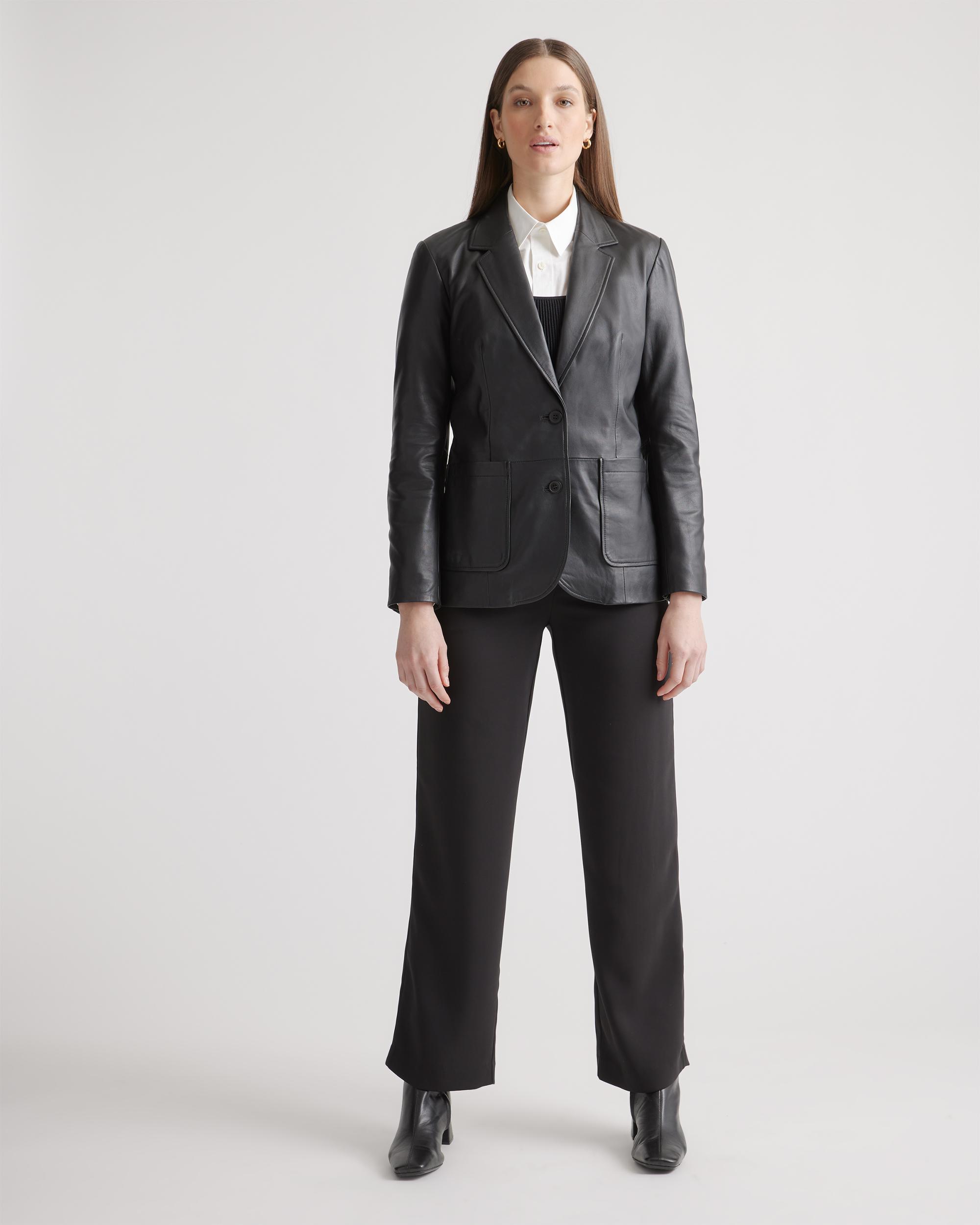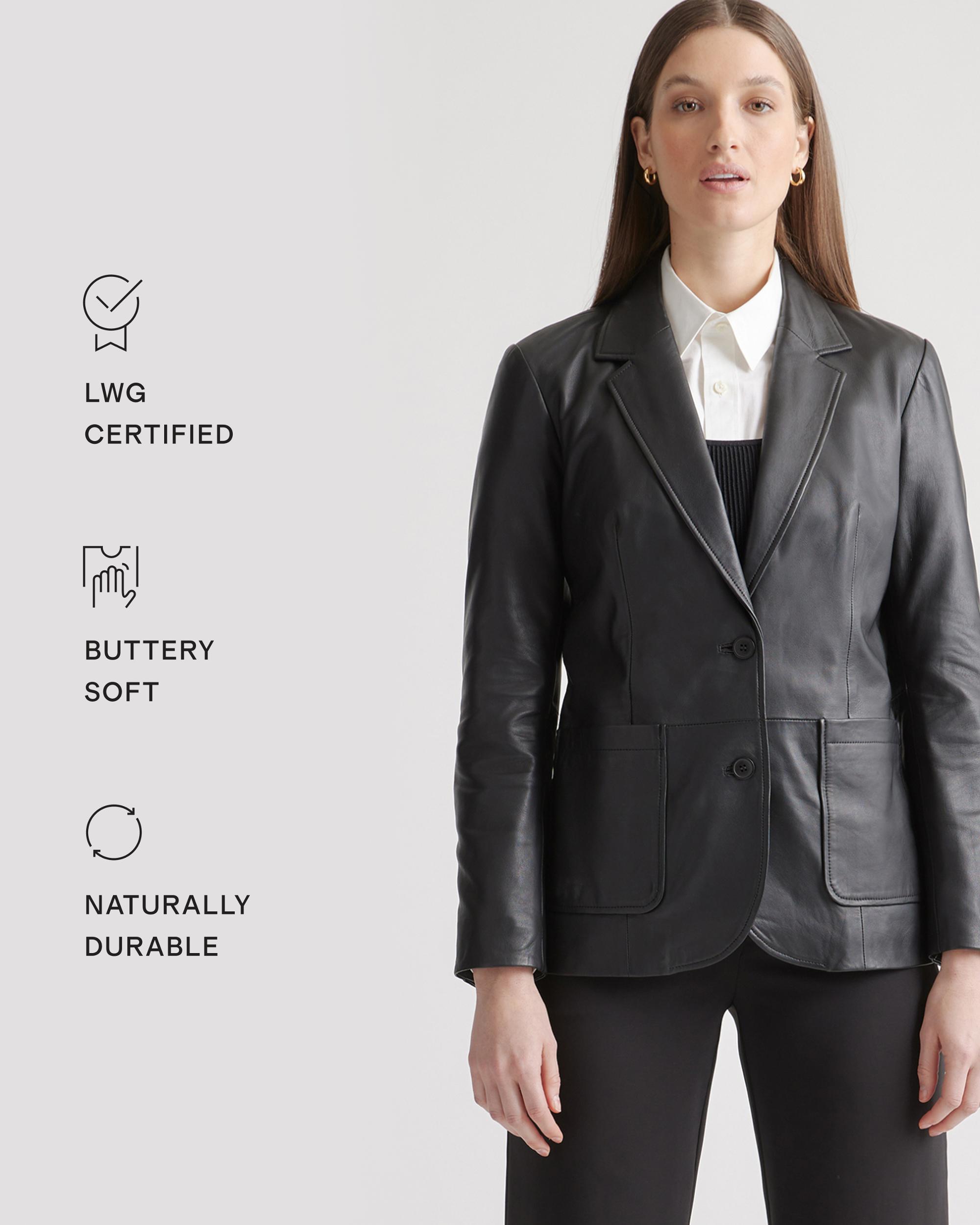 Introducing the ultimate statement piece - our sleek and stylish Leather Blazer. Crafted from the finest, 100% top grain sheep leather, this blazer is the epitome of luxury and sophistication. With its classic cut and timeless design, it's the perfect choice for any occasion, from a casual night out to a formal event. Meet the best way to elevate your style and add a touch of luxury to your wardrobe. Read more about what makes our leather special in our Leather 101 guide. | Quince | Women's Blazer in Black, Size XL, Leather