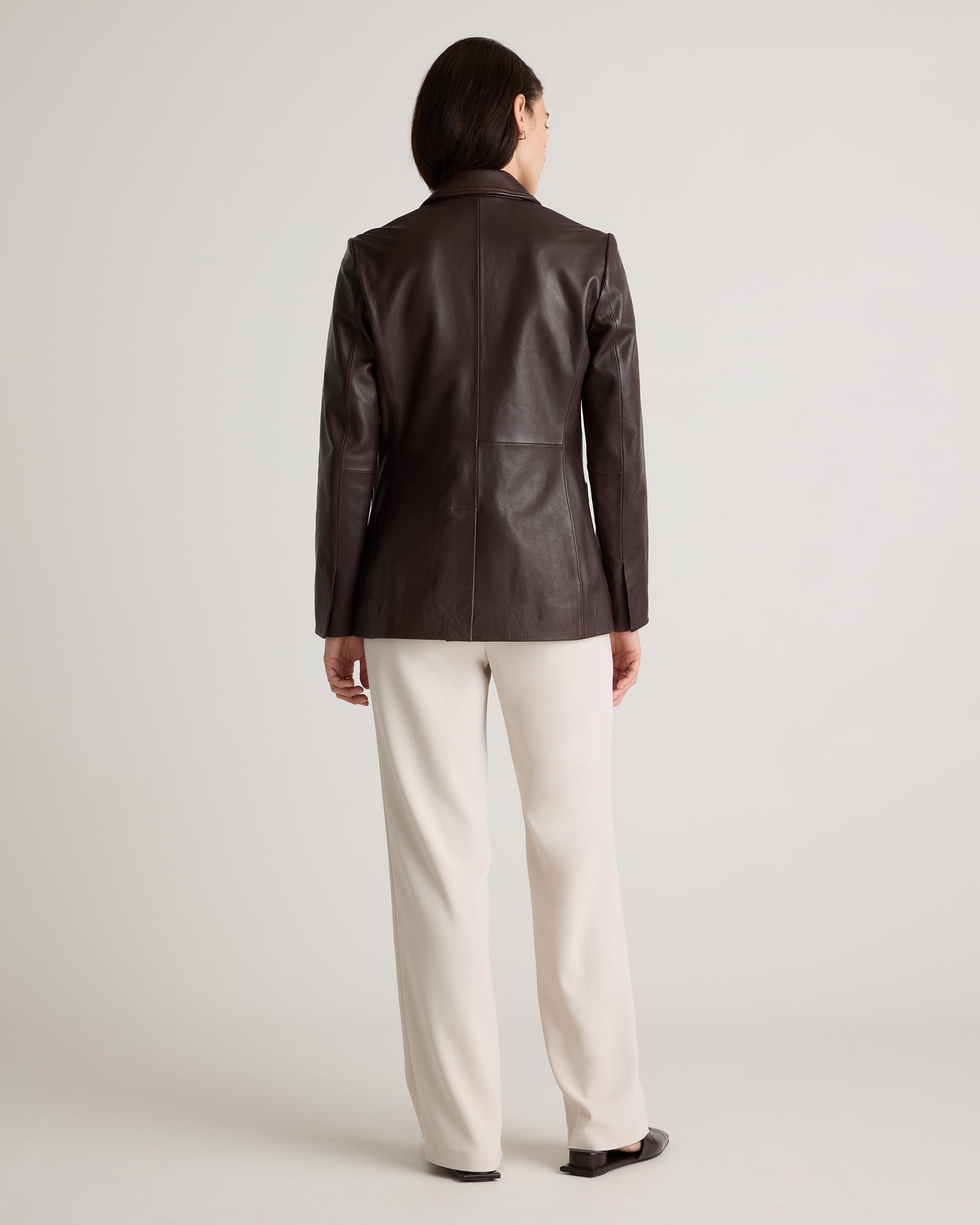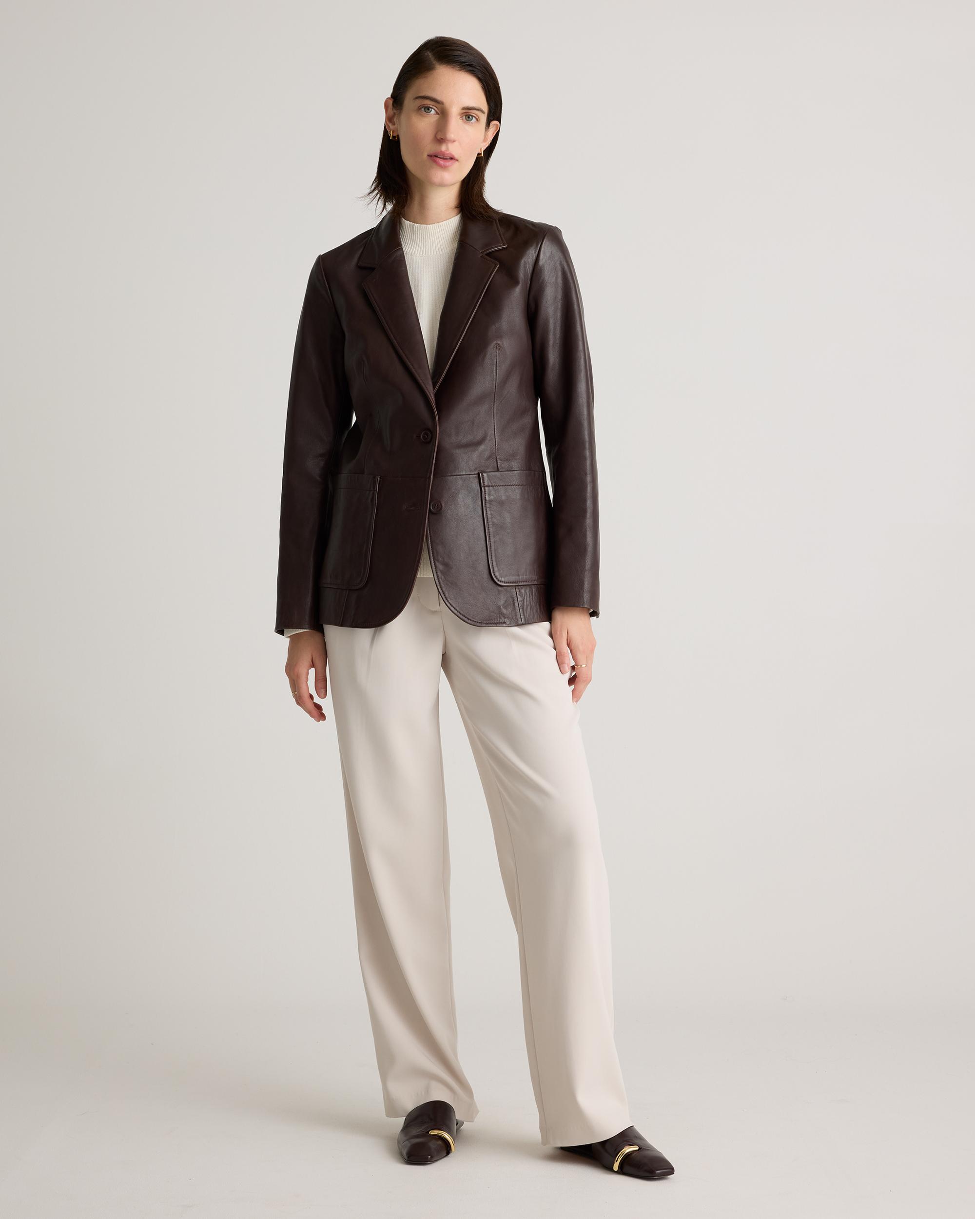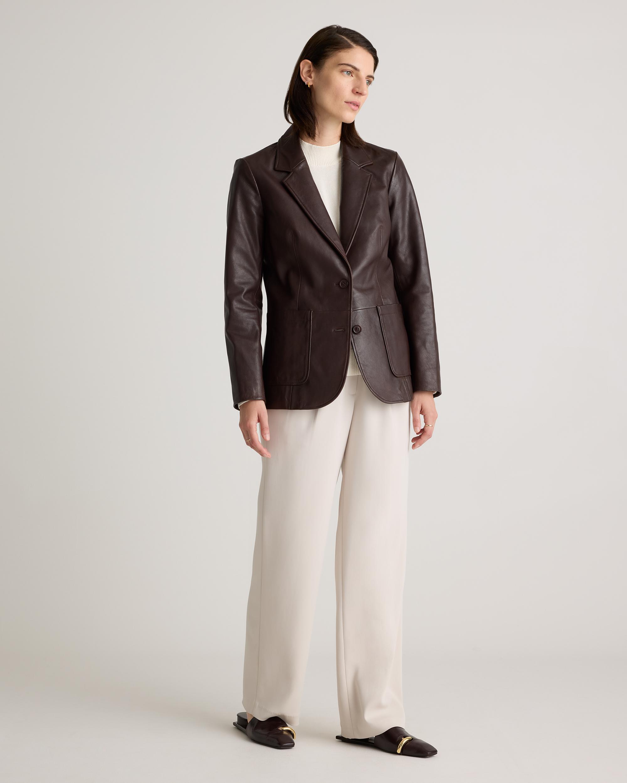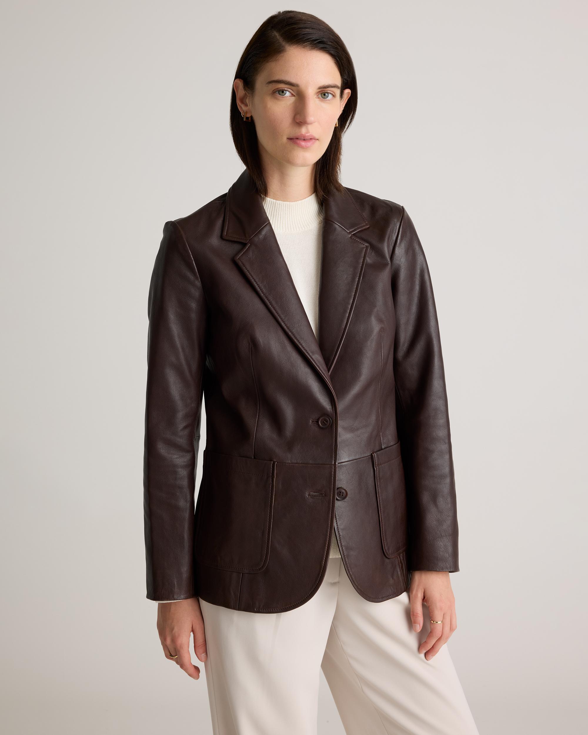 Introducing the ultimate statement piece - our sleek and stylish Leather Blazer. Crafted from the finest, 100% top grain sheep leather, this blazer is the epitome of luxury and sophistication. With its classic cut and timeless design, it's the perfect choice for any occasion, from a casual night out to a formal event. Meet the best way to elevate your style and add a touch of luxury to your wardrobe. Read more about what makes our leather special in our Leather 101 guide. | Quince | Women's Blazer in Brown, Size Small, Leather