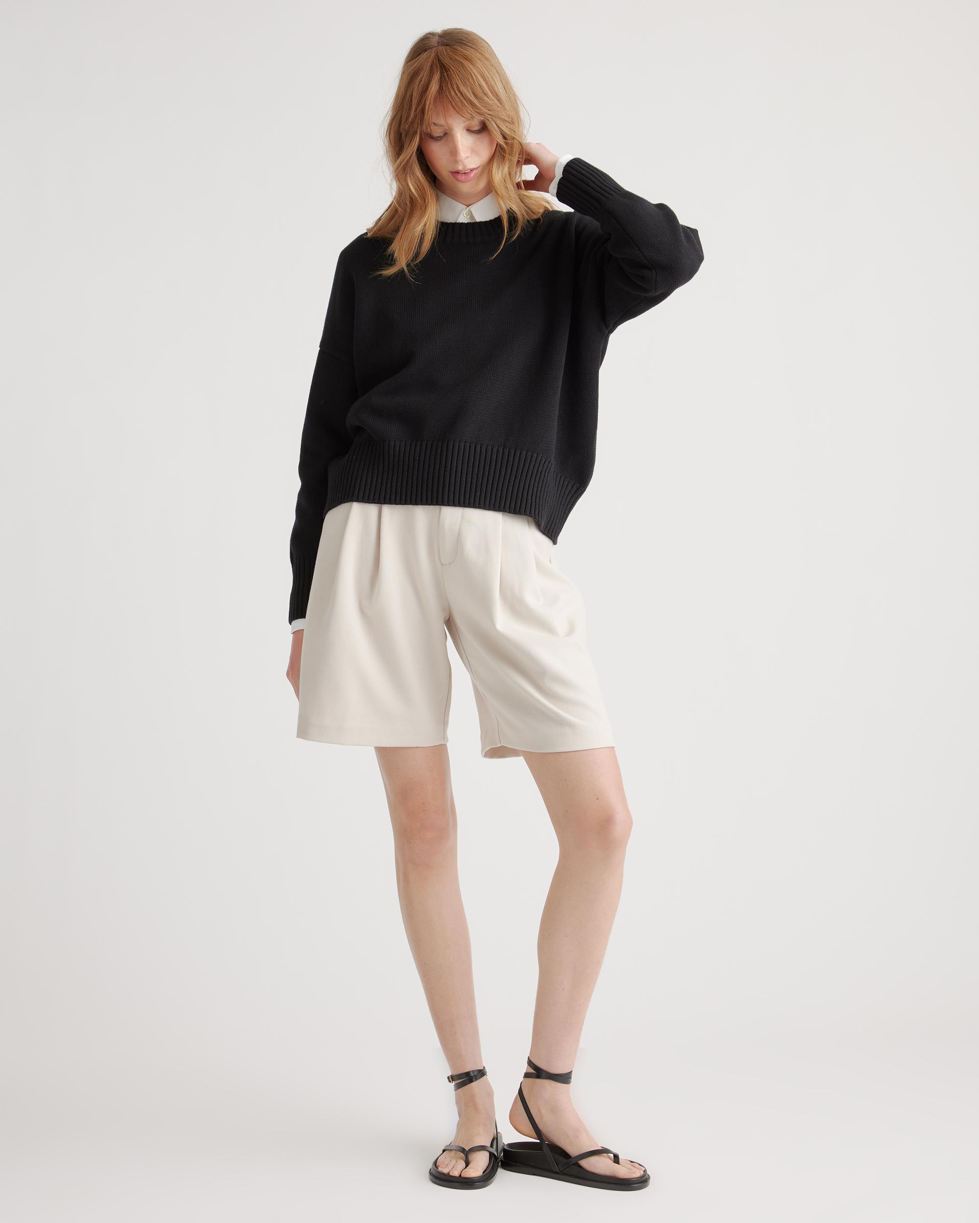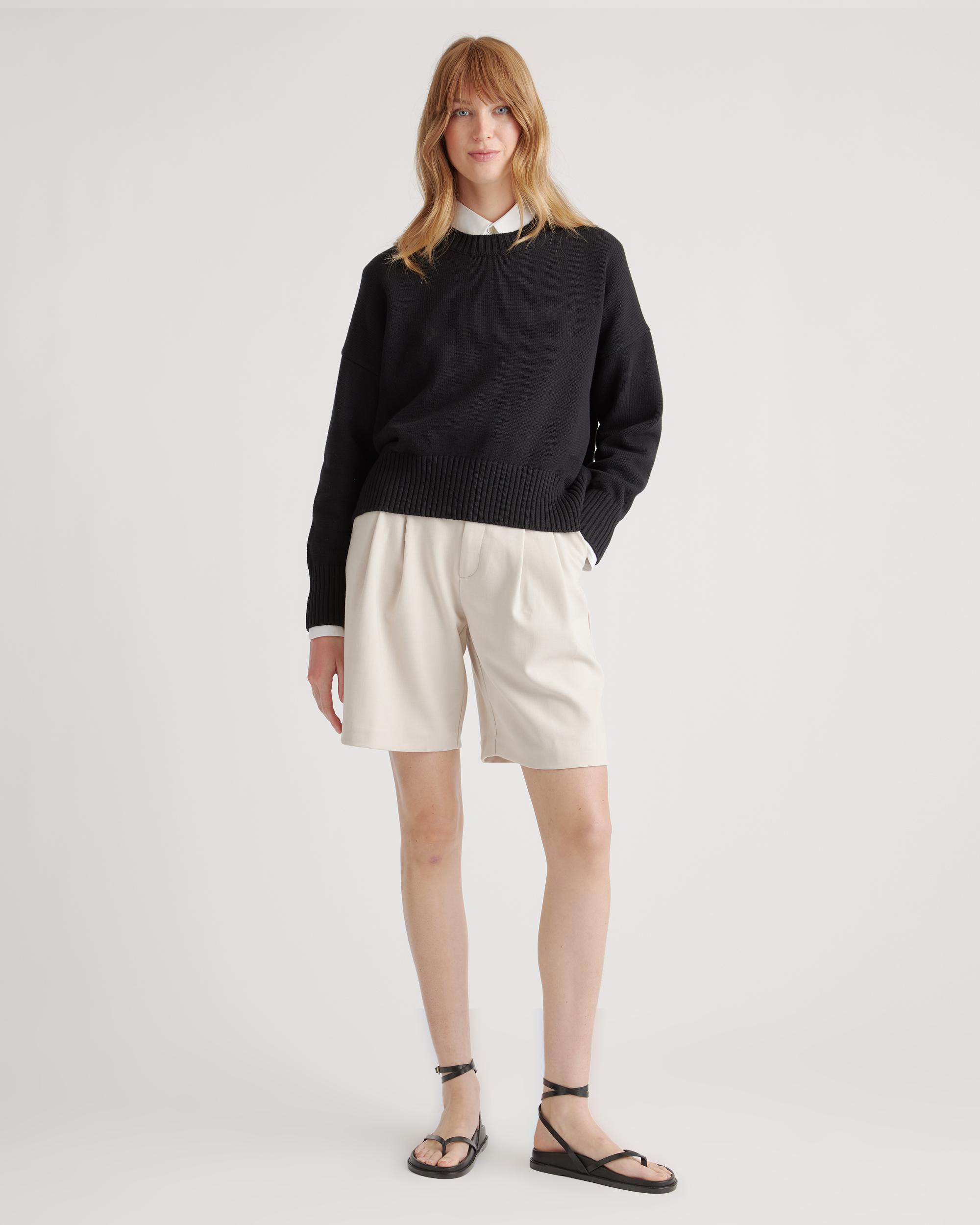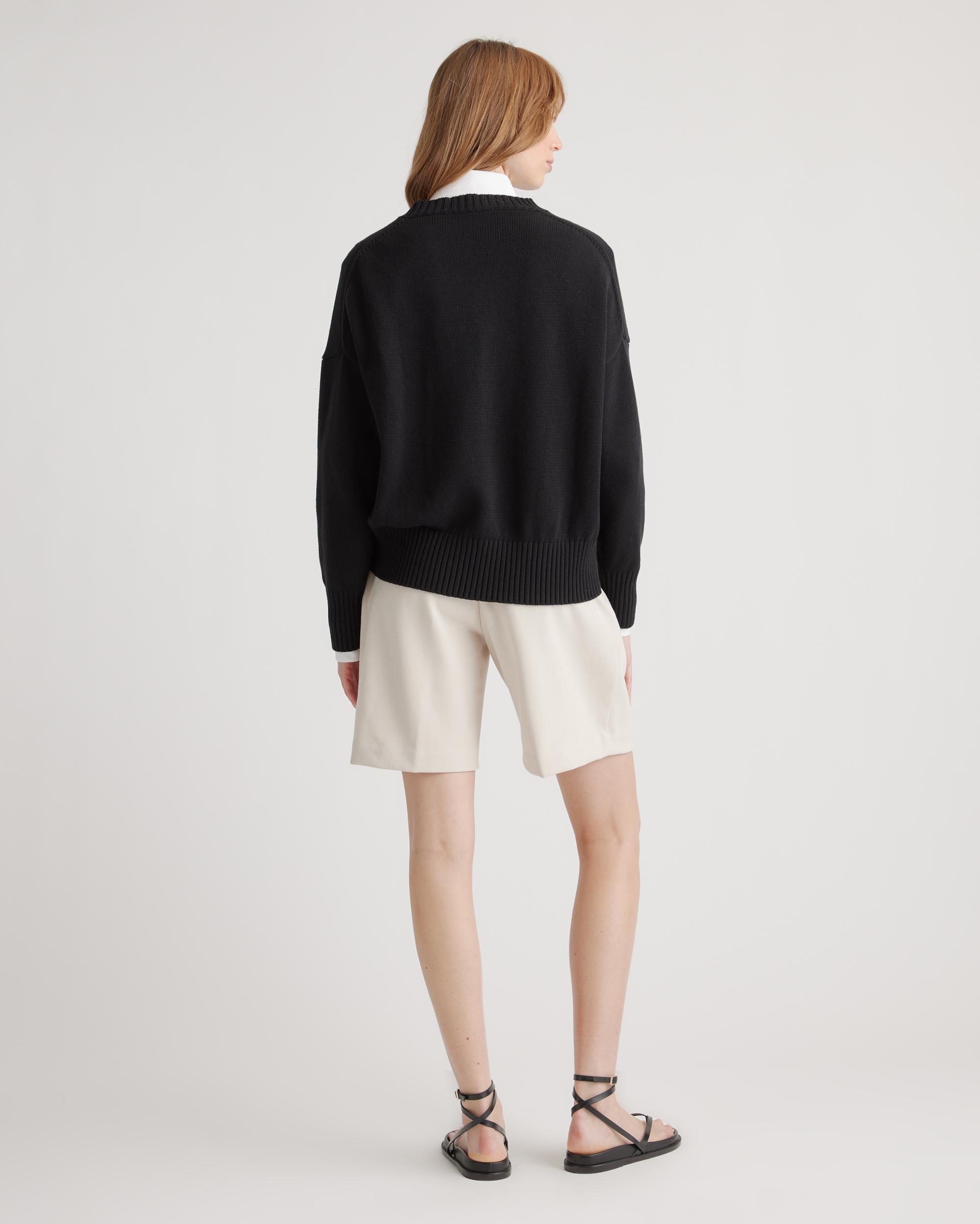 Your go-to for spring brunch and relaxed weekends, our Organic Cotton Boyfriend Crew has an oversized, cropped silhouette with ribbed detail on cuffs and hem. It's made from 100% organic cotton for a soft, slouchy vibe & just-right weight. A timeless transitional layer you’ll wear season after season. Also offered in sizes 1X-3X. | Quince | Women's Boyfriend Crewneck Sweater in Black, Size Small, Organic Cotton