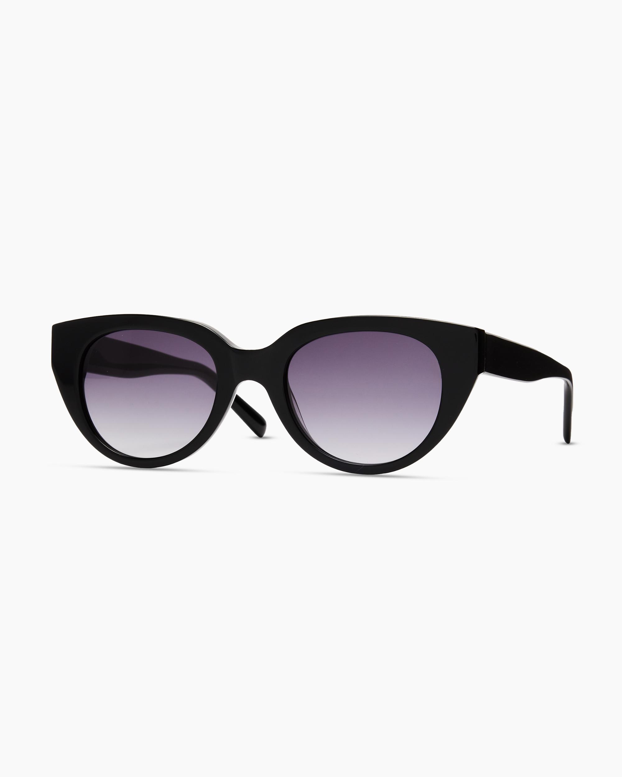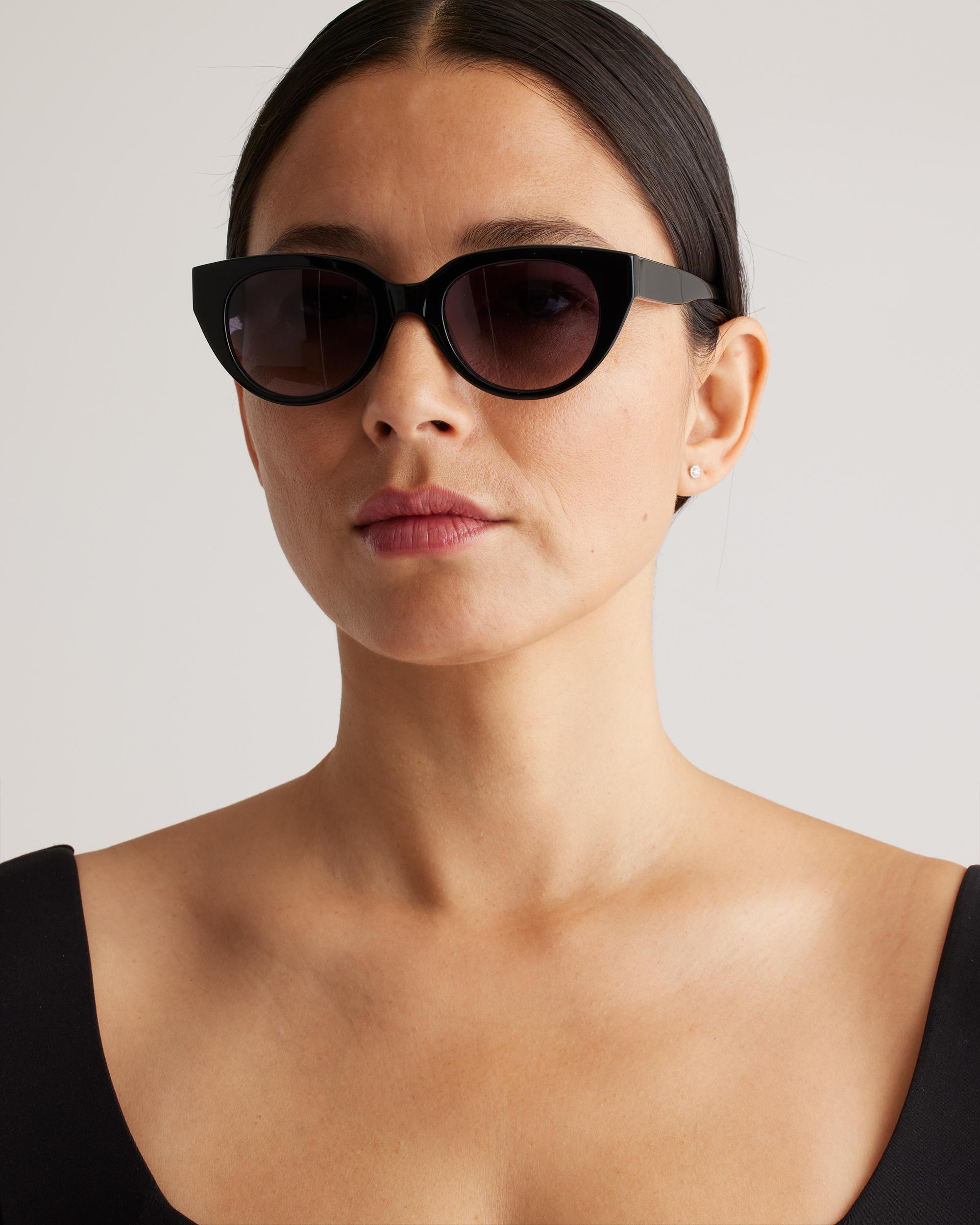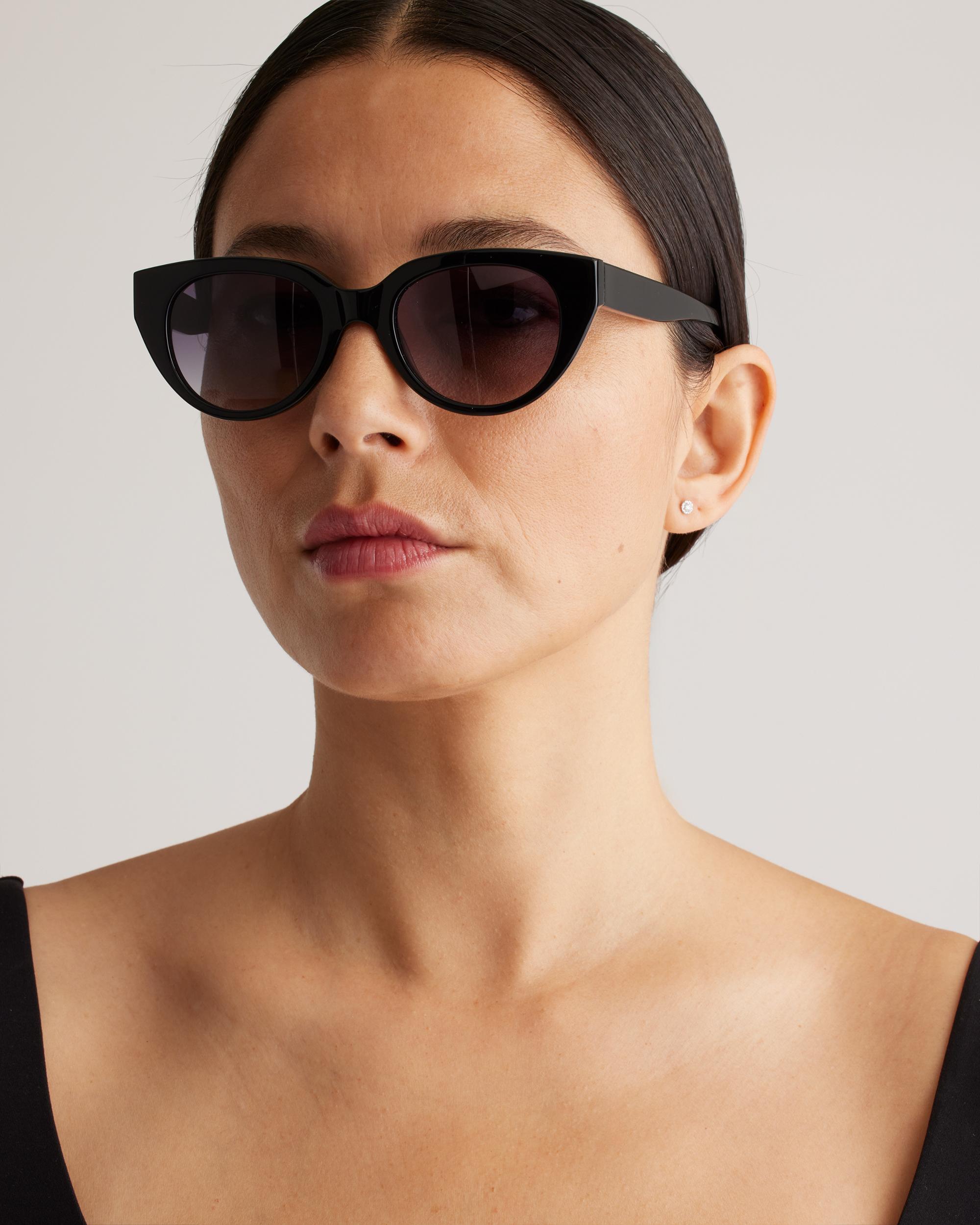 Get ready to turn heads in our Capri Polarized Acetate Sunglasses. These retro-inspired shades have a subtle cat eye shape for just the right amount of attitude. Plus they’re lightweight for all-day comfort and polarized to protect your eyes. Bonus: The acetate frames are a plant-based alternative to conventional plastics made from petroleum, so you can feel good about wearing them too. | Quince | Women's Capri Polarized Acetate Sunglasses in Black with Grey Gradient lens, Size Standard, Cellulose Acetate