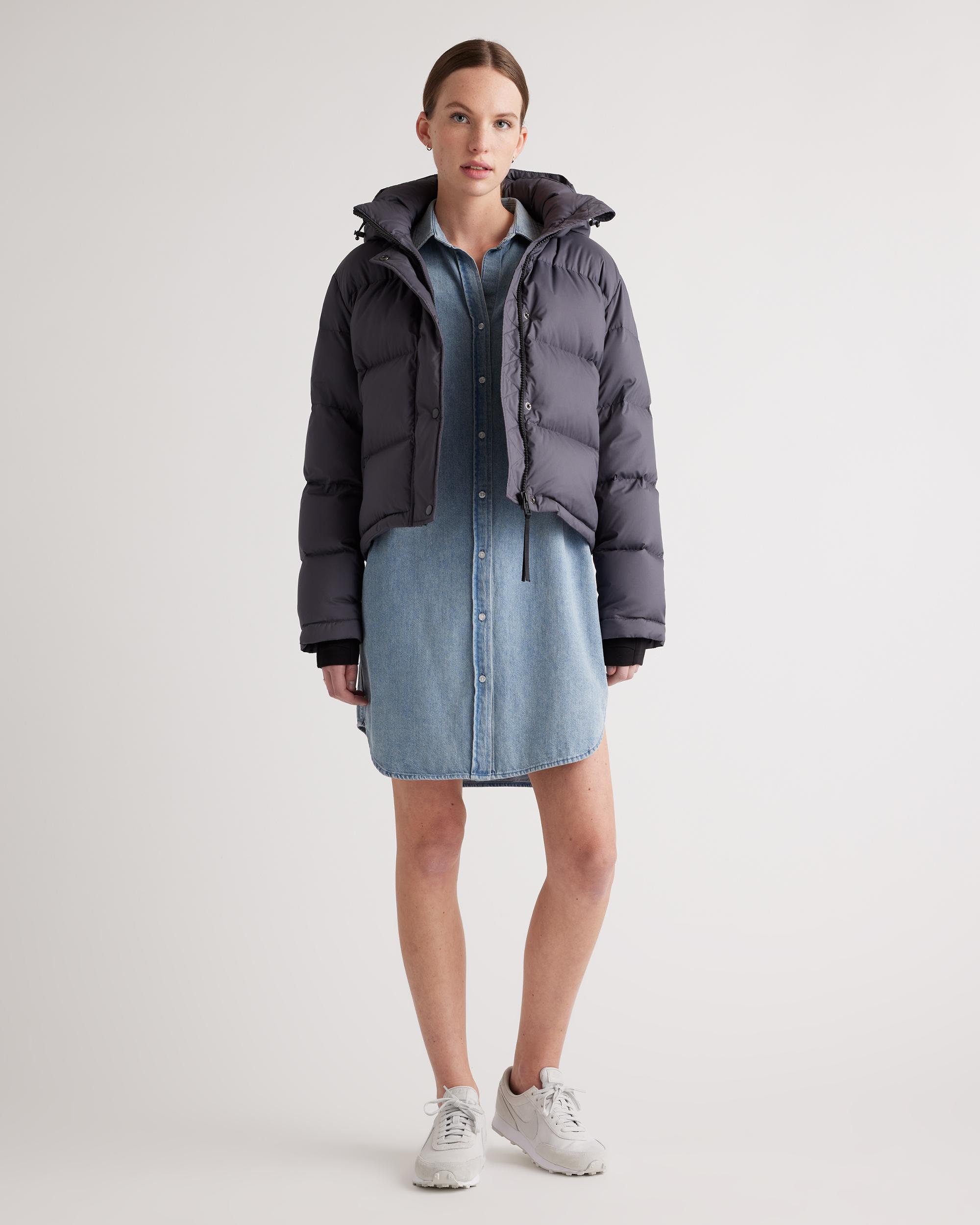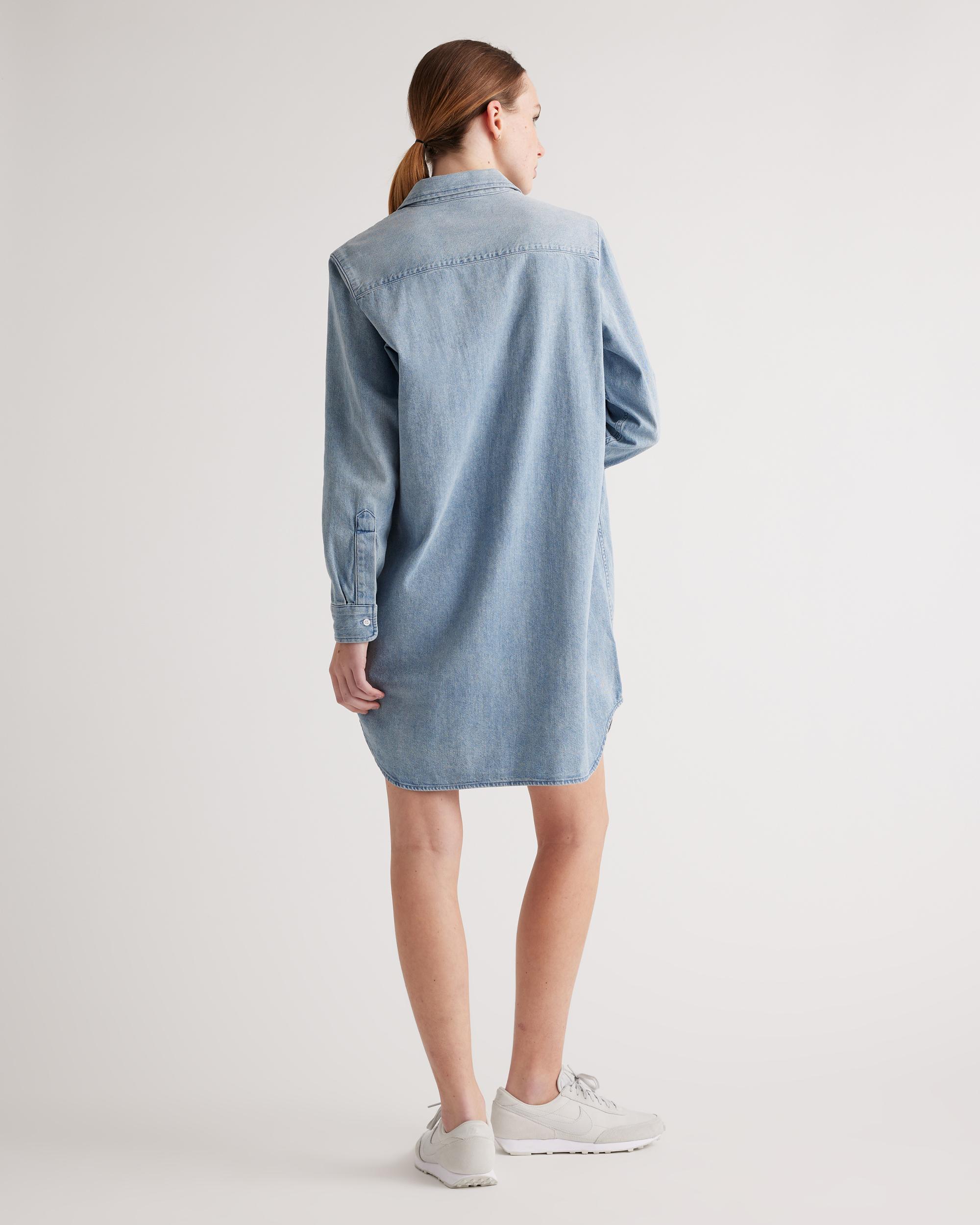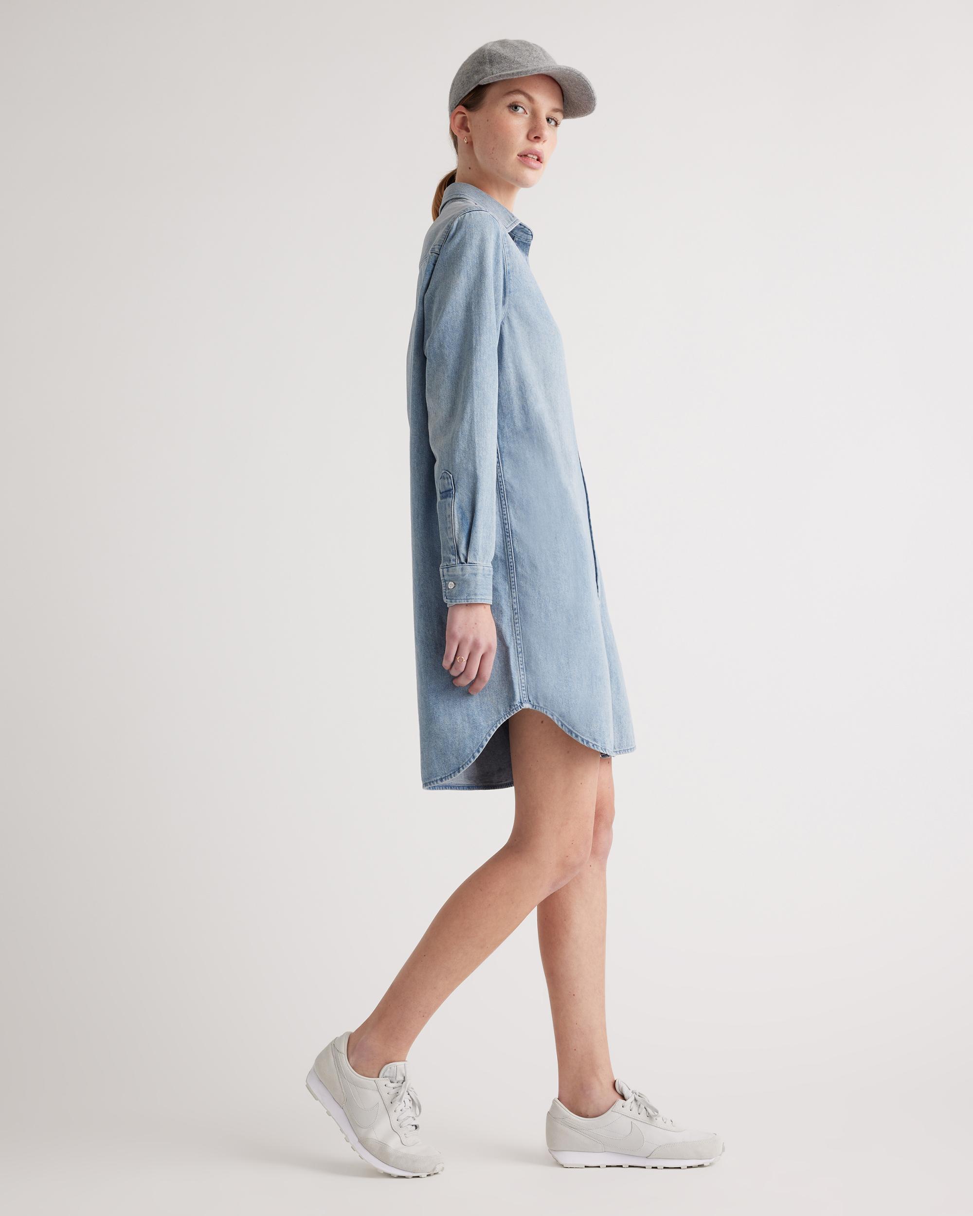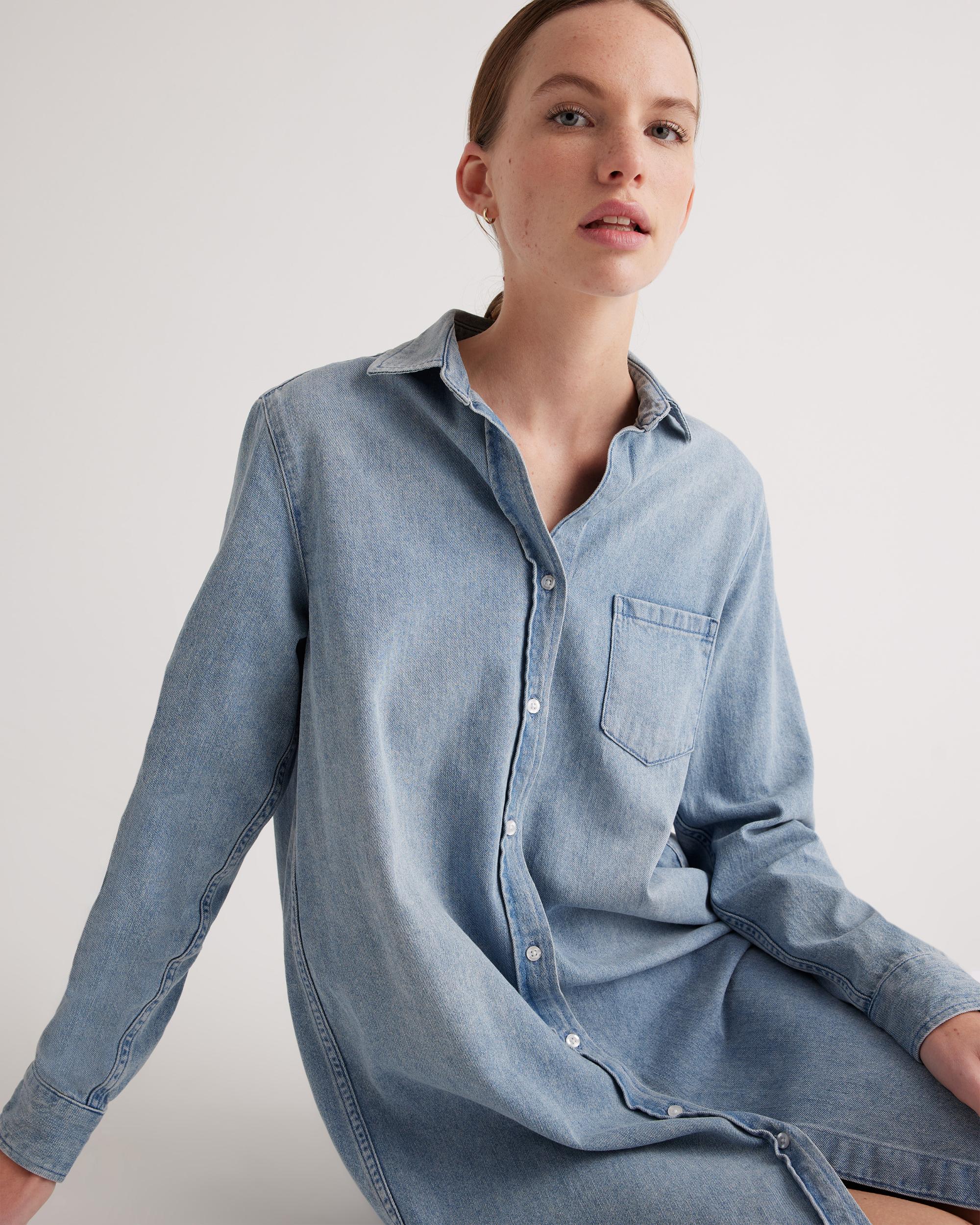 It's the versatility and comfiness of your favorite broken-in jeans, but in our Distressed Denim Shirt Dress. Style it sporty with sneakers and a baseball cap or dress it up with shimmery extras from head to toe—either way, you'll wear this one way more often than you think. | Quince | Women's Distressed Denim Shirt Dress in Blue, Size Medium, Cotton