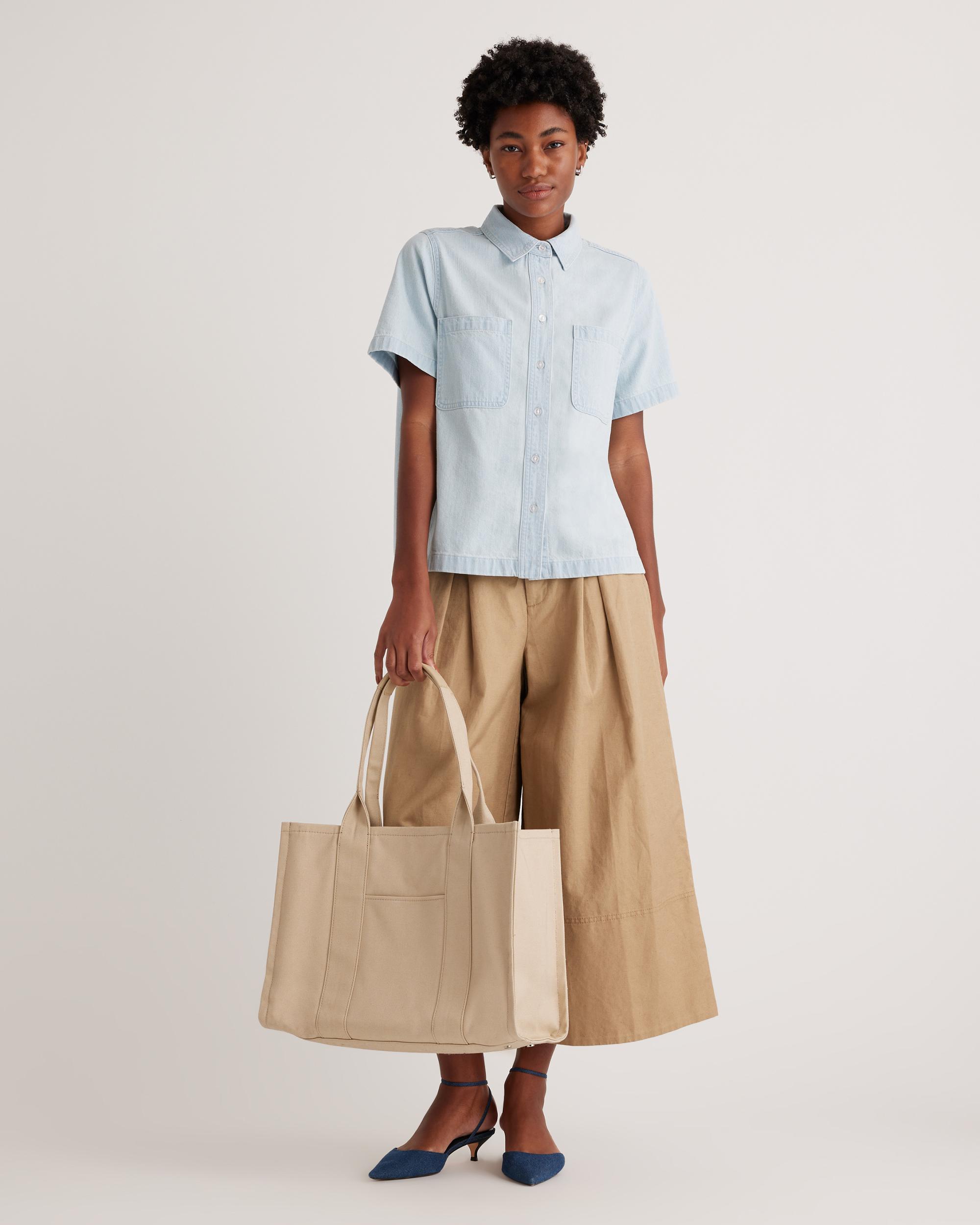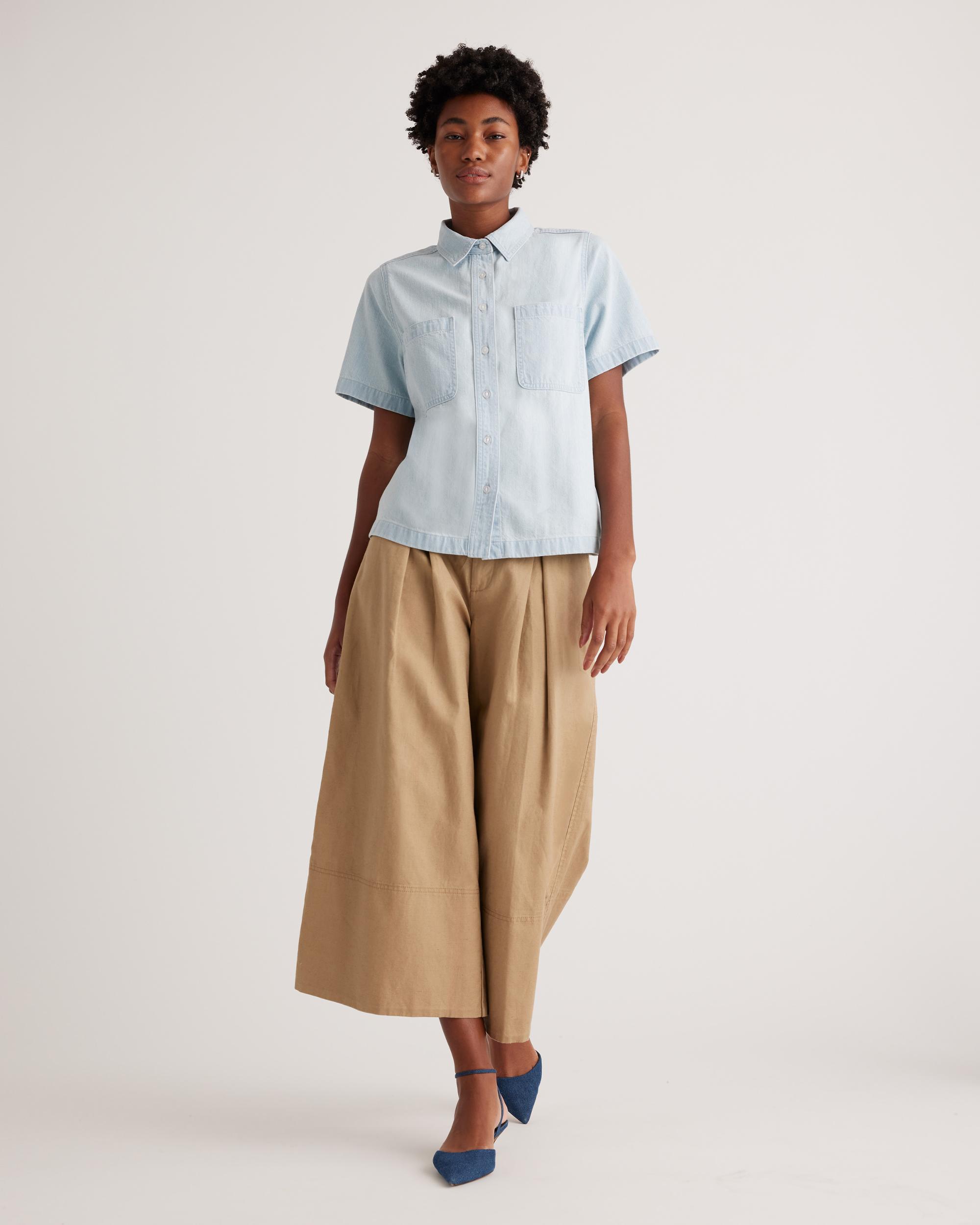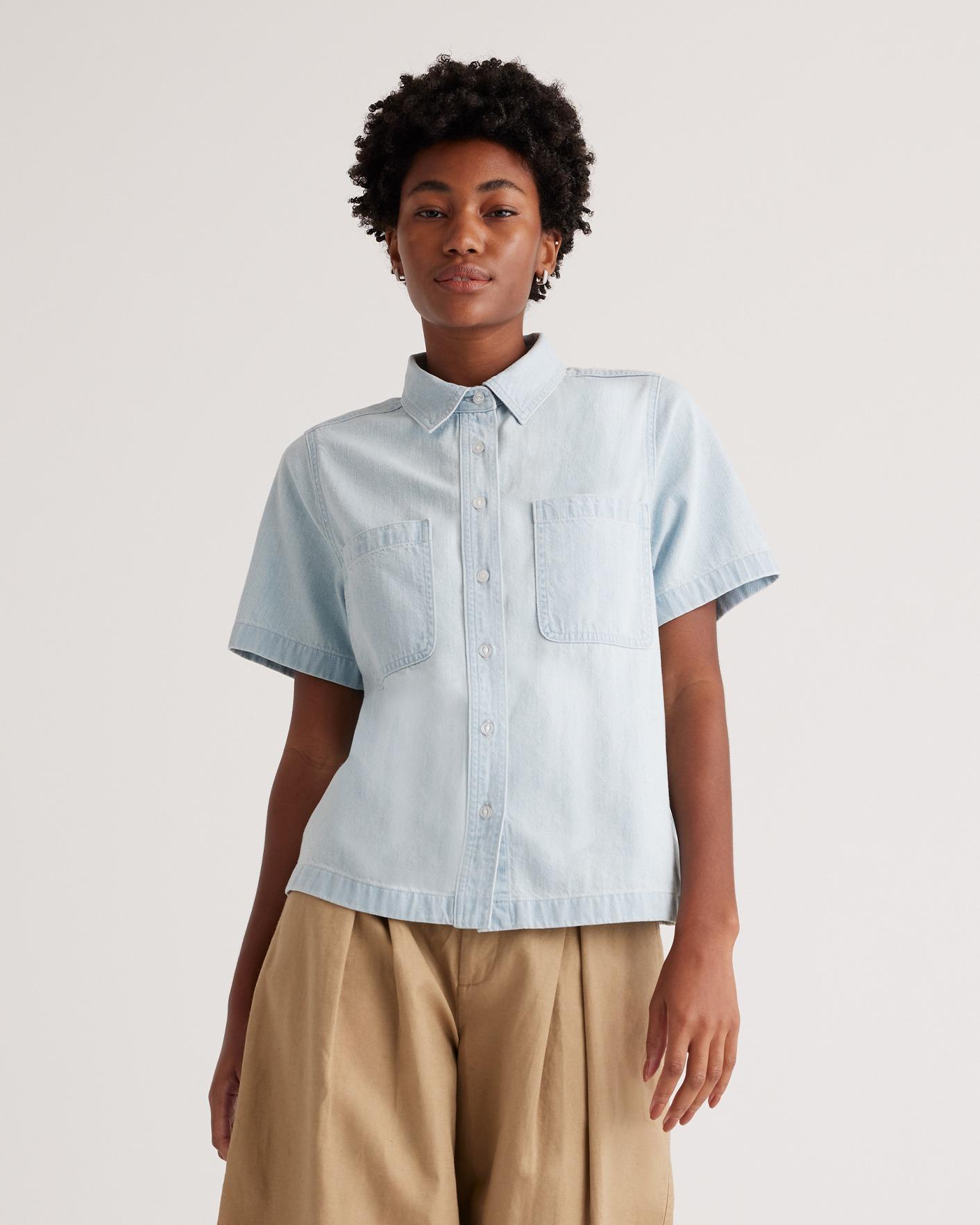 Quince | Women's Distressed Denim Short Sleeve Shirt Cotton