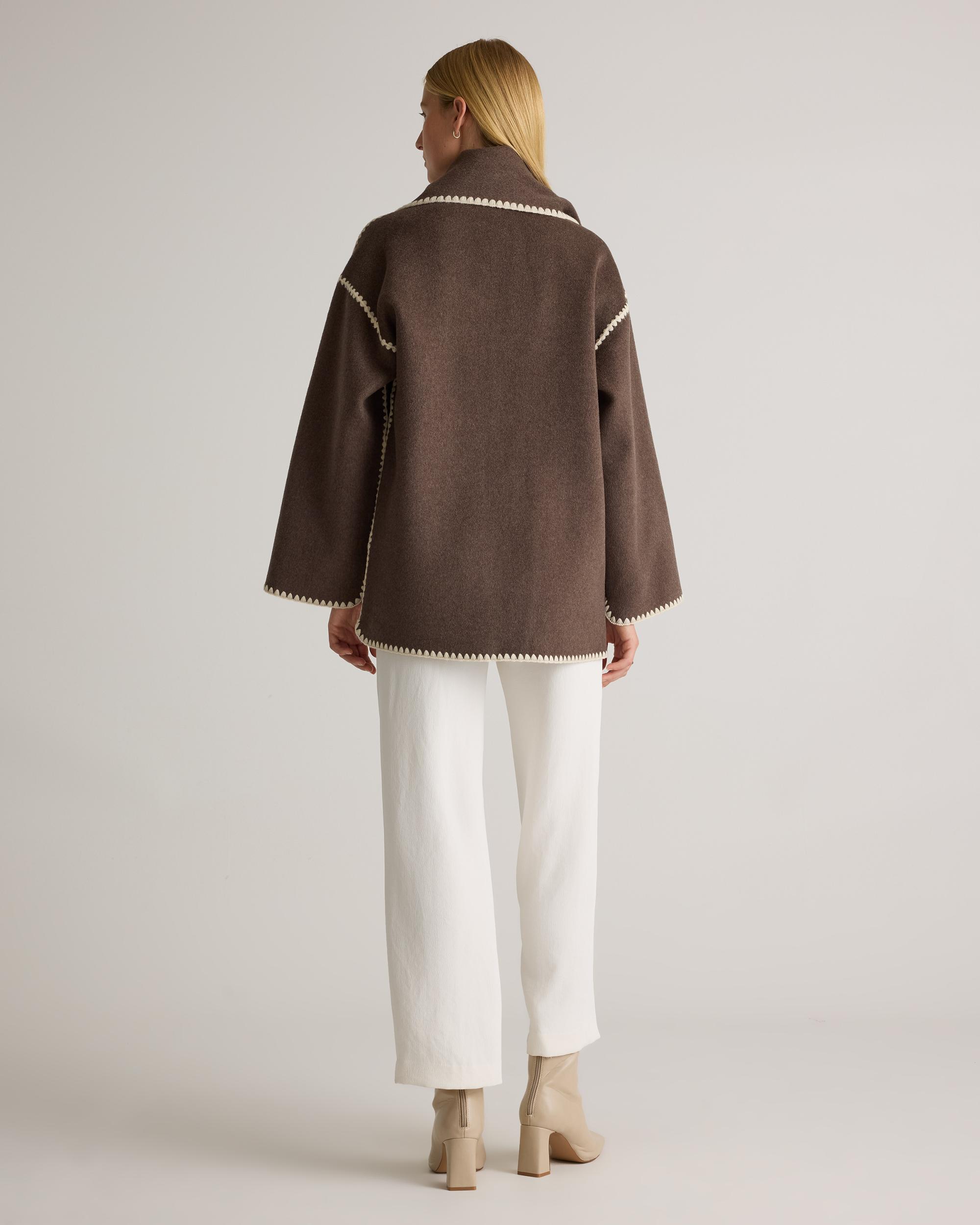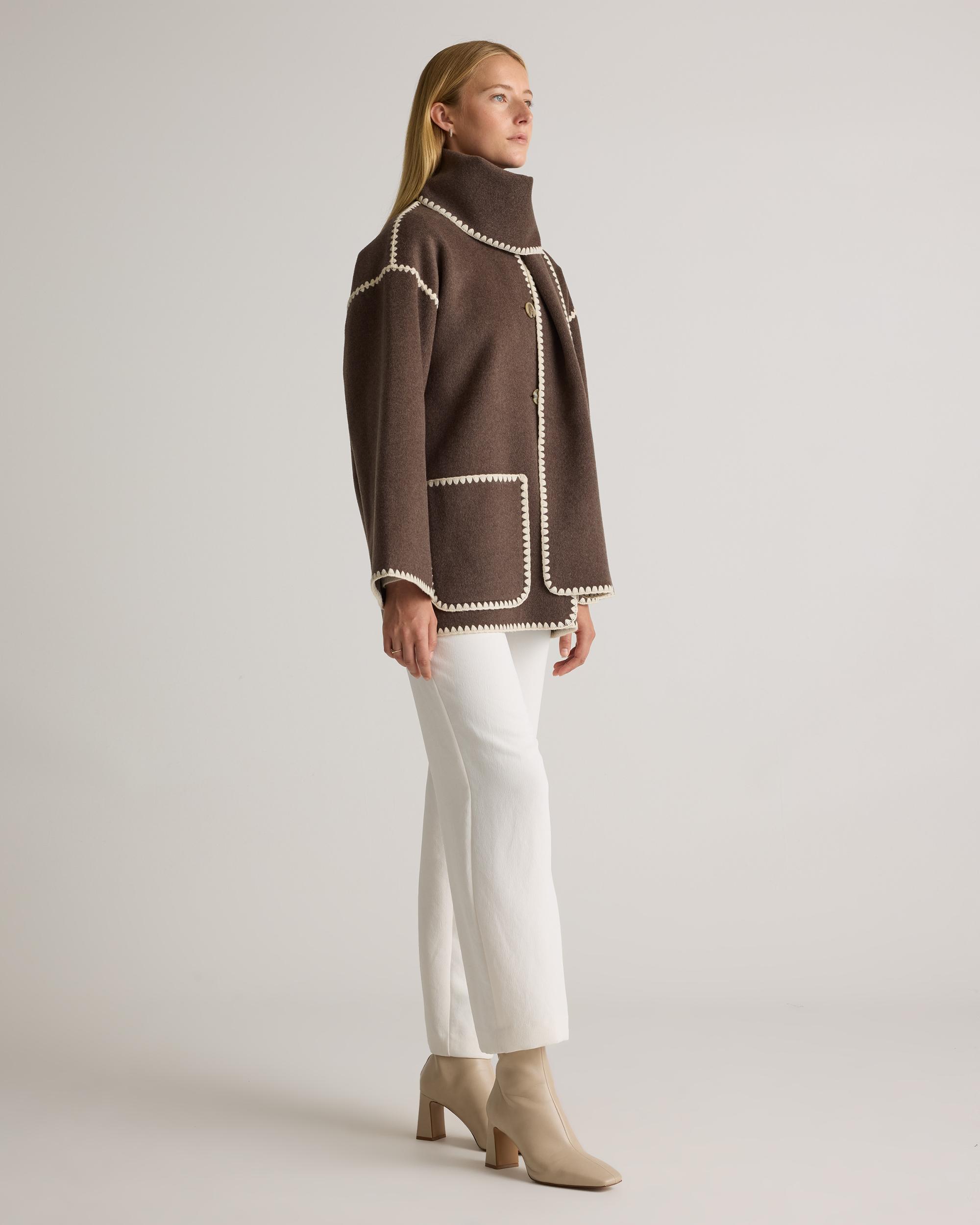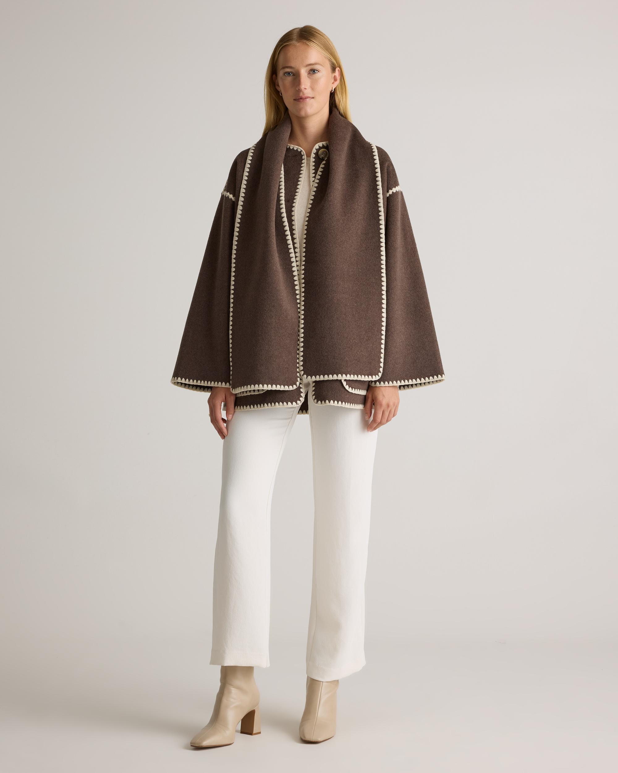 Effortless, cozy, chic. If those adjectives describe your style preferences, then you're in luck—because they also describe our Double-Faced Merino Wool Scarf Coat. Made from a substantial and structured wool-blend felt, this jacket is just what your wardrobe has been waiting for. The attached scarf and delicate embroidery give it a bespoke, artisanal feel while the oversized fit gives warmth and comfort you can really wrap up in. | Quince | Women's Double-Faced Merino Wool Scarf Coat in Cocoa Melange, Size Large