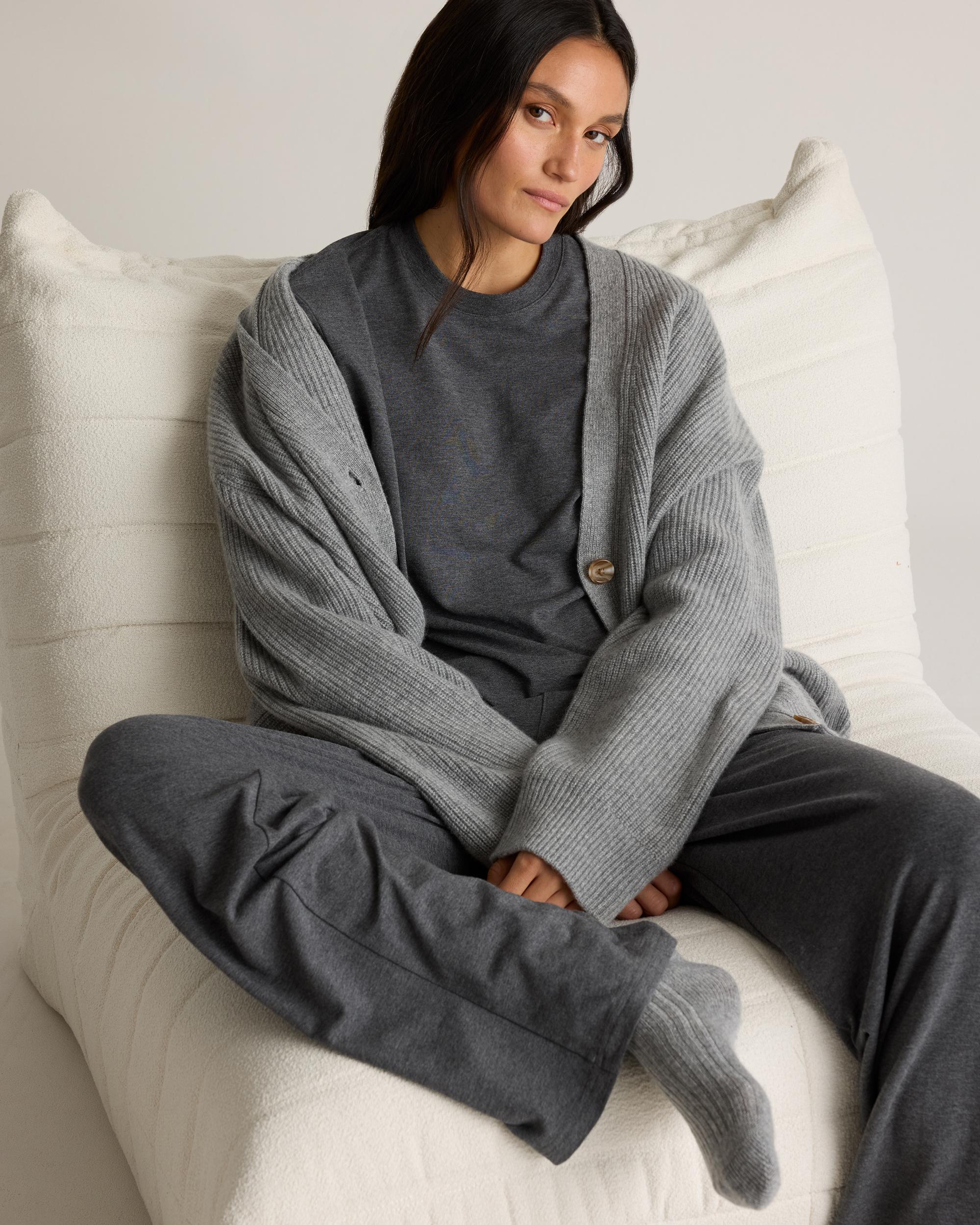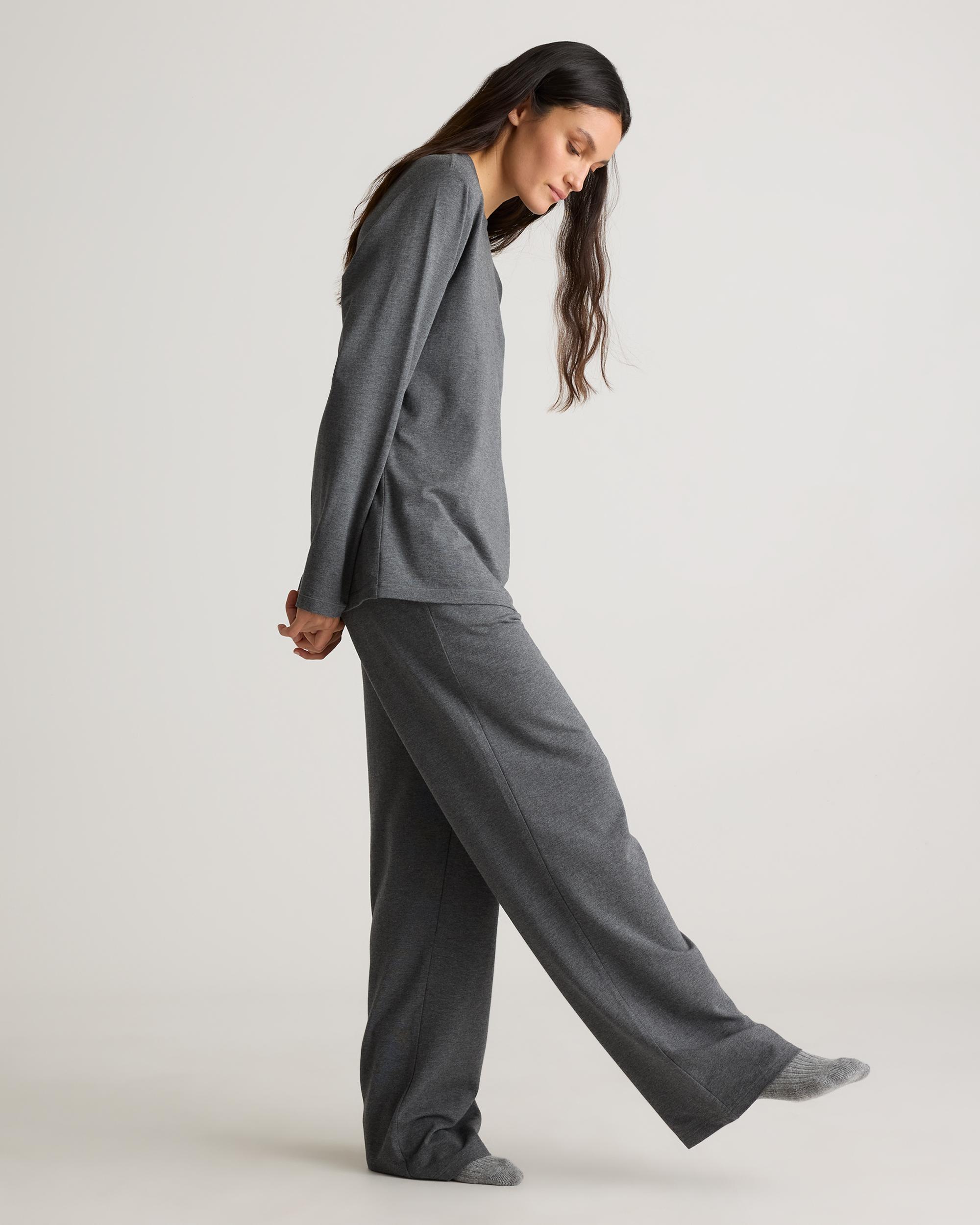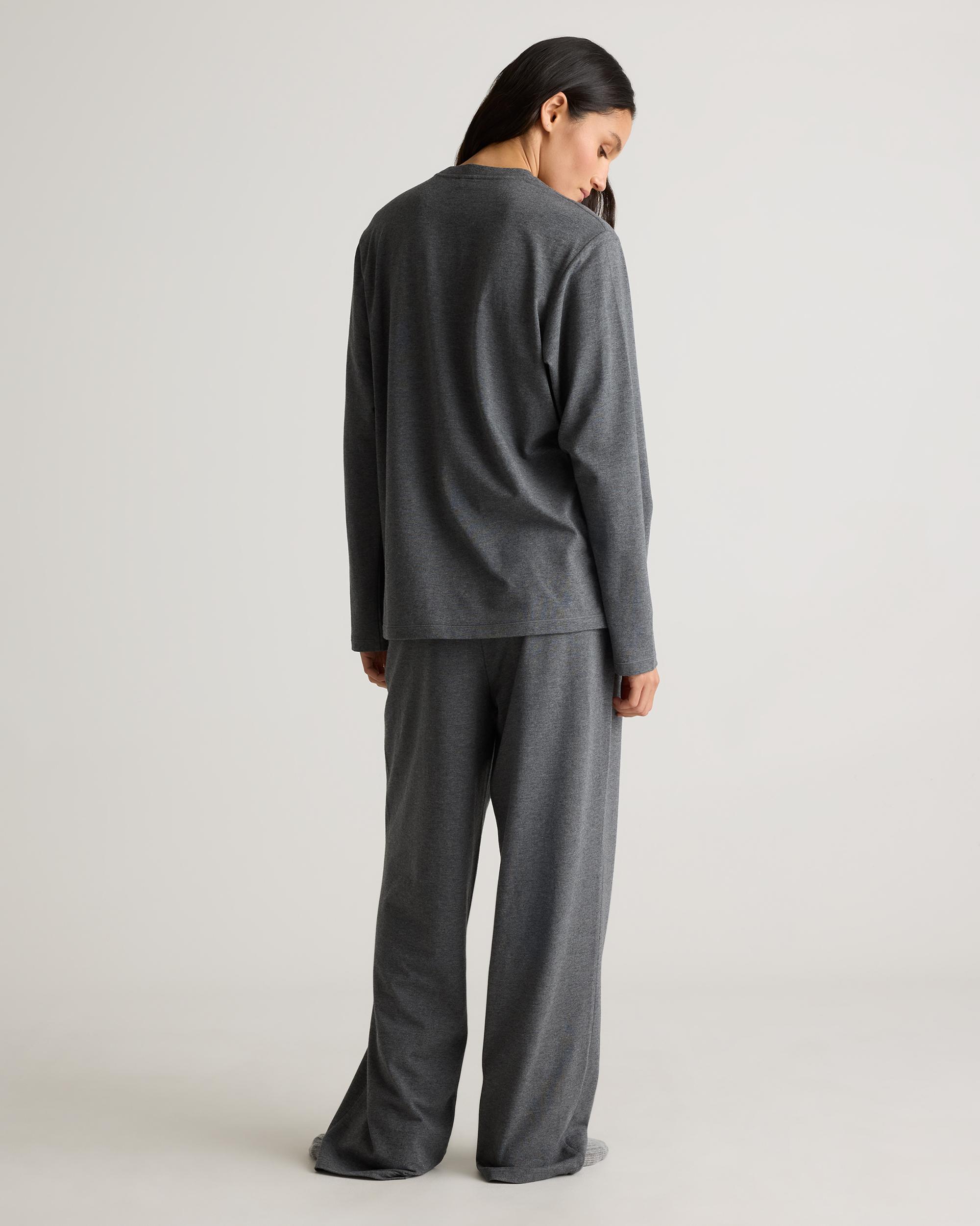 Get ready to relax in ultimate comfort with our Dream Lounge Oversized Long Sleeve Pajama Set—designed to feel like your boyfriend’s favorite tee and pajama pants, but made just for you. Crafted from irresistibly soft fabric, this set is so comfy, he might try to borrow it. The long sleeve top features an effortlessly cool, oversized fit for that "borrowed-from-the-boys" vibe, while the matching pants offer a relaxed silhouette with a stretchy elastic waistband for all-day ease. Perfect for cozy evenings in, laid-back mornings, or anything in between, this set will quickly become your go-to for lounging (and maybe his too). | Quince | Women's Dream Lounge OverSized Long Sleeve Pajama Set in Heather Charcoal Grey, Size Medium, Cotton